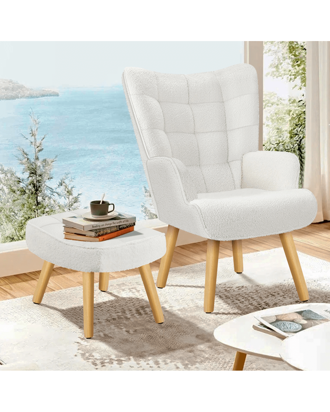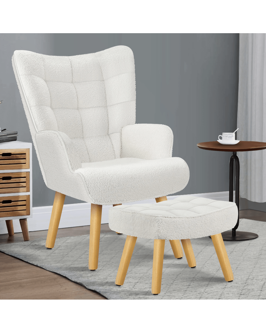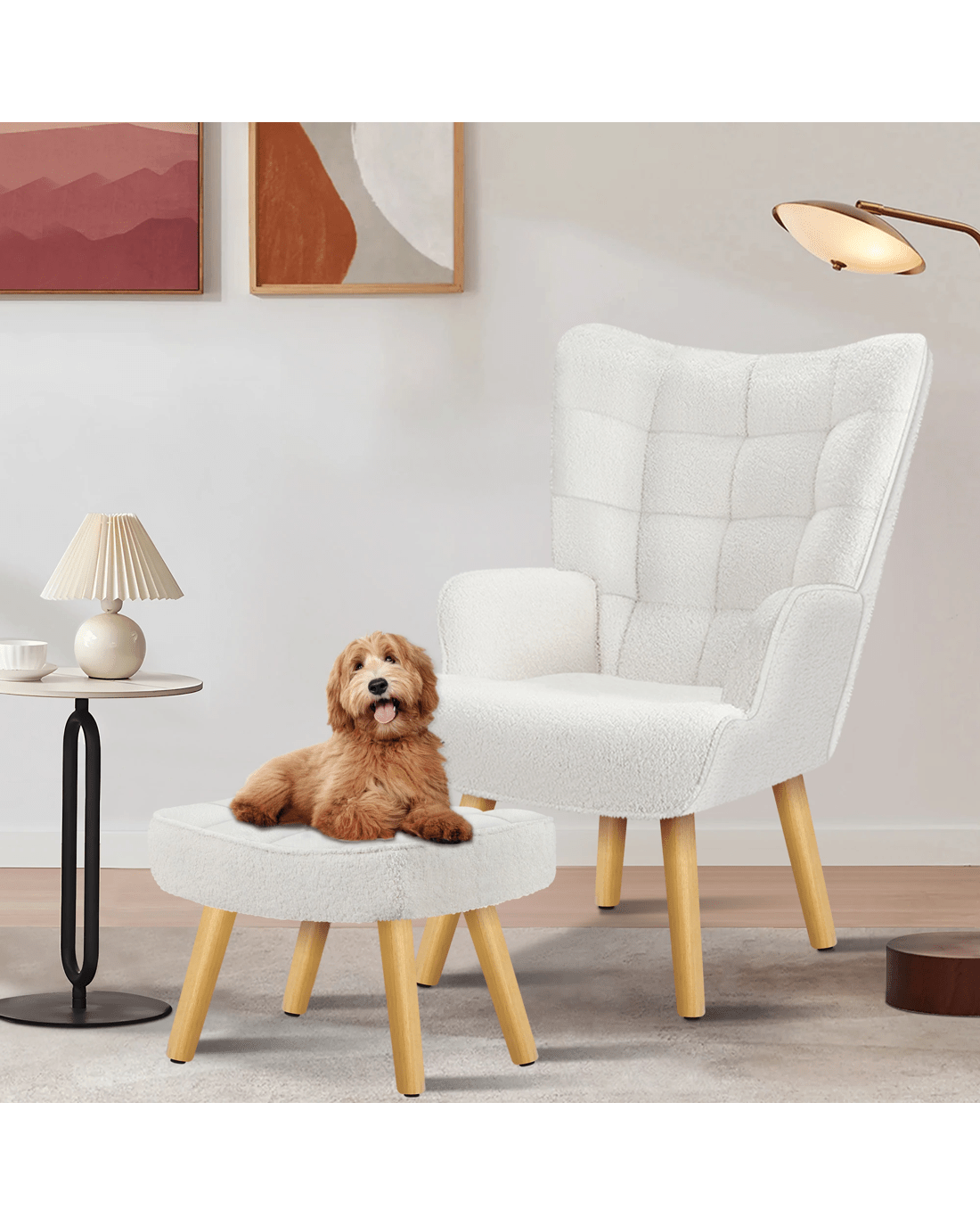 Alfordson Armchair Lounge Chair Featherston Replica Accent Chair Boucle - White