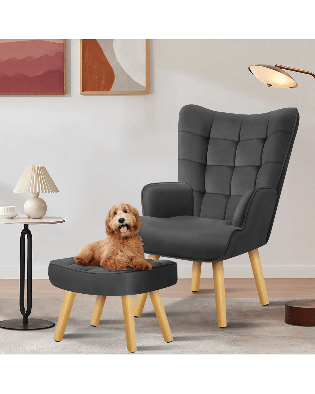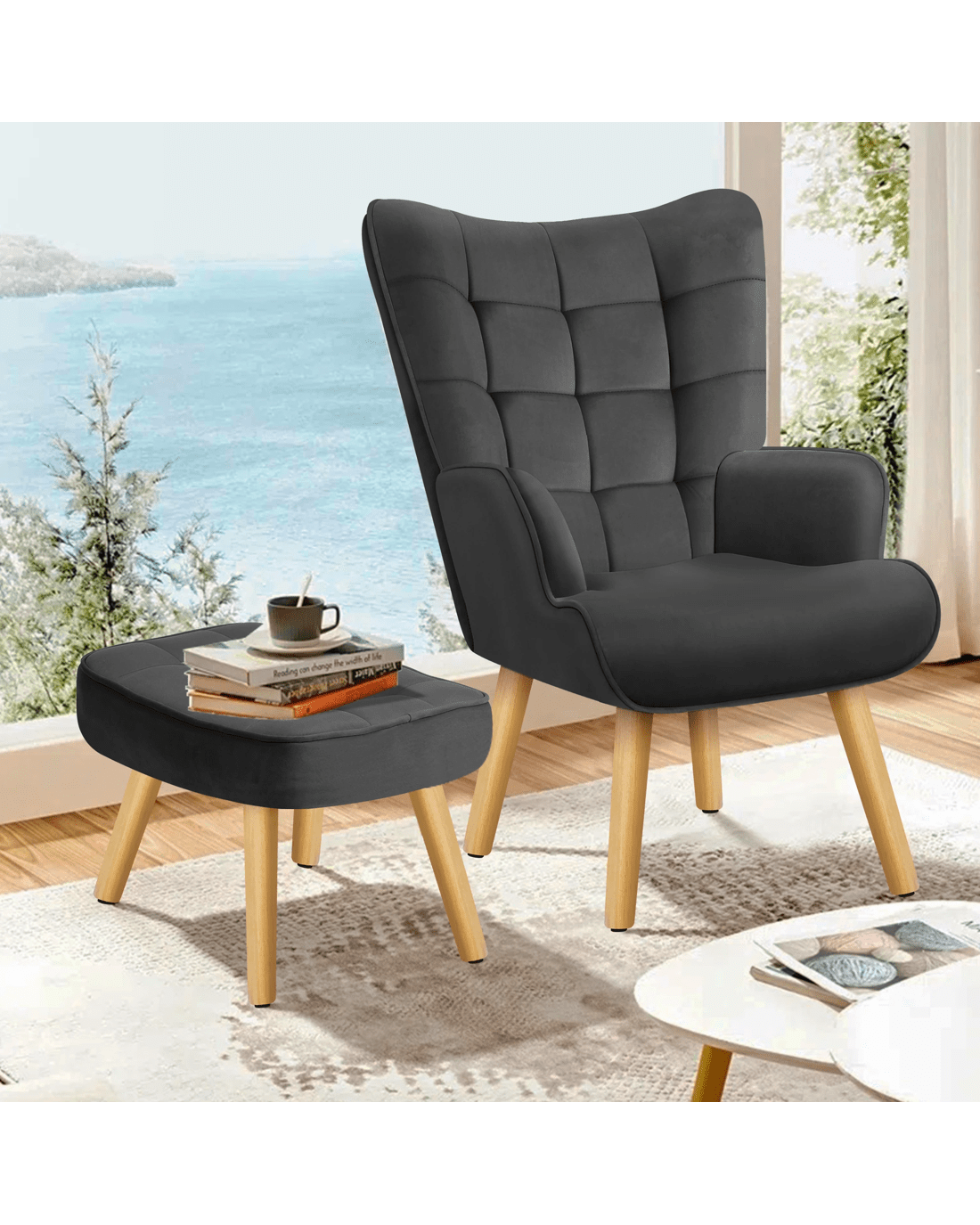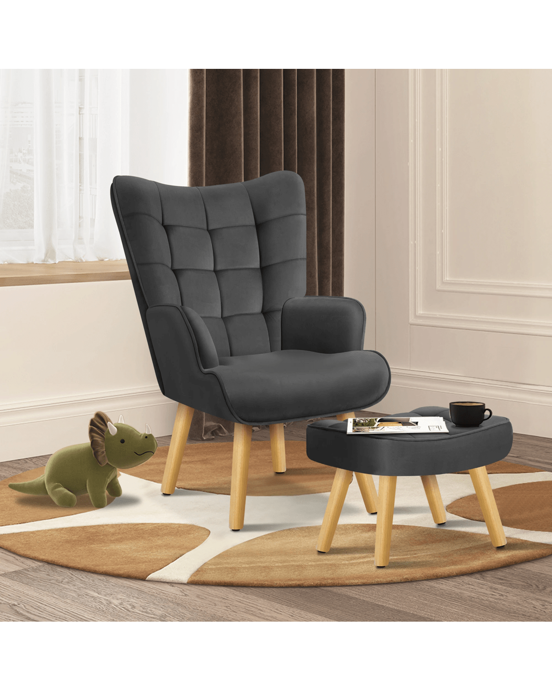 Not only with its iconic design and timeless appeal, this tub armchair is also cozy and practical. Upholstered in deluxe velvet fabric, the seat and backrest are richly padded with high-resilience foam, providing adequate support in the right places. It comes with a matching footstool for resting the feet on when sitting, which also can work as an extra seat. Combined with the solid construction, the armchair balances softness and durability for a delightful sitting experience, ideal for children and adults.