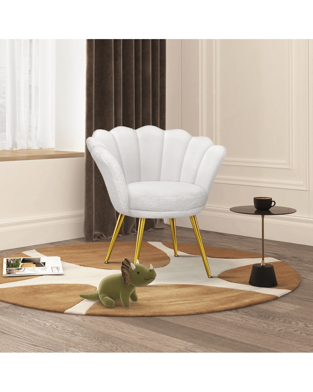 * Premium faux fur fabric upholstery, durable and easy-care