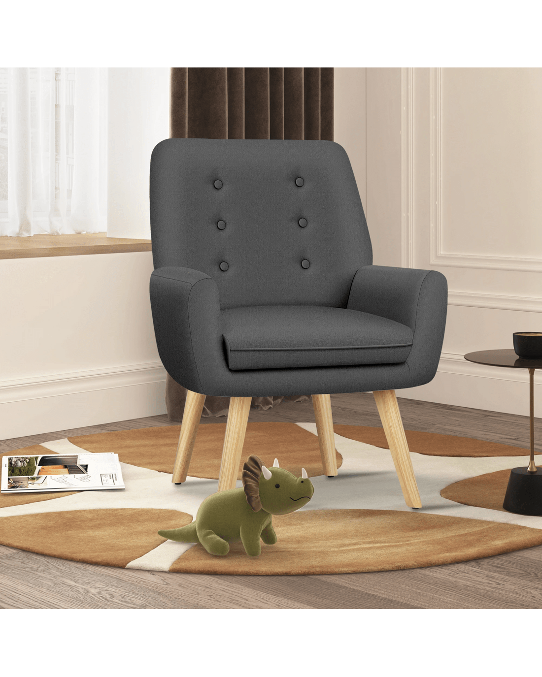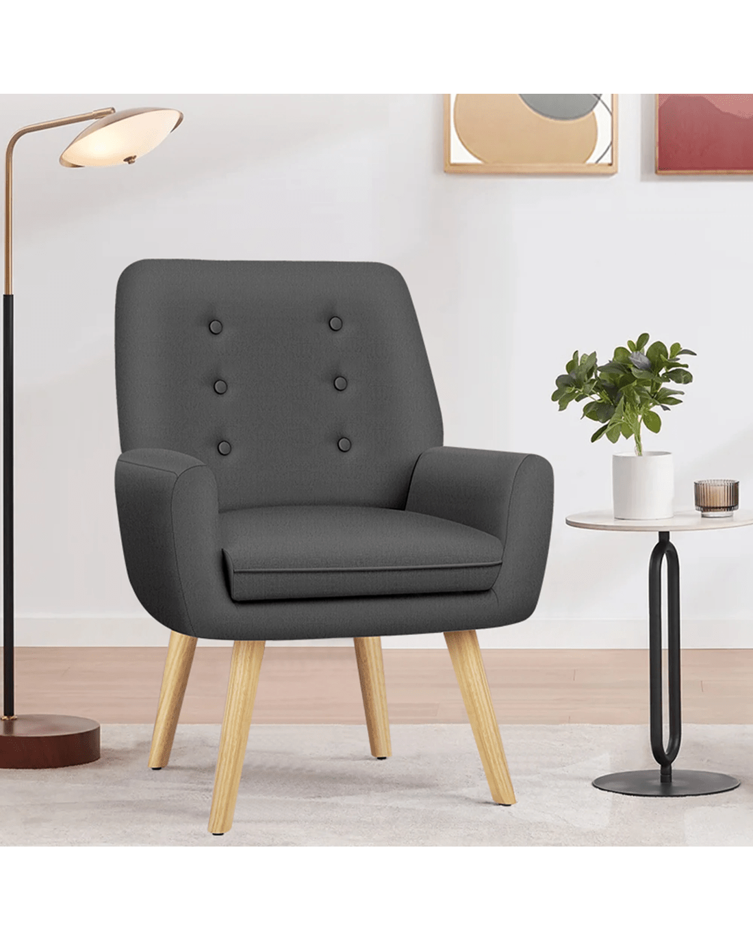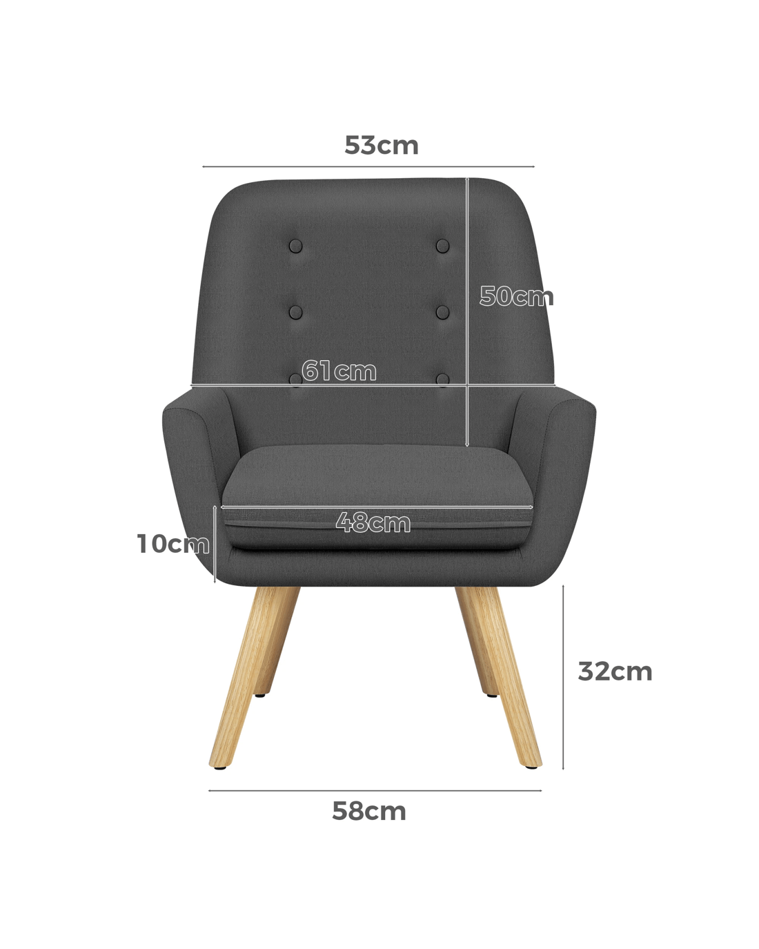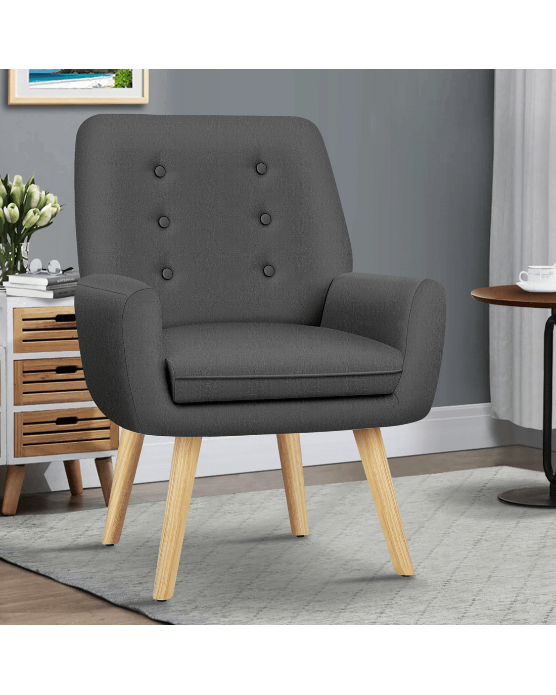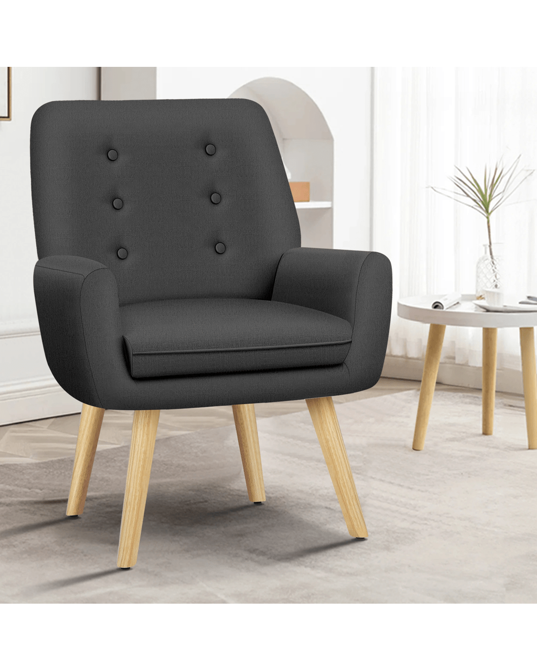 Combined with retro-inspired wood legs and linen fabric, this upholstered chair adds elegance and sophistication to the decor while enhancing the atmosphere of the room.