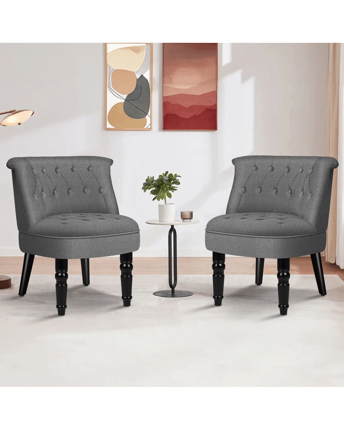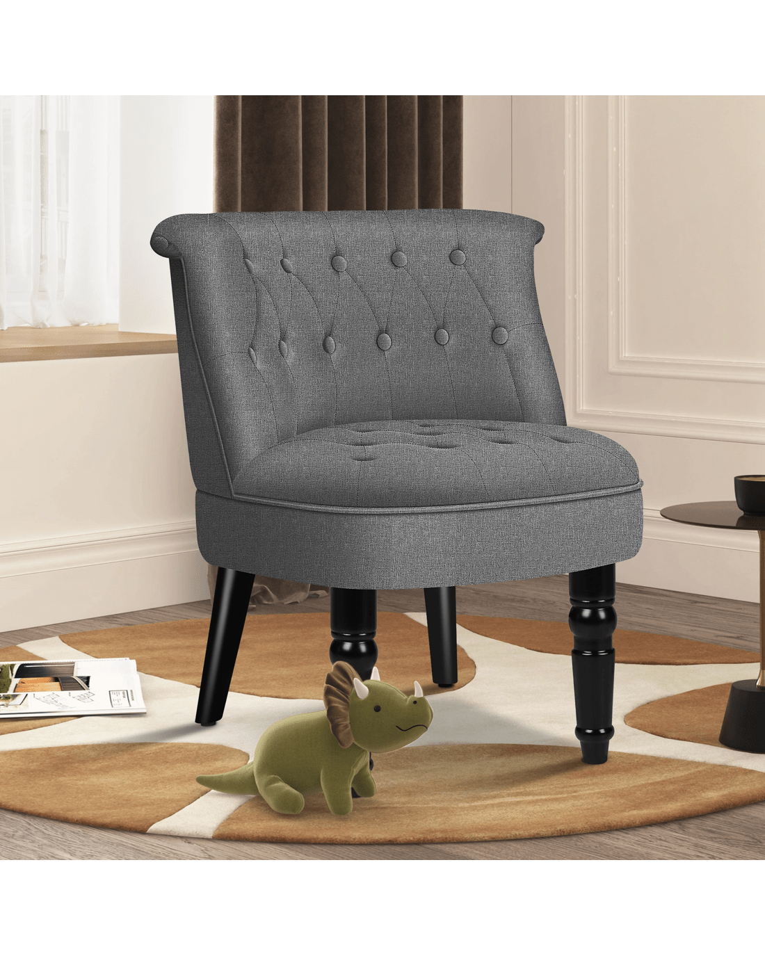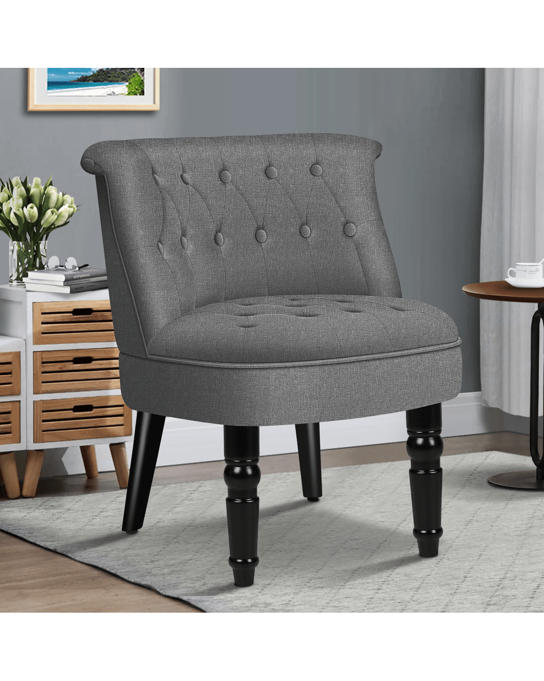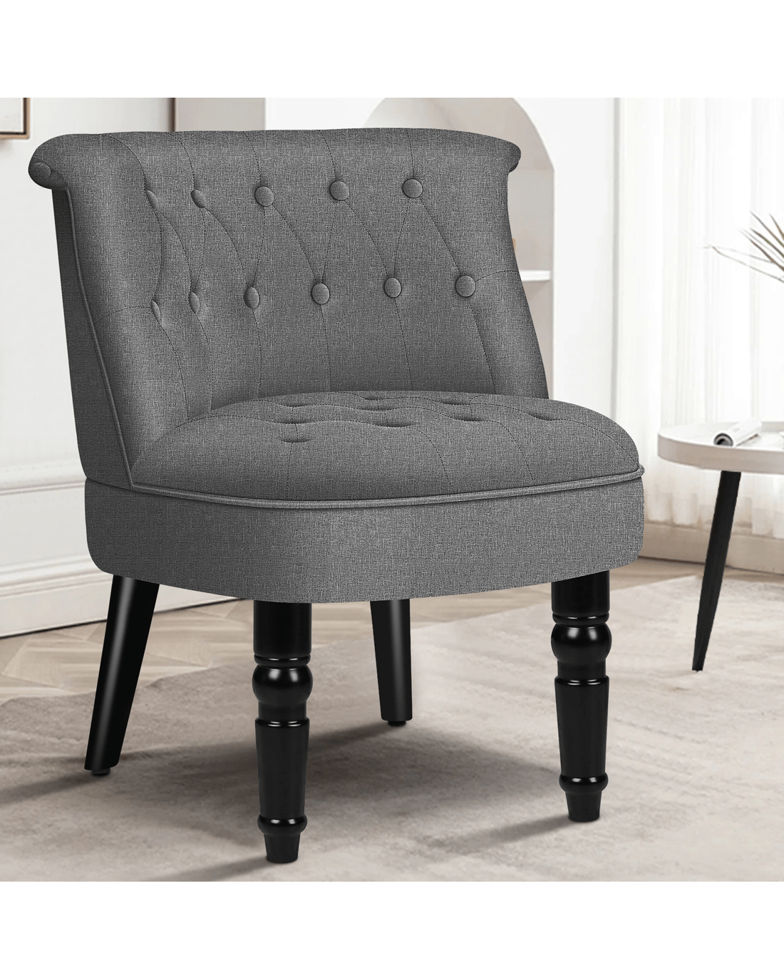 Combined with retro-inspired wood legs and linen fabric, this upholstered chair adds elegance and sophistication to the d??cor while enhancing the atmosphere of the room.