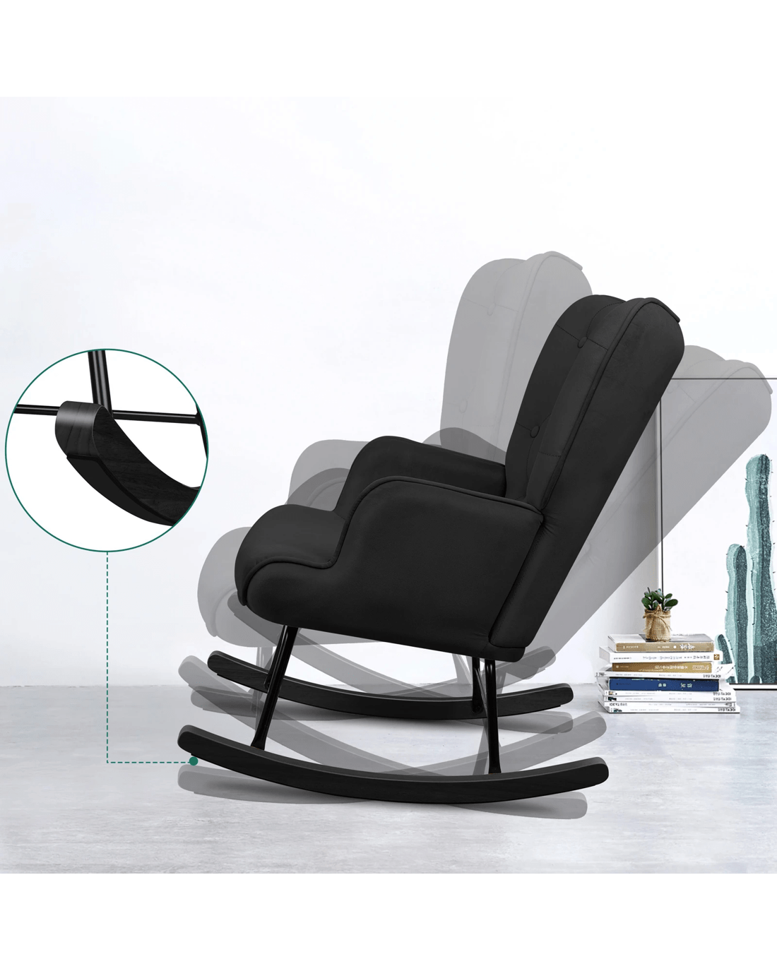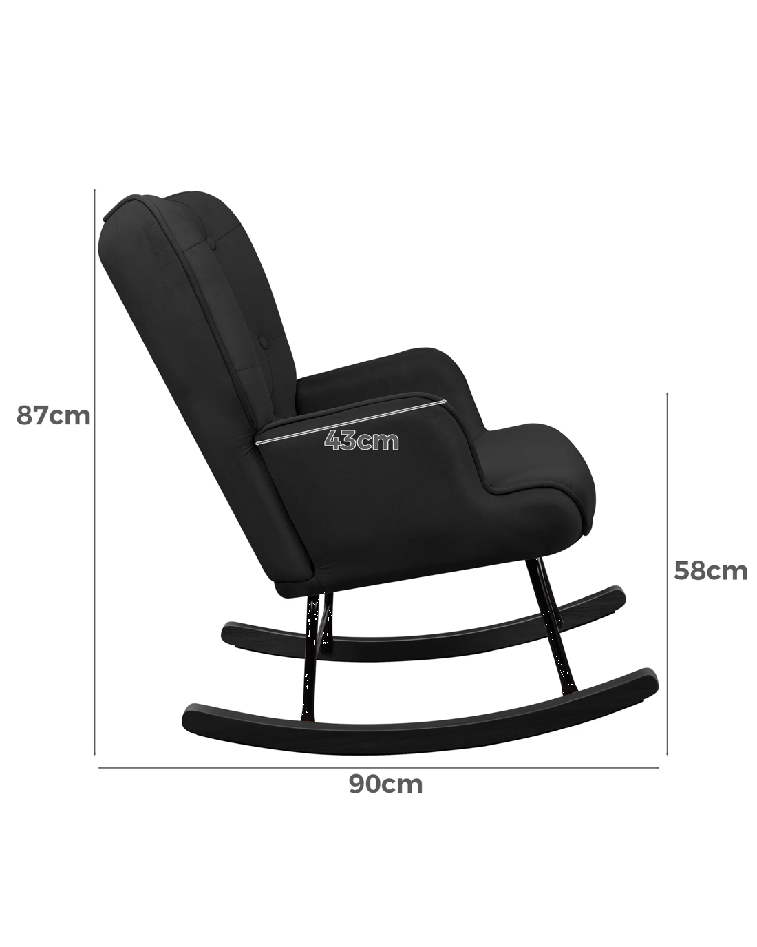Not only with its iconic design and timeless appeal, this nursery rocking chair s also cozy and practical. Upholstered in premium velvet, the seat and backrest are richly padded with high-resilience foam, providing adequate support in the right places. The sturdy metal frame and solid rubber wood legs balance comfort and durability for a delightful sitting experience.