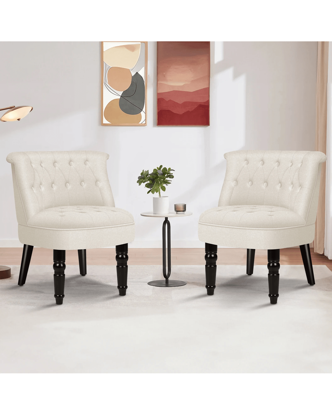Alfordson Armchair Tufted Lounge Chair Wingback Accent Chair Fabric Sofa - Beige