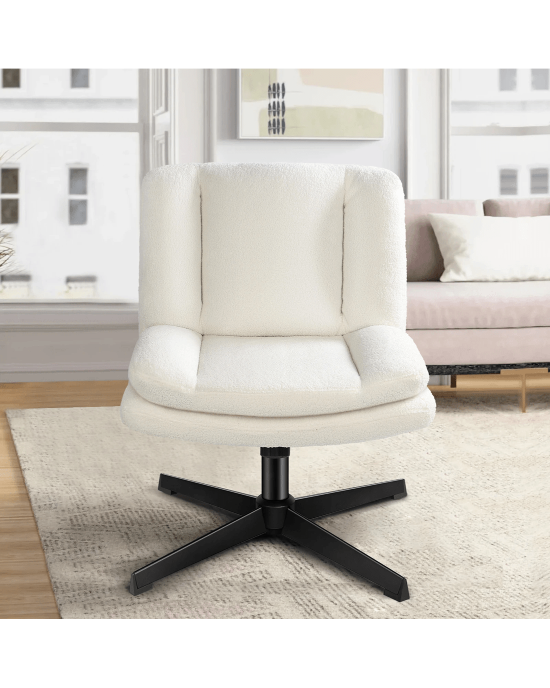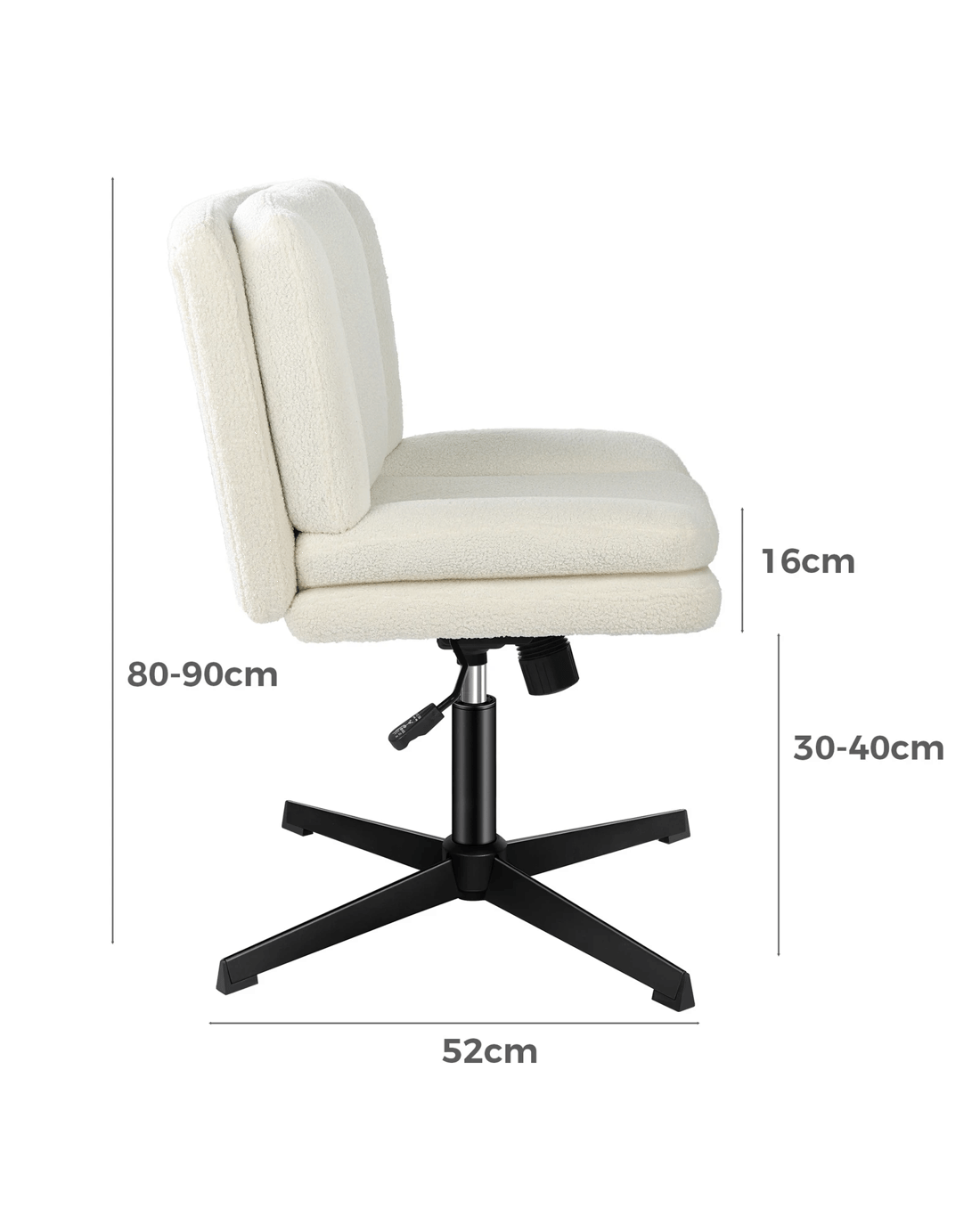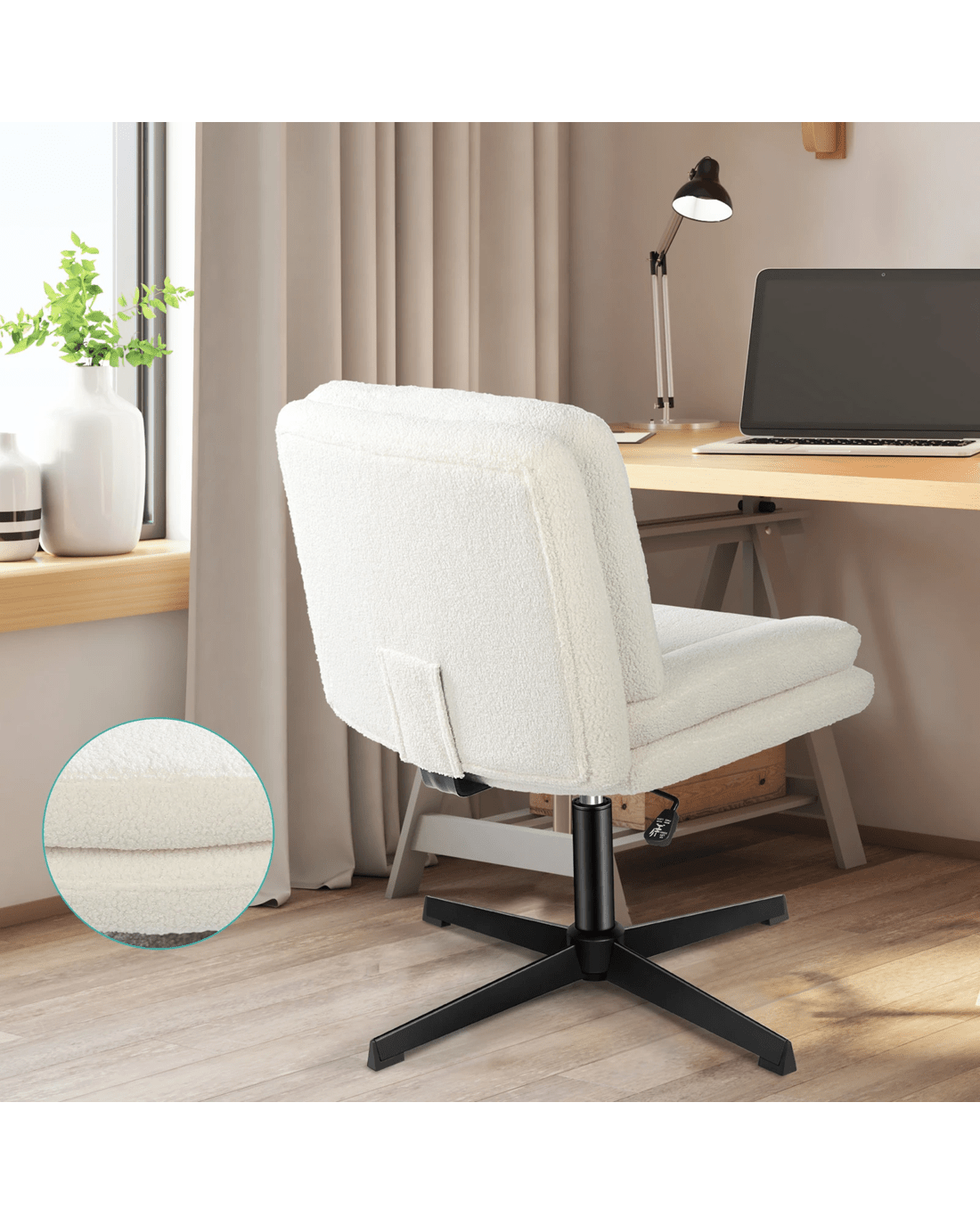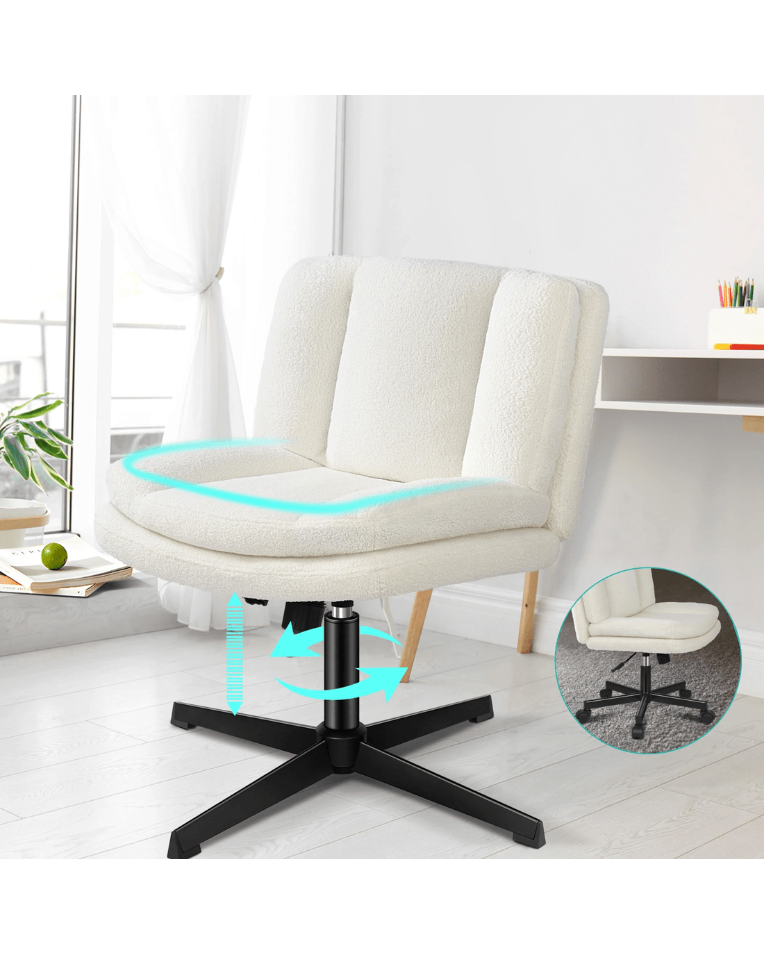 Upholstered fromhigh-quality teddy boucle and generous foam paddings, this computer chair ensures optimal comfort and durability. The curved and dual-layer wider backrest and seat perfectly contour your body, providing extra comfort and ergonomically support. This office chair helps eliminate back and posterior fatigue after long hours of sitting.