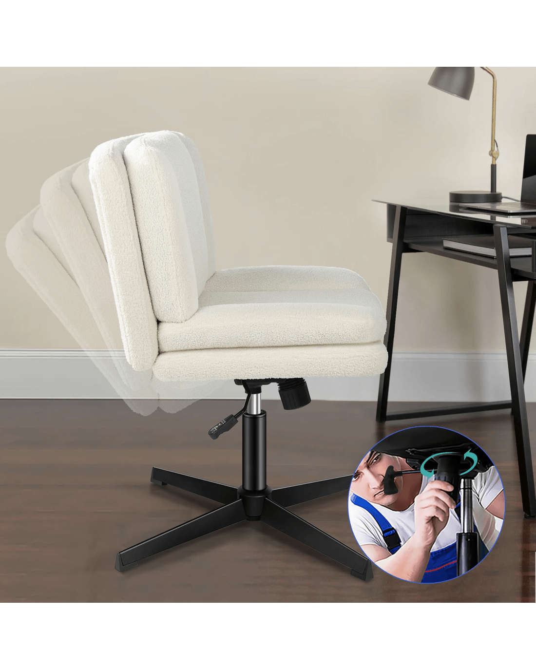 Sold by Aussie Union GroupAlfordson Armless Office Desk Chair Mid Back Wide Seat Boucle - White