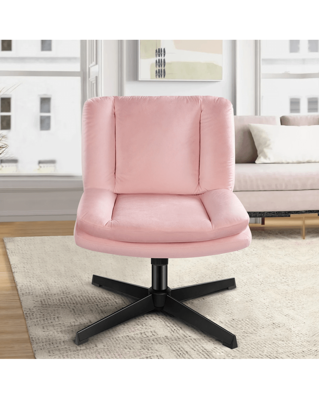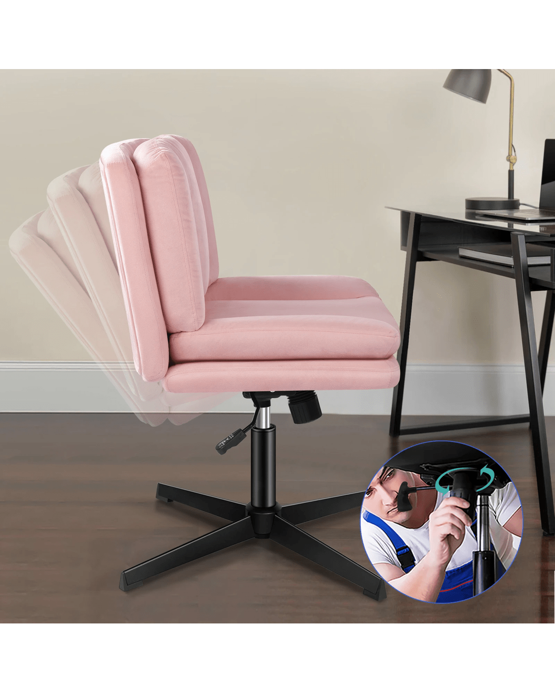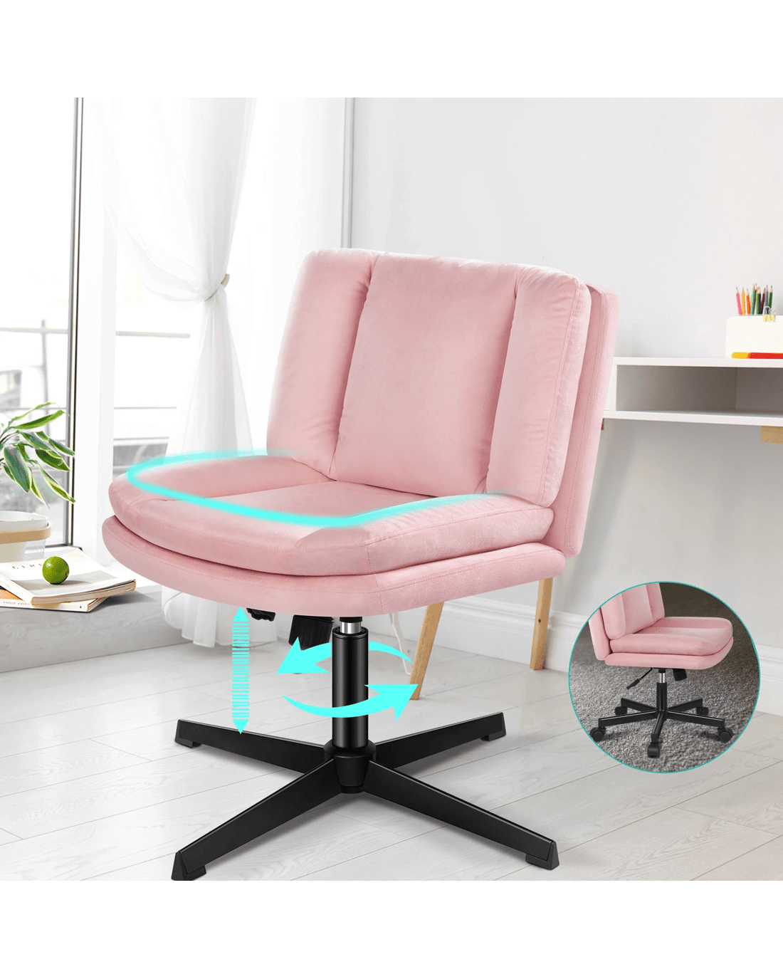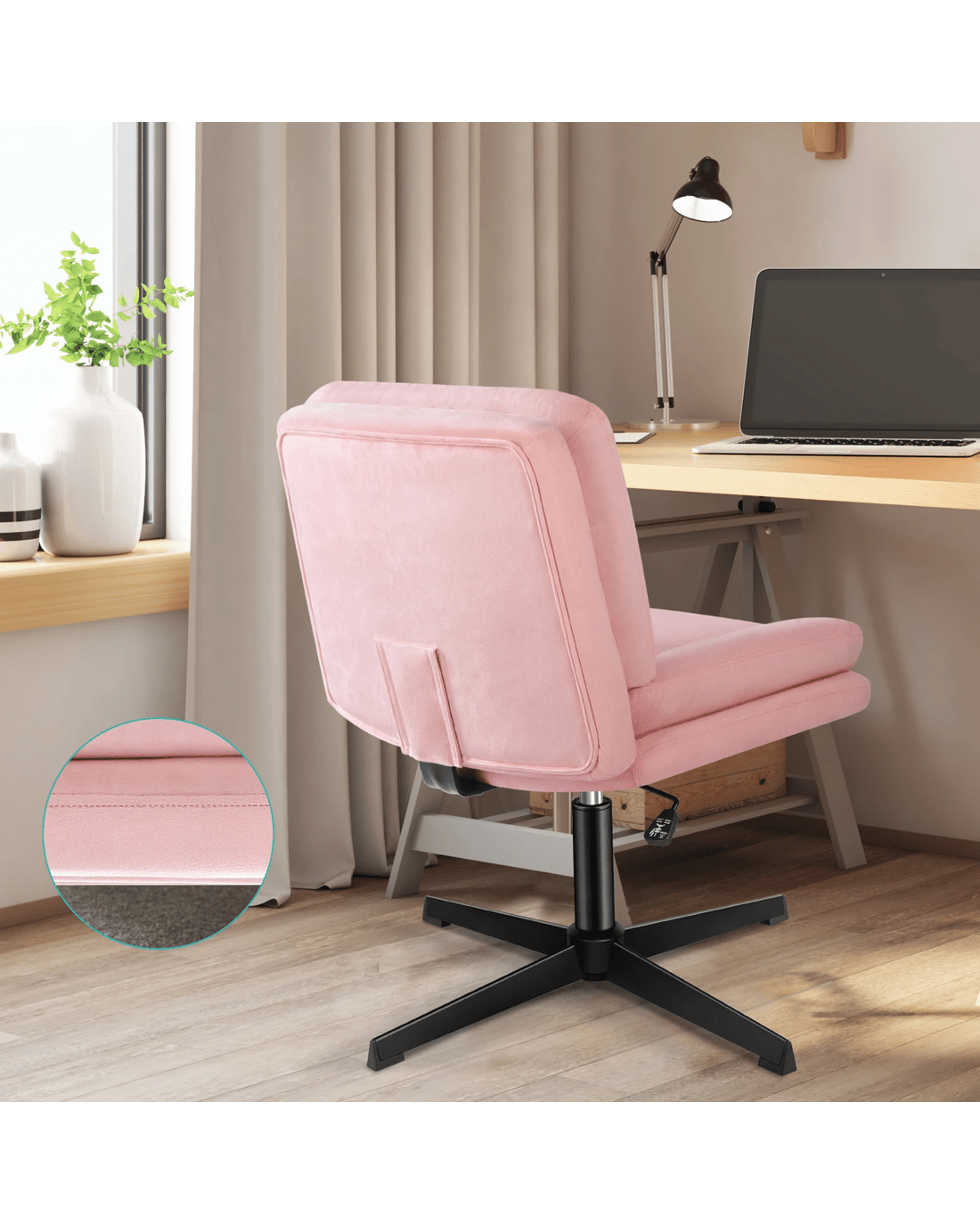 Alfordson Armless Office Desk Chair Mid Back Wide Seat Velvet - Pink