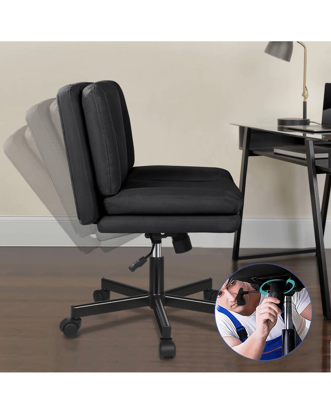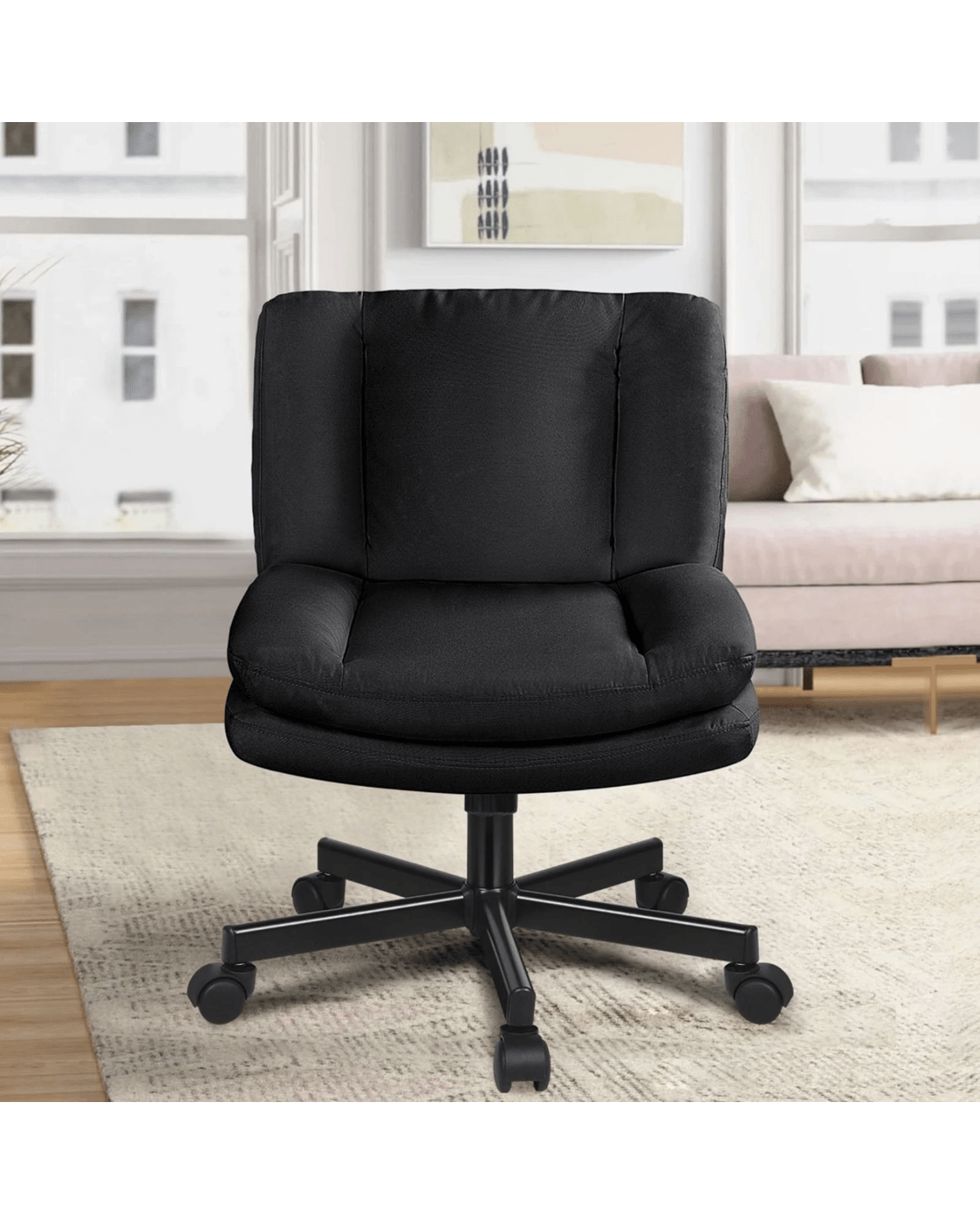 Sold by Aussie Union GroupAlfordson Armless Office Desk Chair Mid Back Wide Seat w/ Wheels Fabric - Black