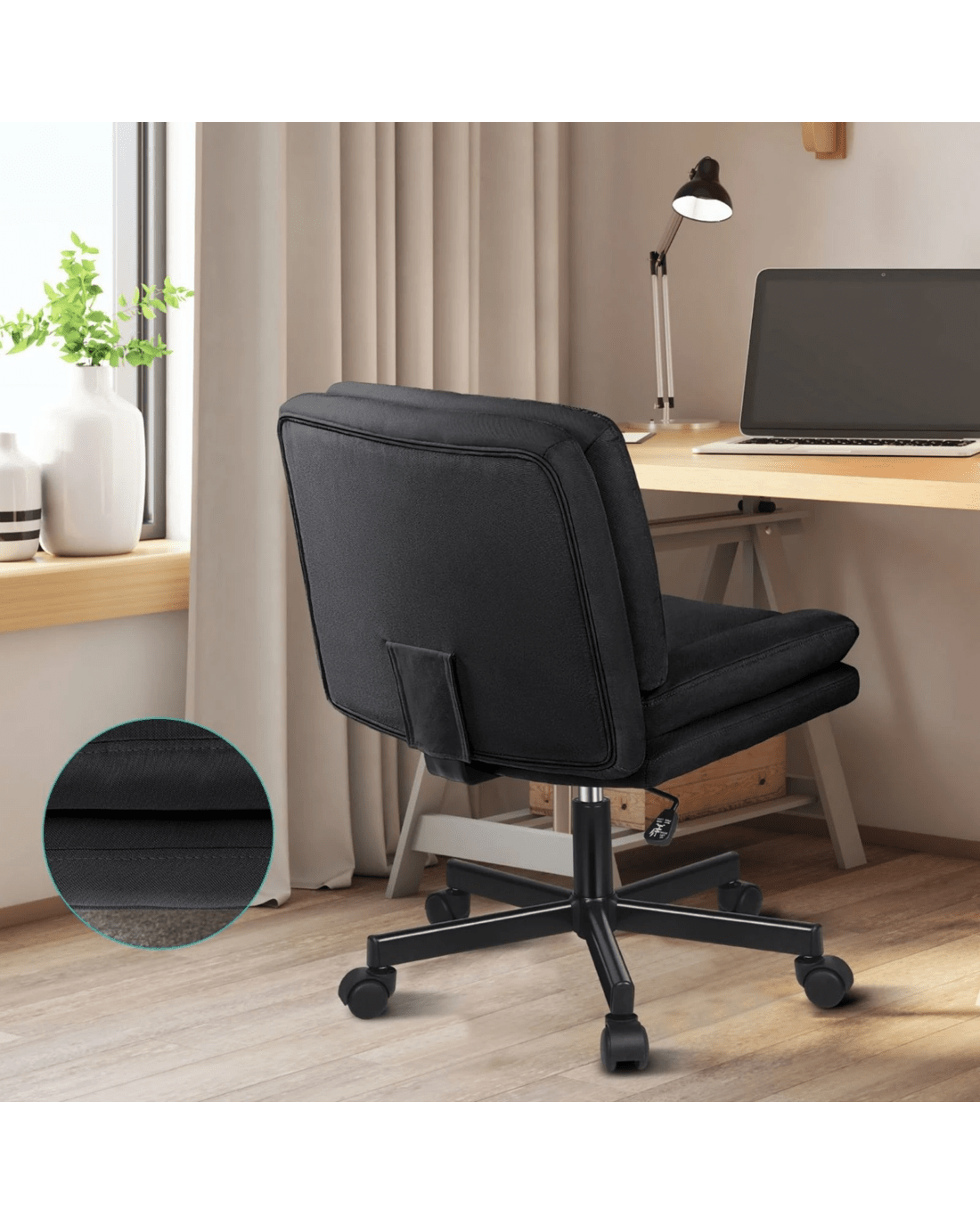 Upholstered from highly breathable linen fabric and generous foam paddings, this computer chair ensures optimal comfort and durability. The curved and dual-layer wider backrest and seat perfectly contour your body, providing extra comfort and ergonomically support. This office chair helps eliminate back and posterior fatigue after long hours of sitting.