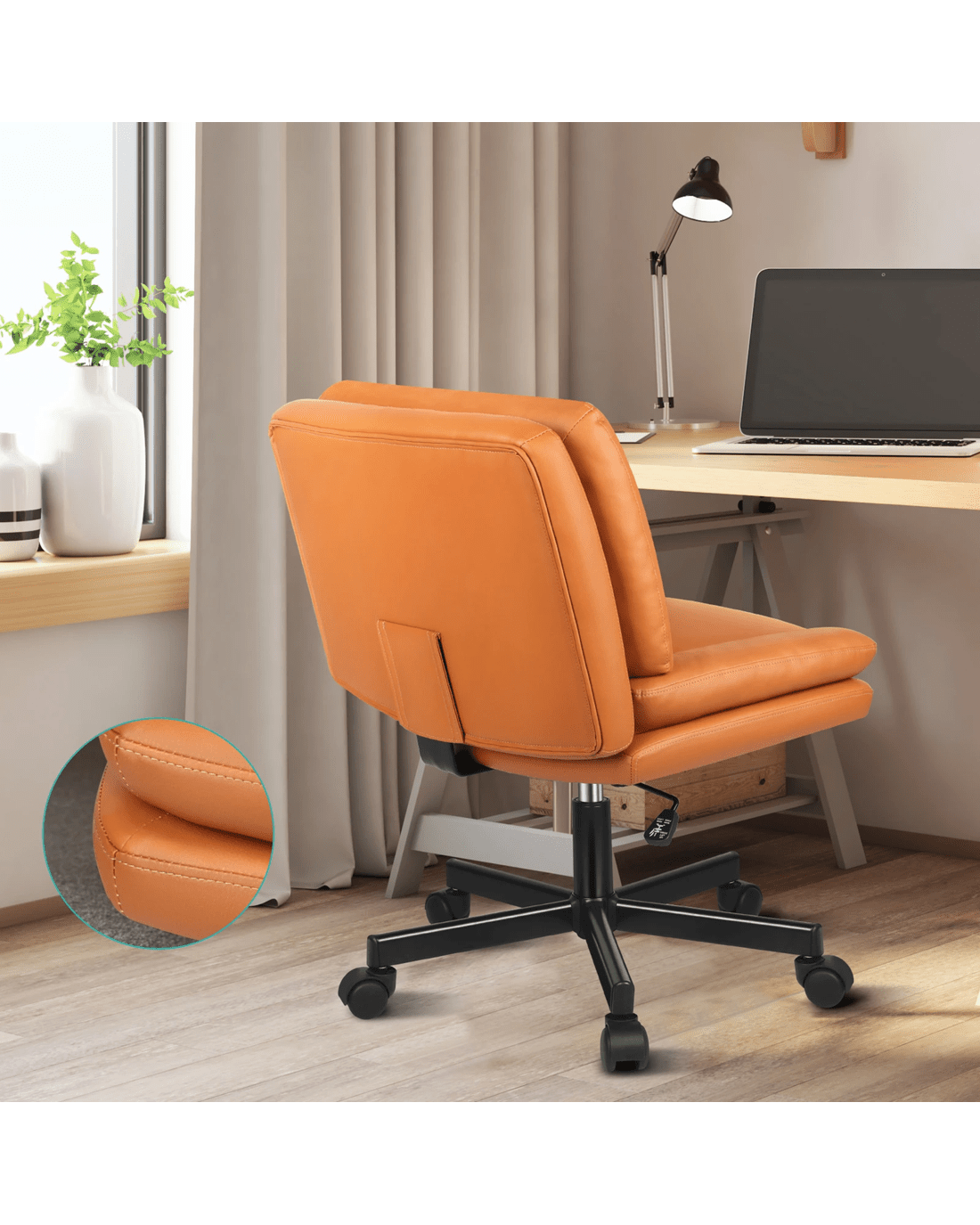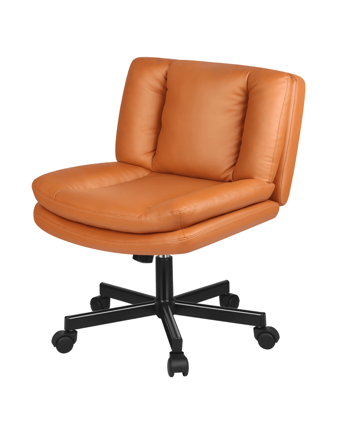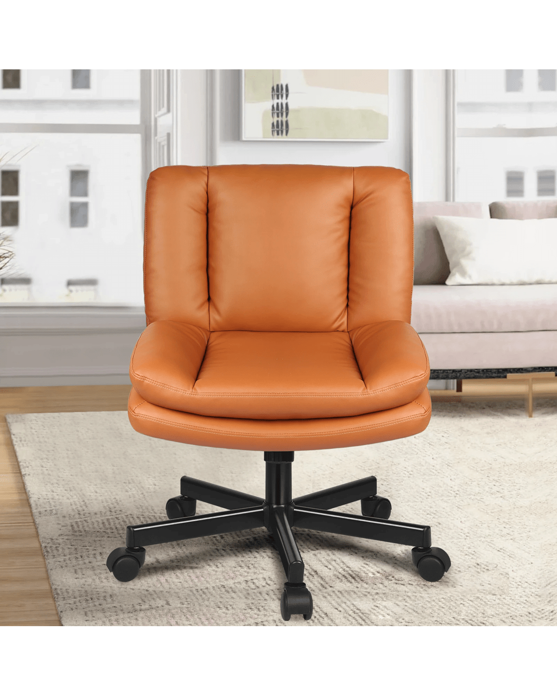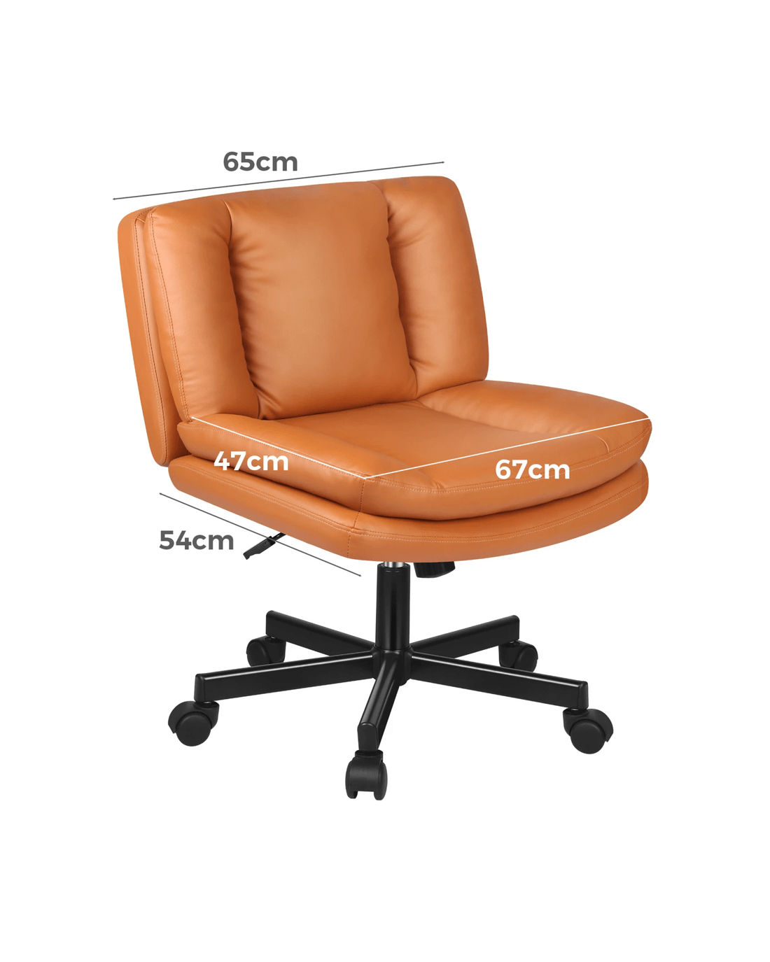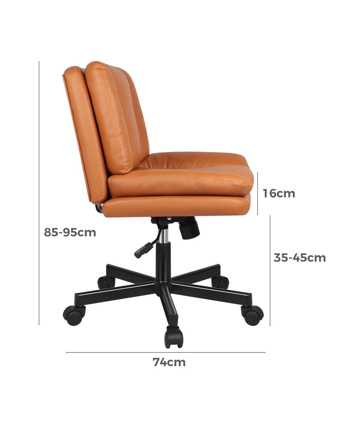 Alfordson Armless Office Desk Chair Mid Back Wide Seat w/ Wheels Leather - Brown