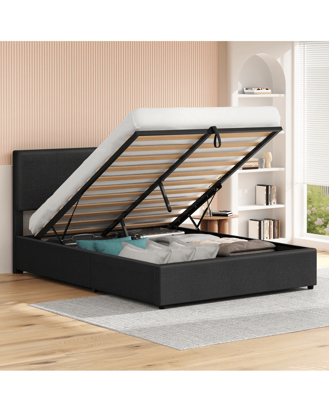 Space optimization - Elevate your bedroom with a bed frame that masterfully combines generous storage and elegant design. Perfect for compact apartments or anyone seeking to maximize space, our gas-lift bed offers a sleek, sturdy solution for a clutter-free retreat. Its effortless hydraulic mechanism reveals ample built-in storage, helping you organize efficiently while maintaining a clean, serene aesthetic.