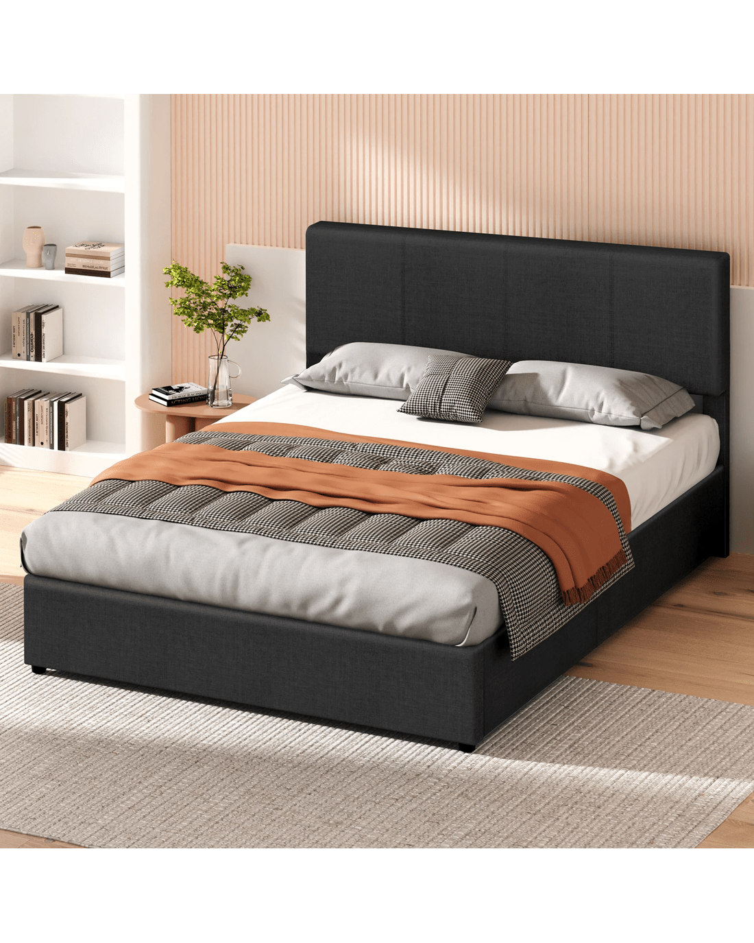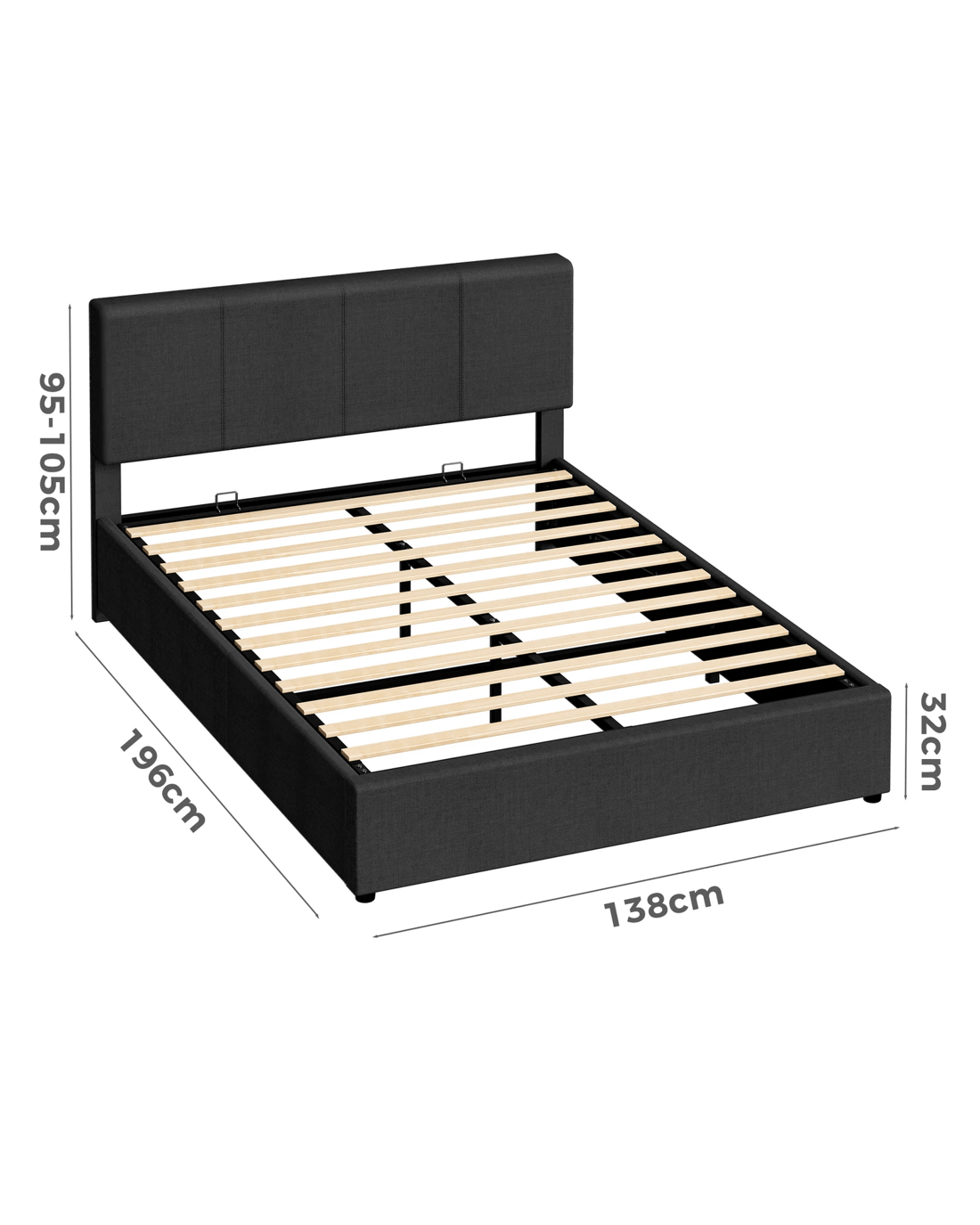 Alfordson Bed Frame Double Gas Lift Storage Adjustable Headboard Luria - Charcoal