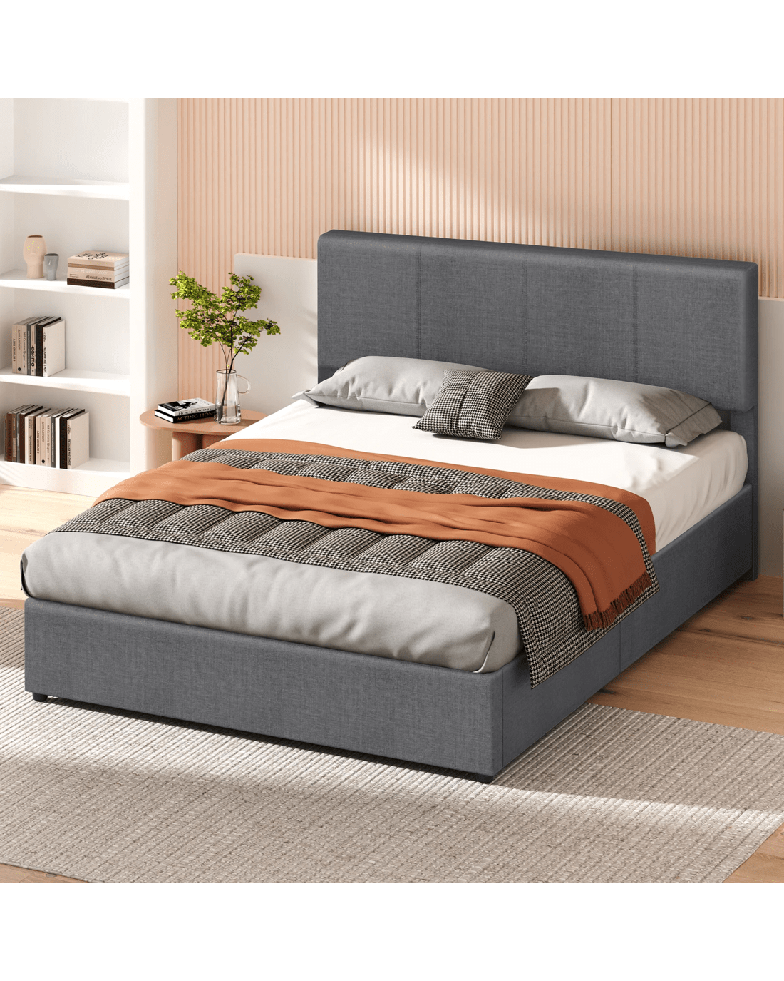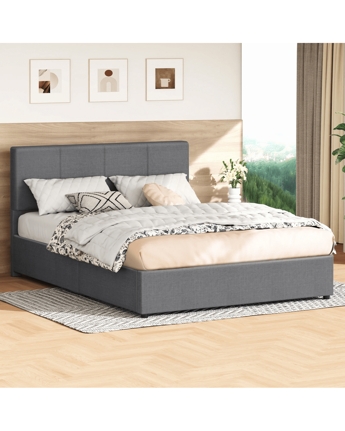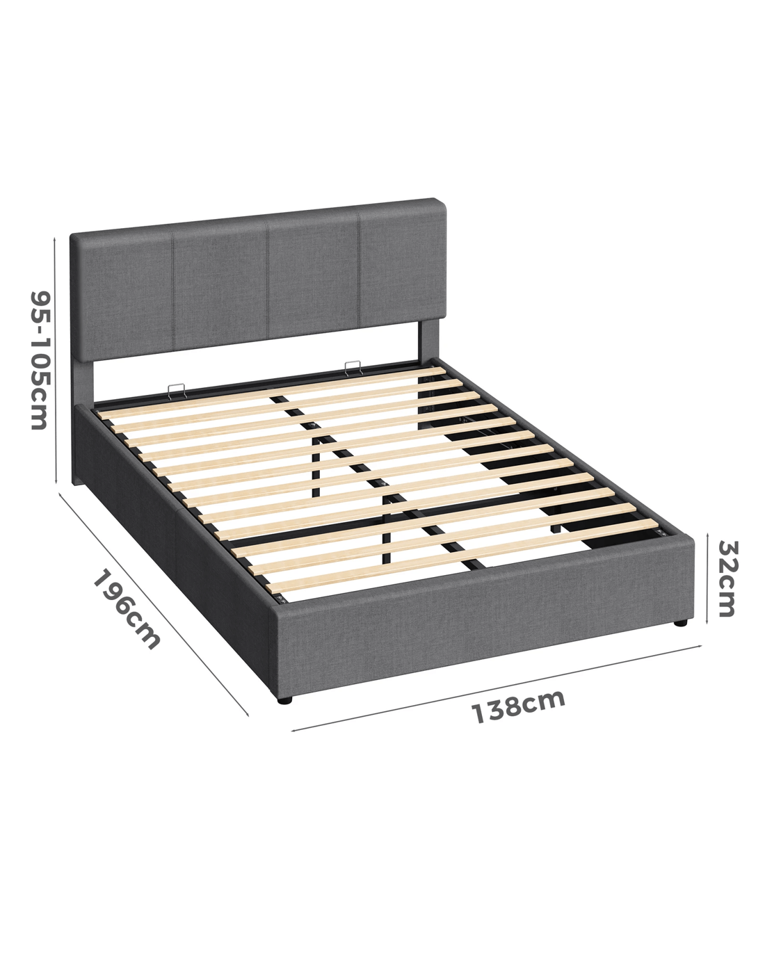 Sold by Aussie Union GroupAlfordson Bed Frame Double Gas Lift Storage Adjustable Headboard Luria - Grey