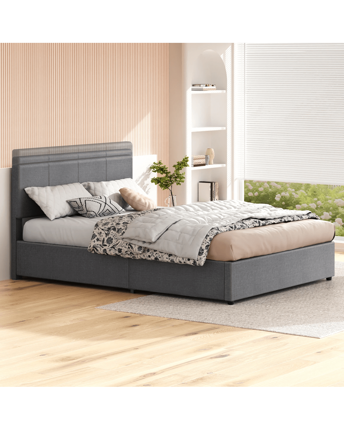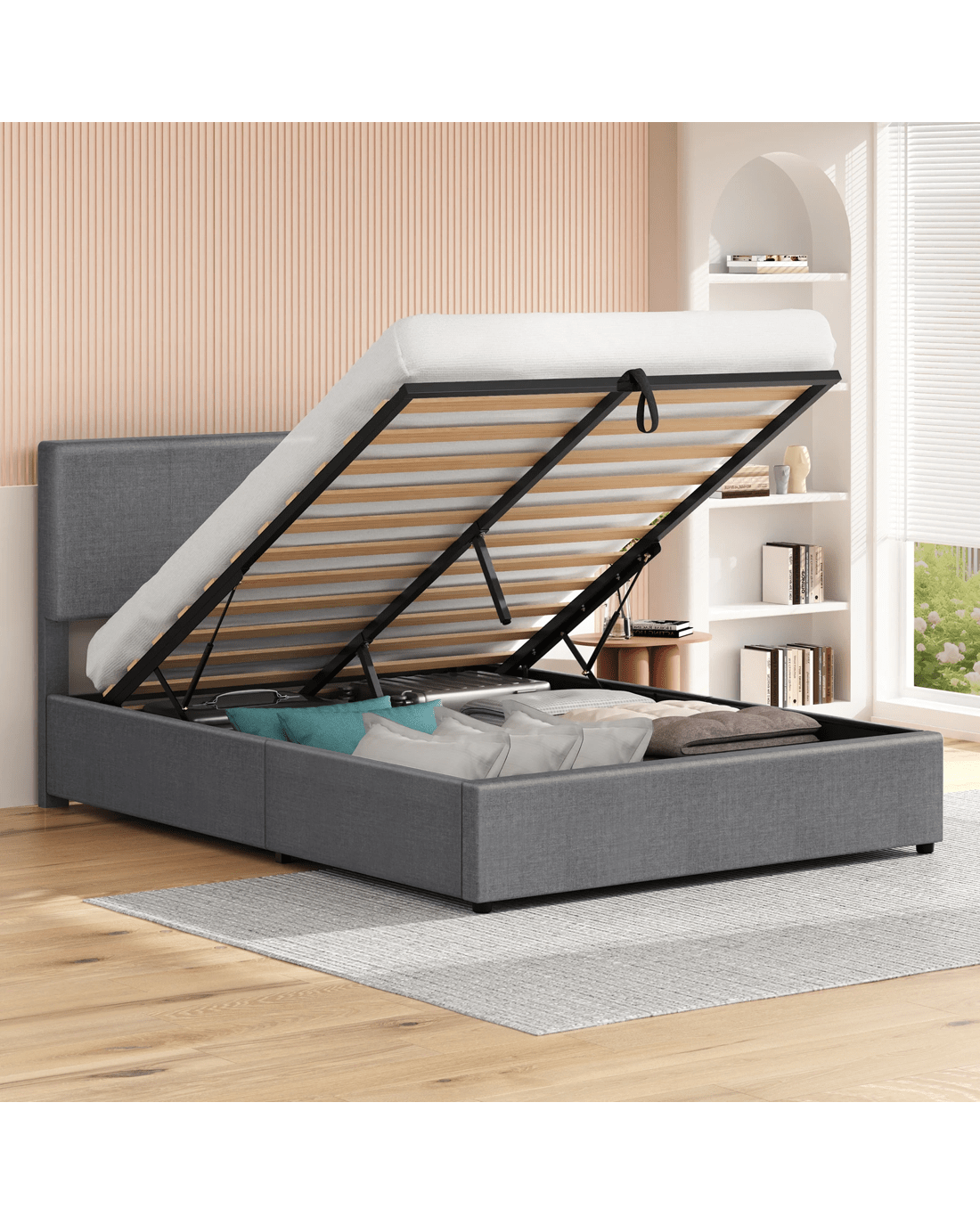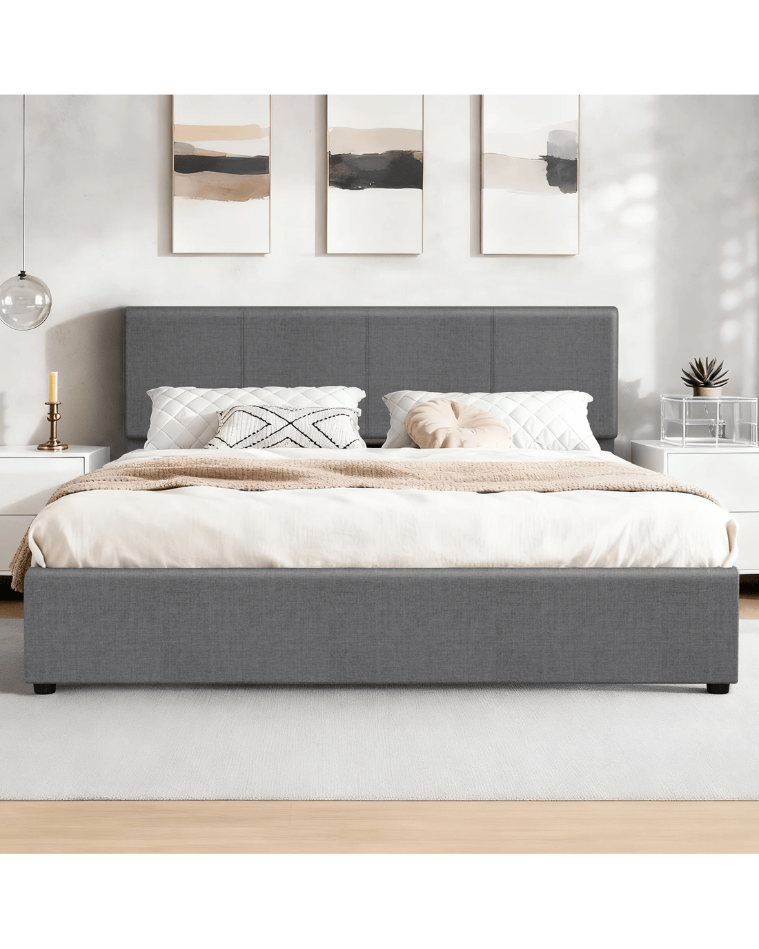 Space optimization - Elevate your bedroom with a bed frame that masterfully combines generous storage and elegant design. Perfect for compact apartments or anyone seeking to maximize space, our gas-lift bed offers a sleek, sturdy solution for a clutter-free retreat. Its effortless hydraulic mechanism reveals ample built-in storage, helping you organize efficiently while maintaining a clean, serene aesthetic.