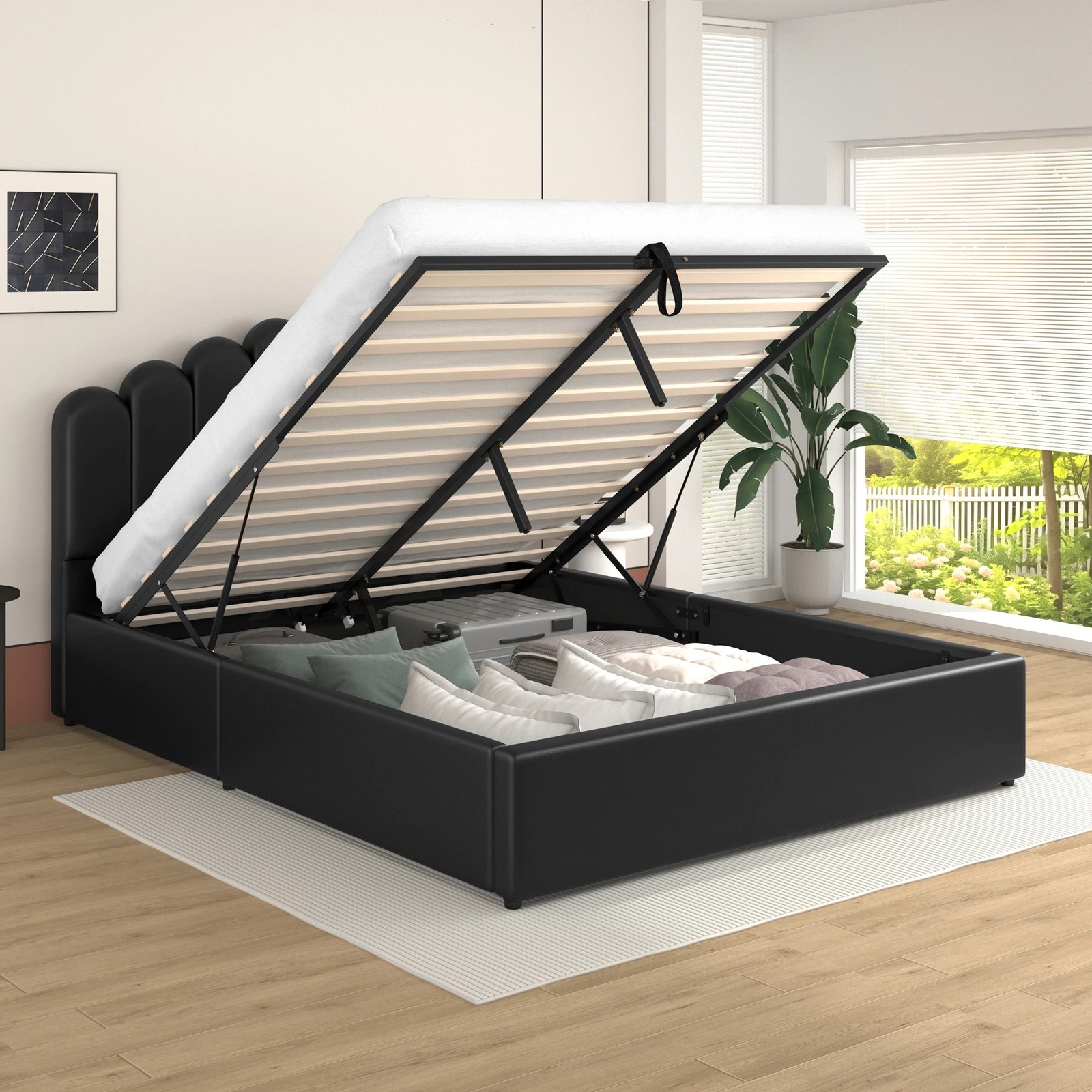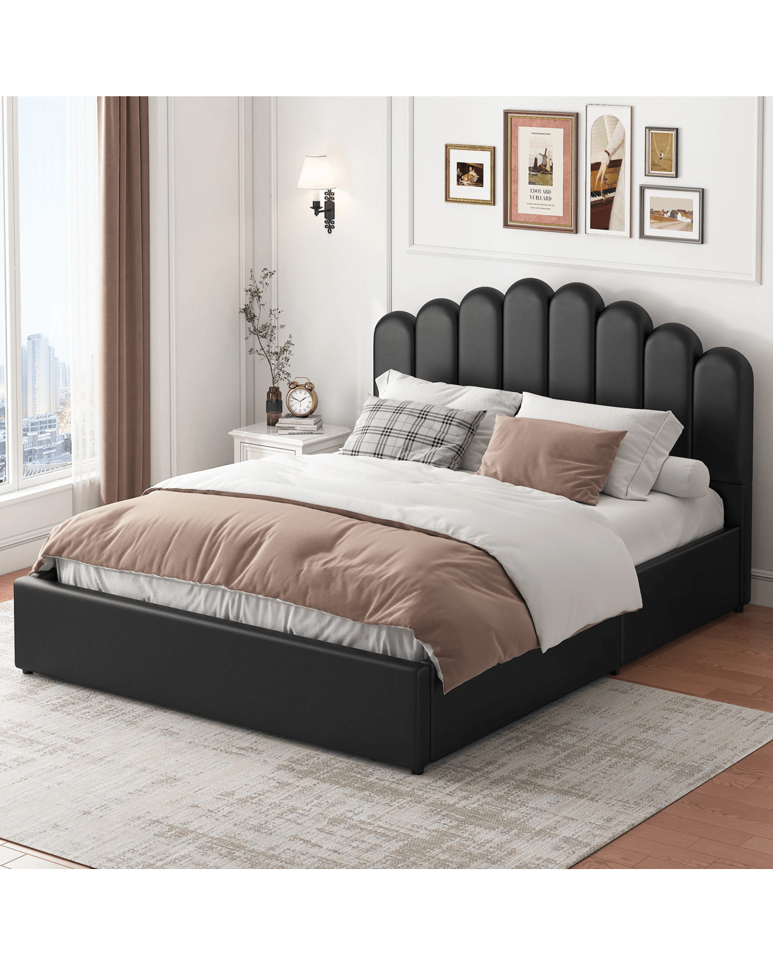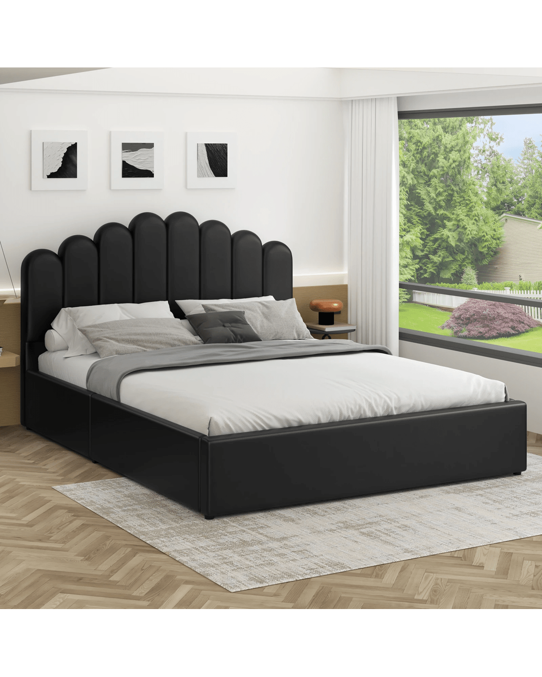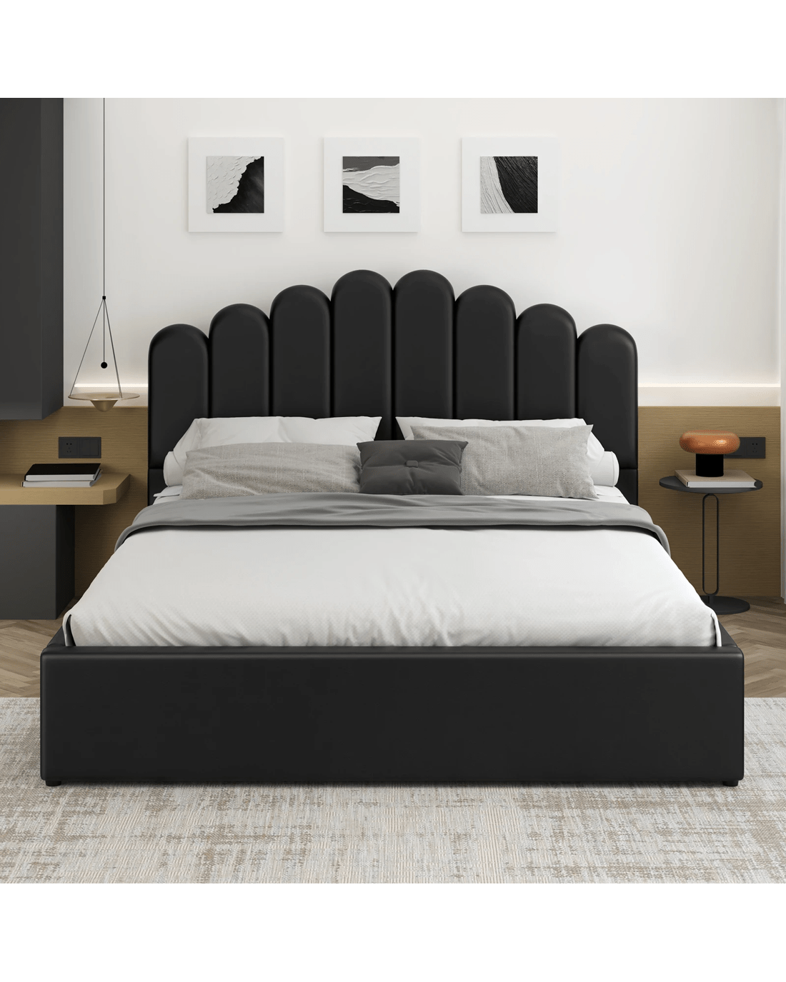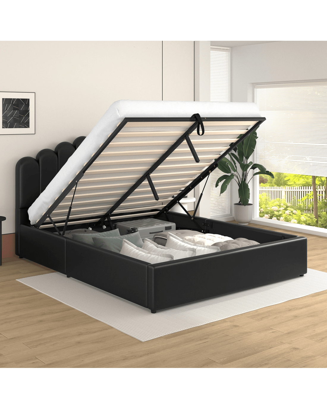 Alfordson Bed Frame Double Size Gas Lift Storage Base Wooden Milton - Black