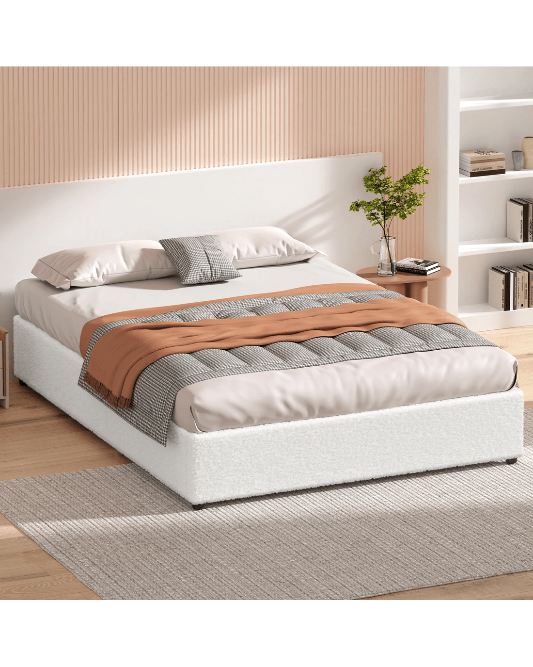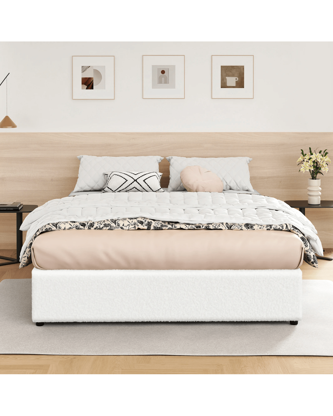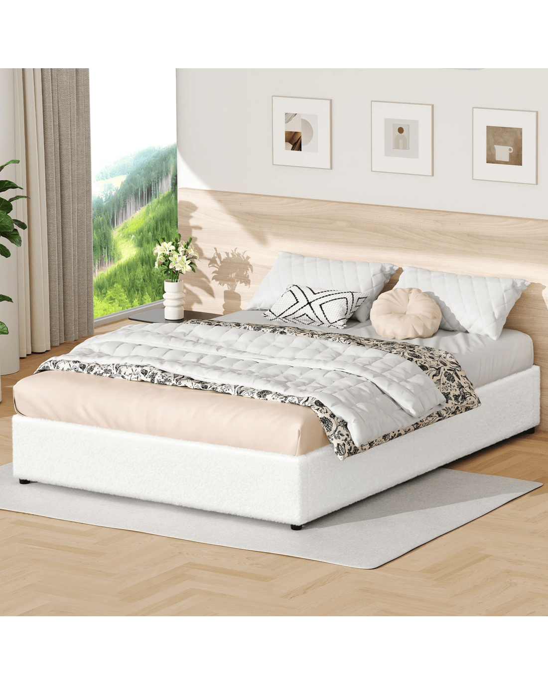 Sold by Aussie Union GroupAlfordson Bed Frame Double Size Gas Lift Storage Mattress Base Boucle Barlow - White