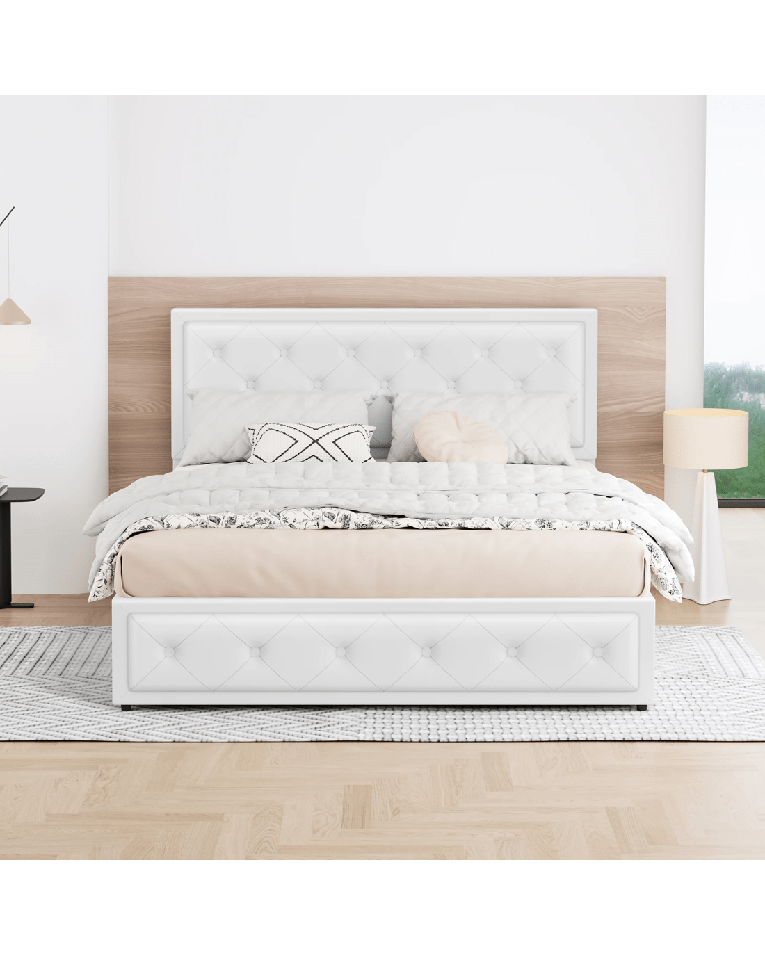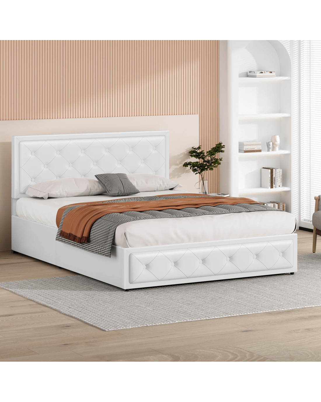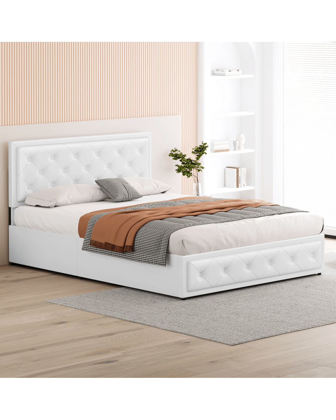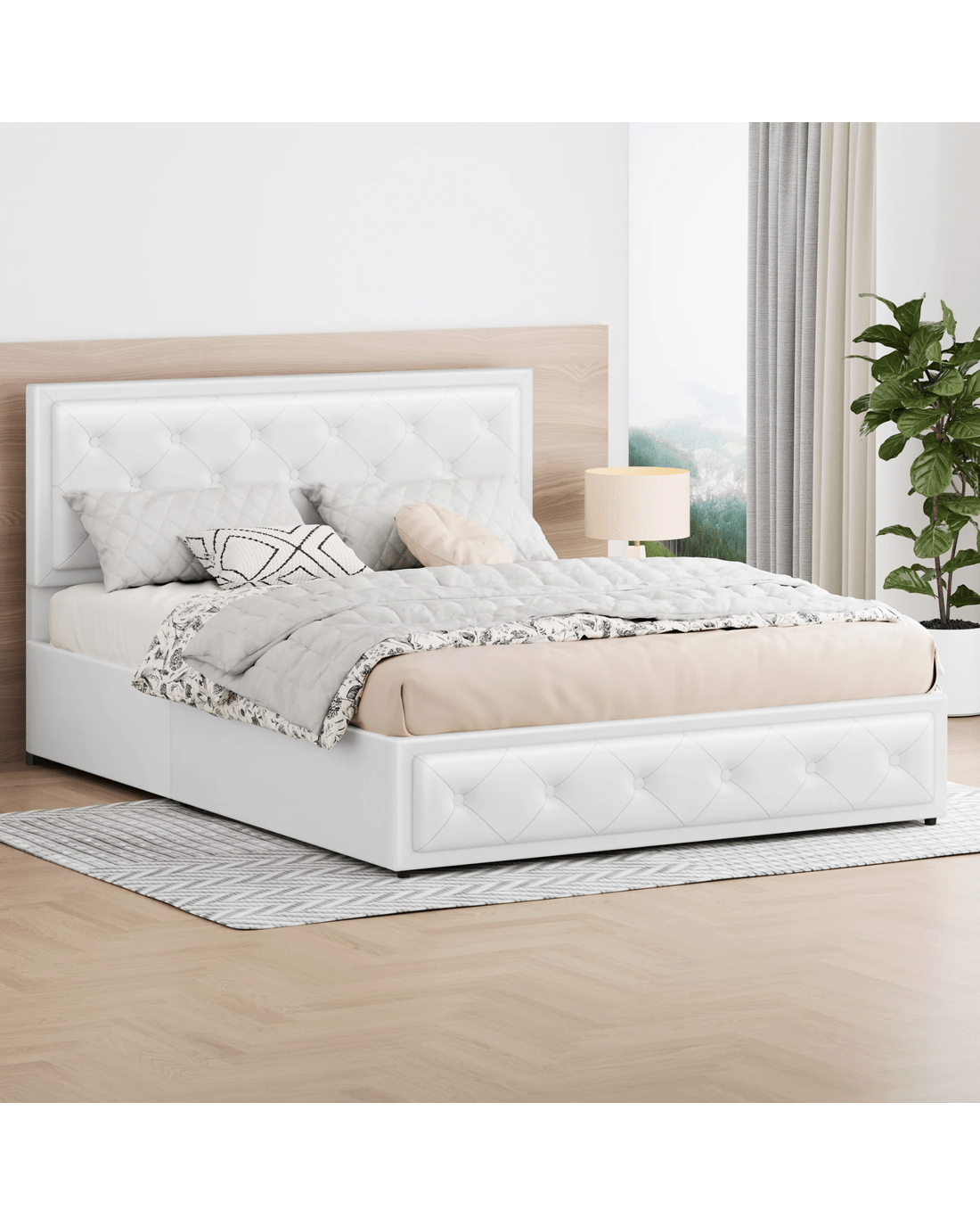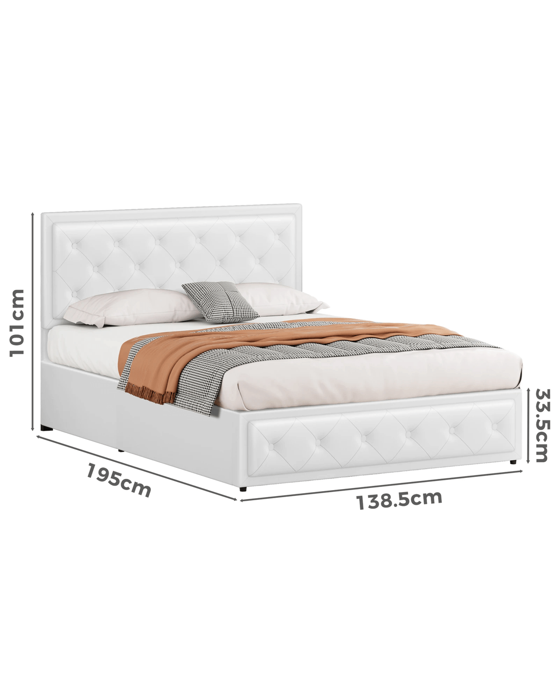Sold by Aussie Union GroupAlfordson Bed Frame Double Size Gas Lift Storage Mattress Base Leather Dinana - White