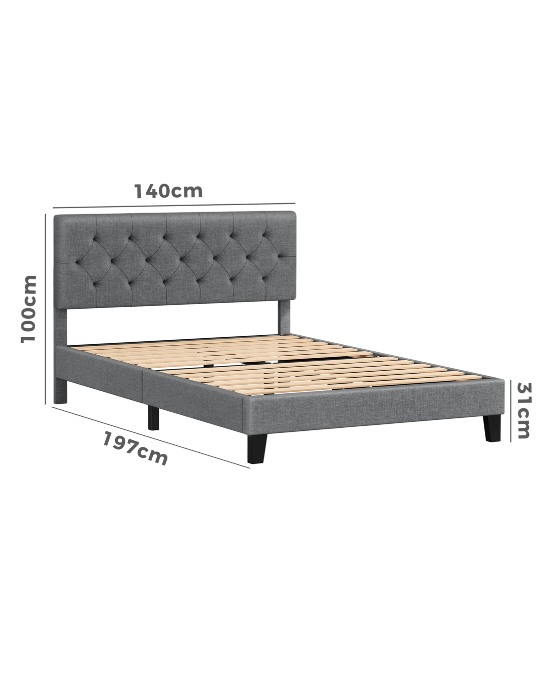 Sold by Aussie Union GroupAlfordson Bed Frame Double Size Tufted Headboard Modern Fabric Meduna - Grey