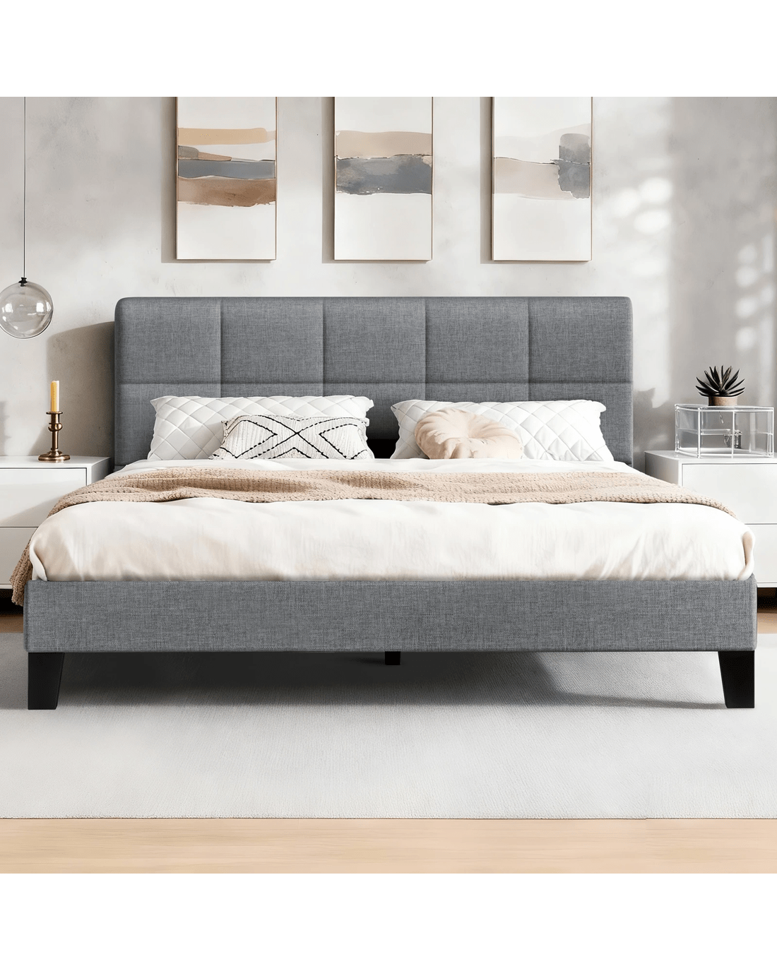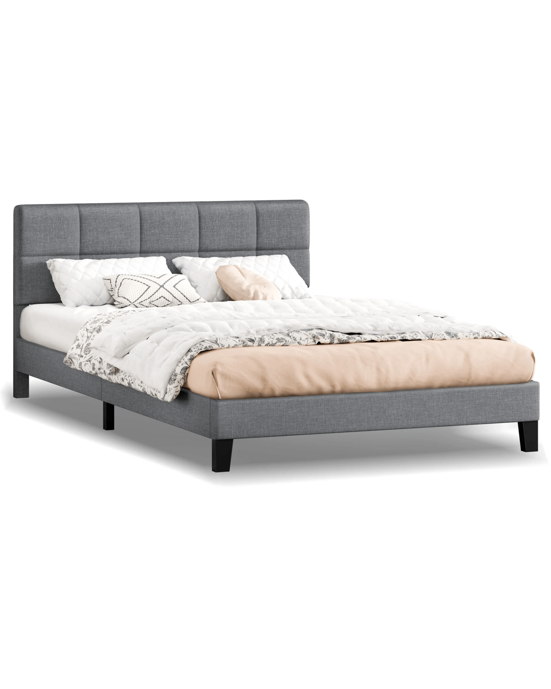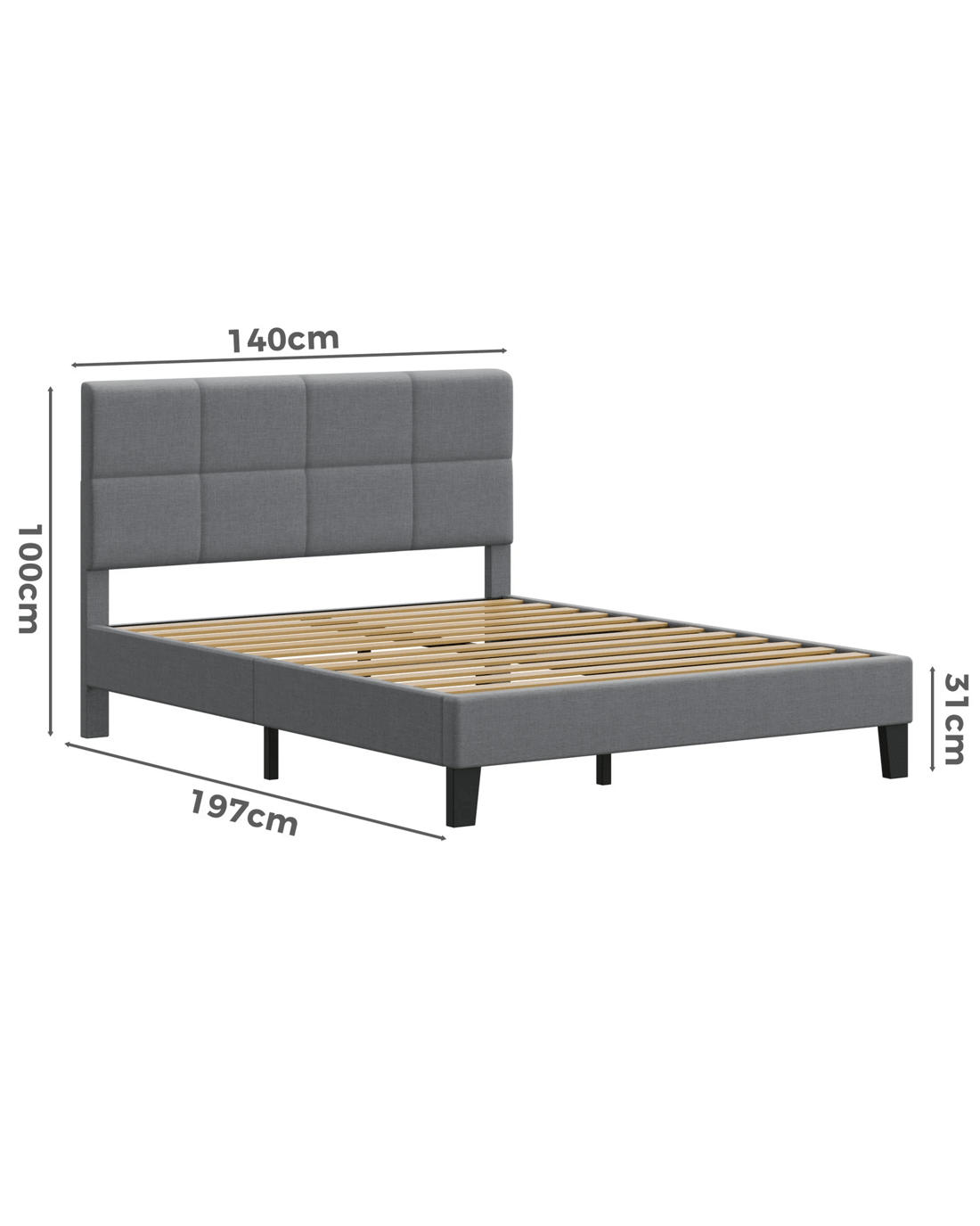 Sold by Aussie Union GroupAlfordson Bed Frame Double Size Wooden Slats Platform Fabric Paula - Grey