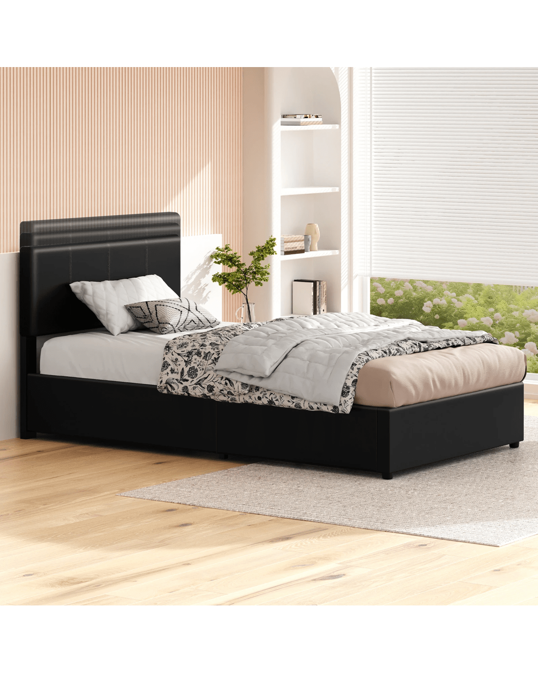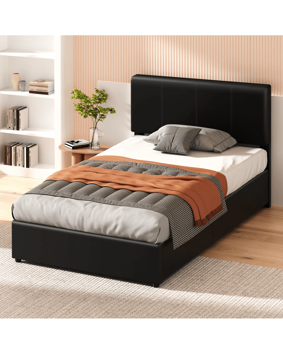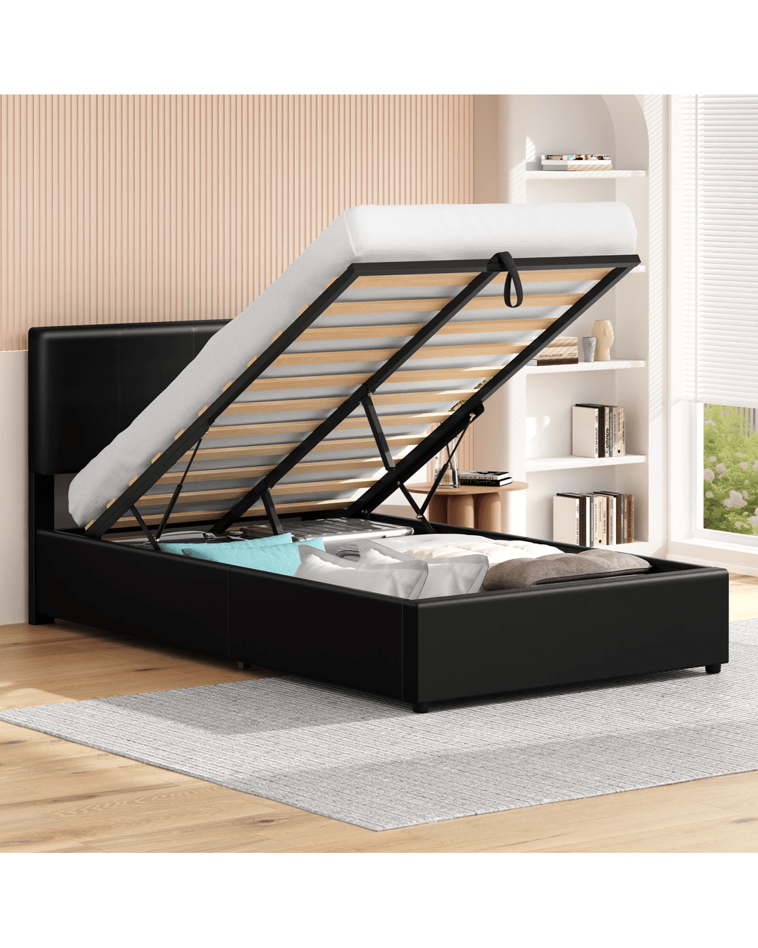 Sold by Aussie Union GroupAlfordson Bed Frame King Single Gas Lift Storage Adjustable Headboard Luria - Black