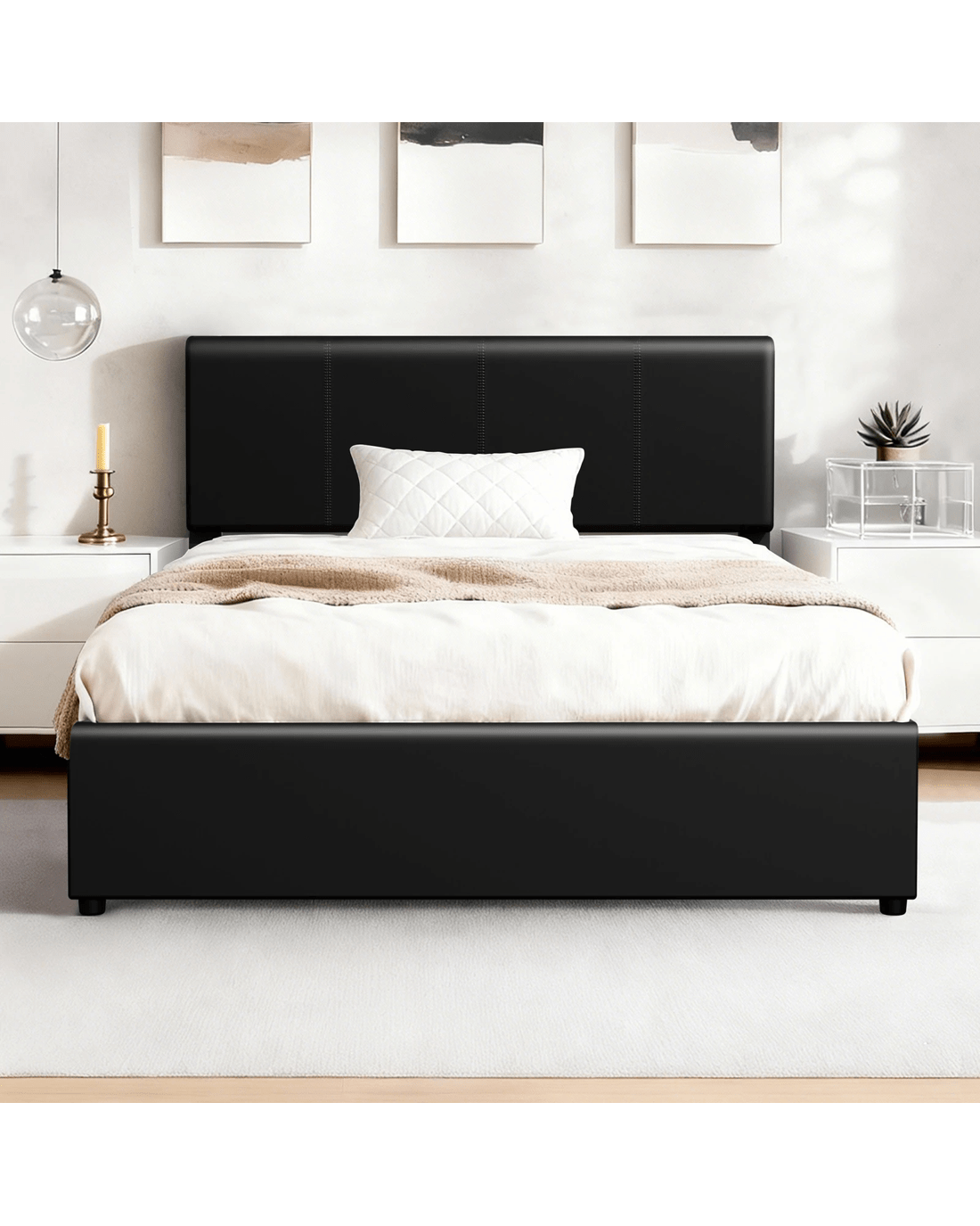 Space optimization - Elevate your bedroom with a bed frame that masterfully combines generous storage and elegant design. Perfect for compact apartments or anyone seeking to maximize space, our gas-lift bed offers a sleek, sturdy solution for a clutter-free retreat. Its effortless hydraulic mechanism reveals ample built-in storage, helping you organize efficiently while maintaining a clean, serene aesthetic.