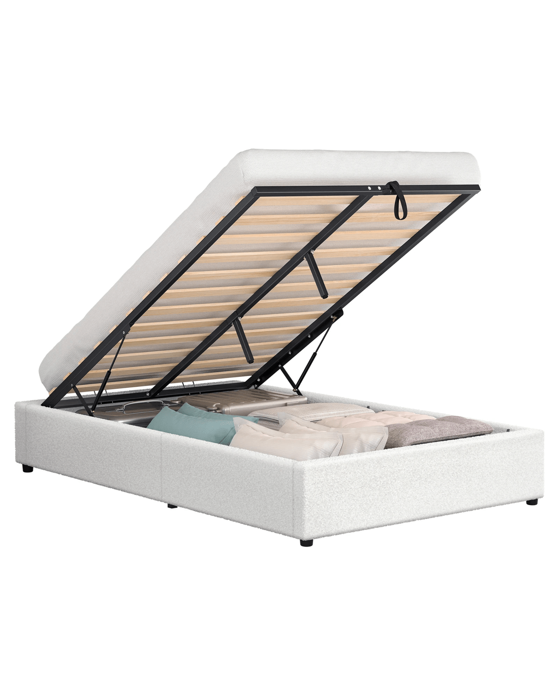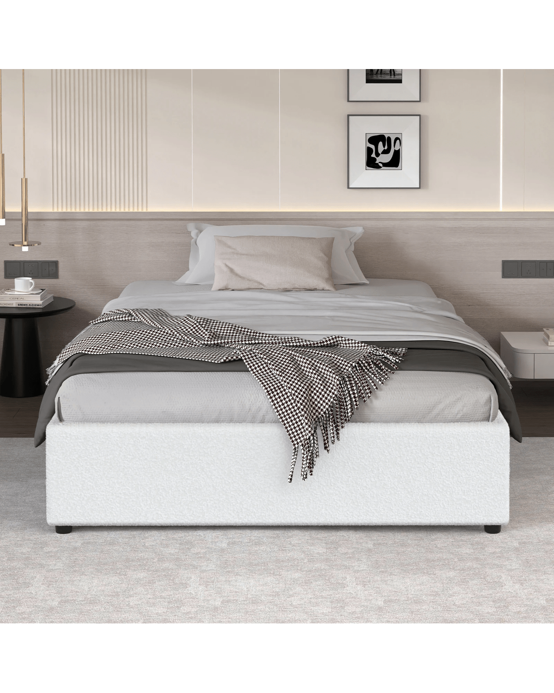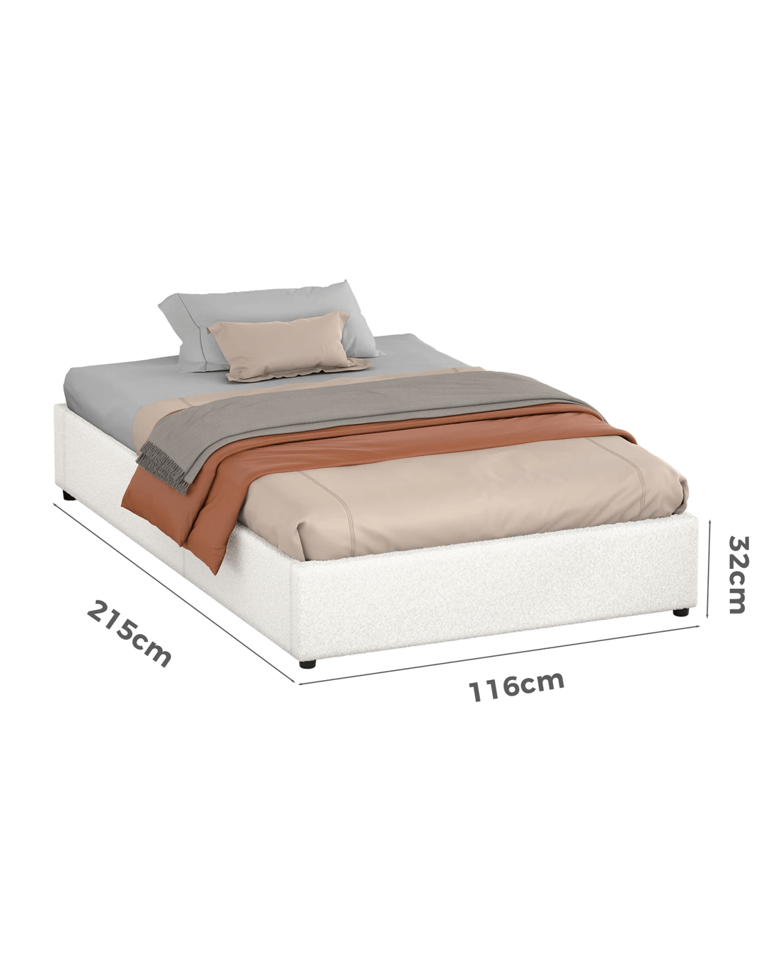 Sold by Aussie Union GroupAlfordson Bed Frame King Single Gas Lift Storage Mattress Base Boucle Wilbur - White