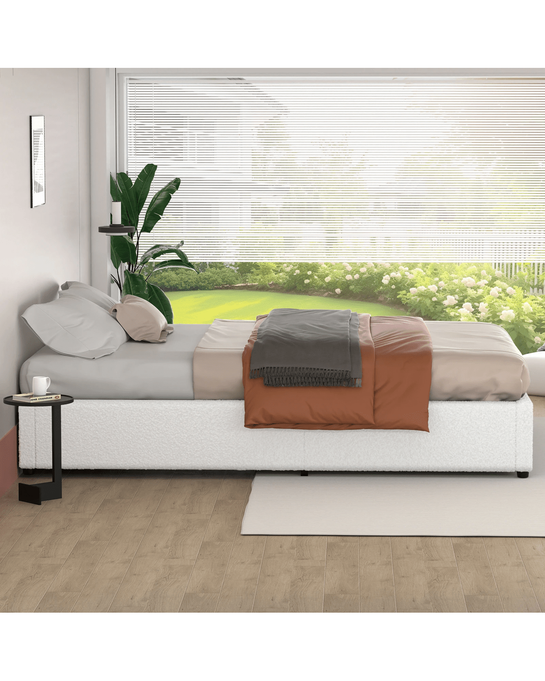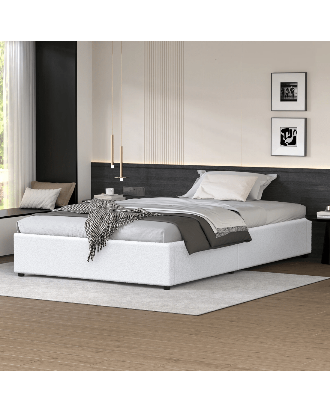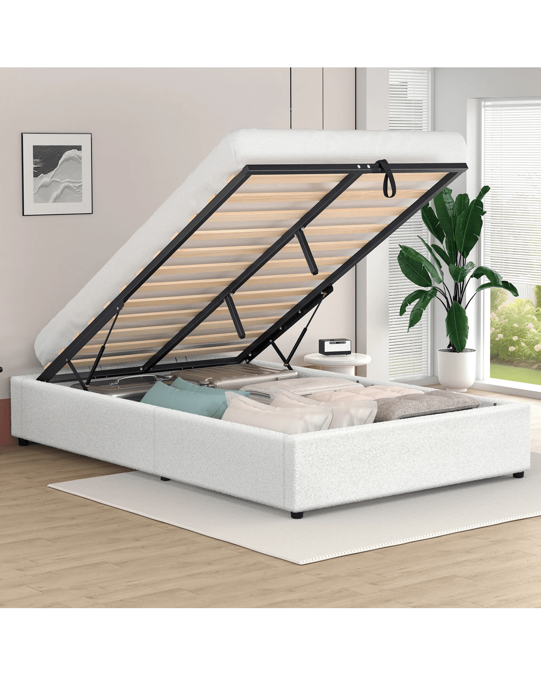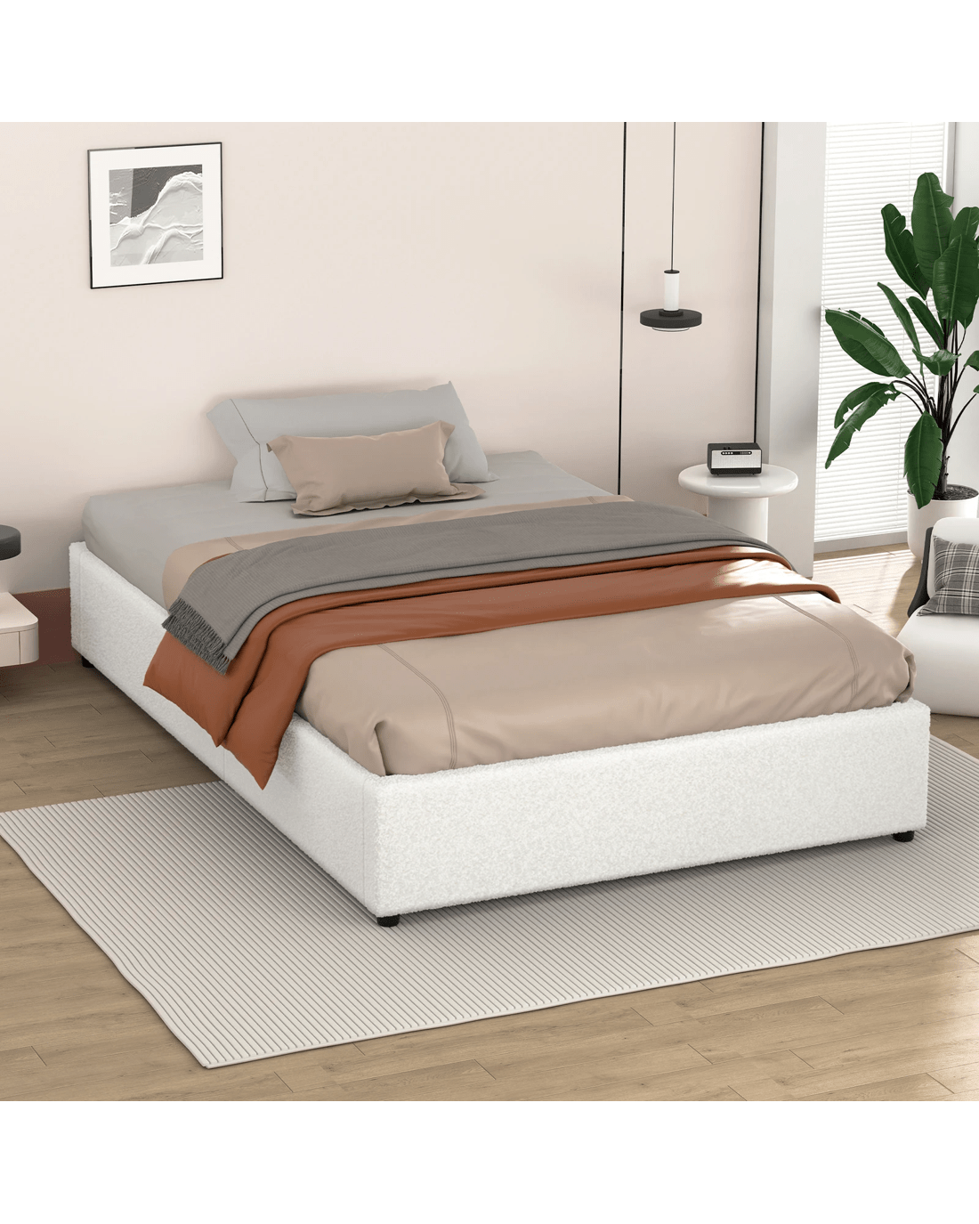 Sold by Aussie Union GroupAlfordson Bed Frame King Single Gas Lift Storage Mattress Base Boucle Wilbur - White