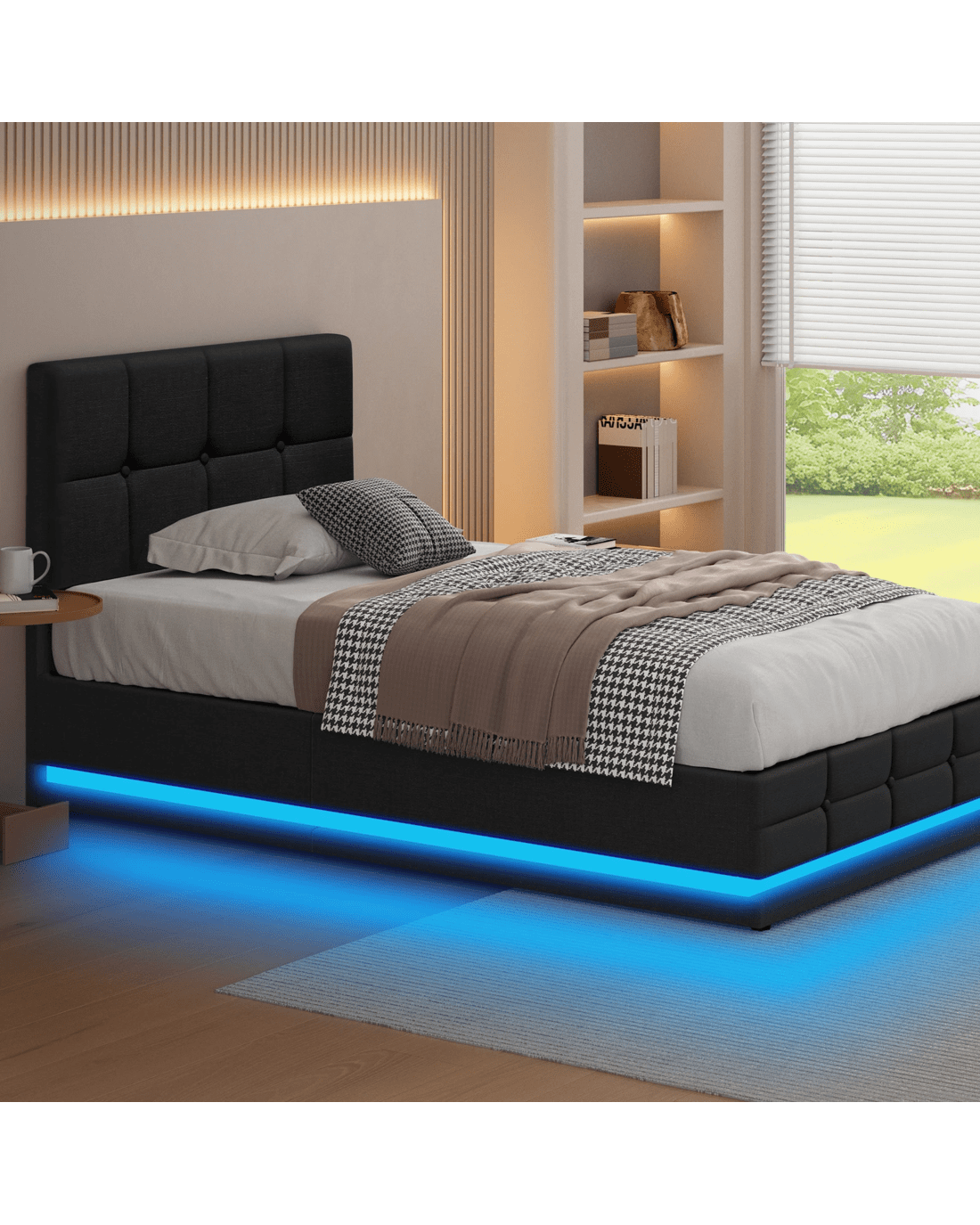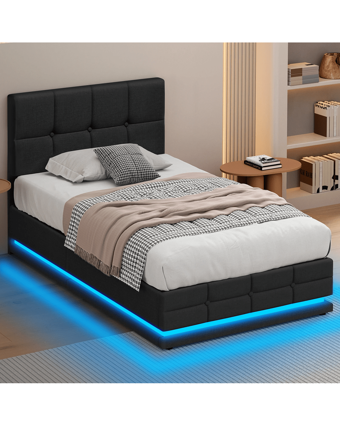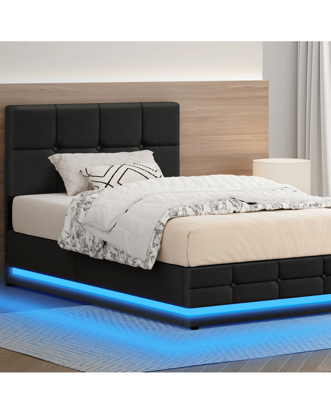 Customisable LED light with controller - The bed comes with LED lighting at the bottom and a remote control for turning light on/off or changing light color, which can provide adequate lighting to avoid nighttime accidents, especially for seniors. It saves you money on buying a lamp as well as space for placing the lamp. Being functional yet stylish, you will definitely love this bed frame.