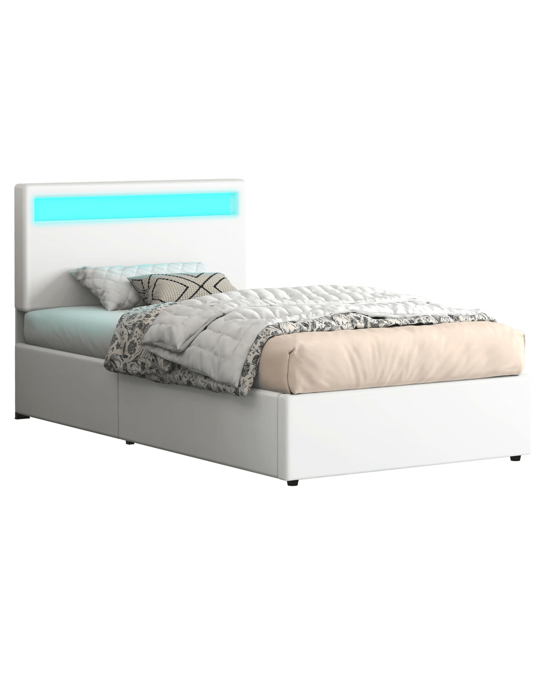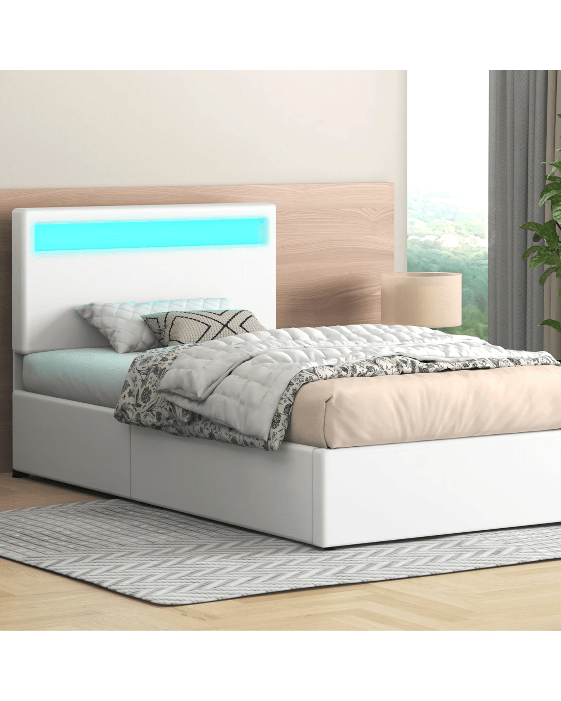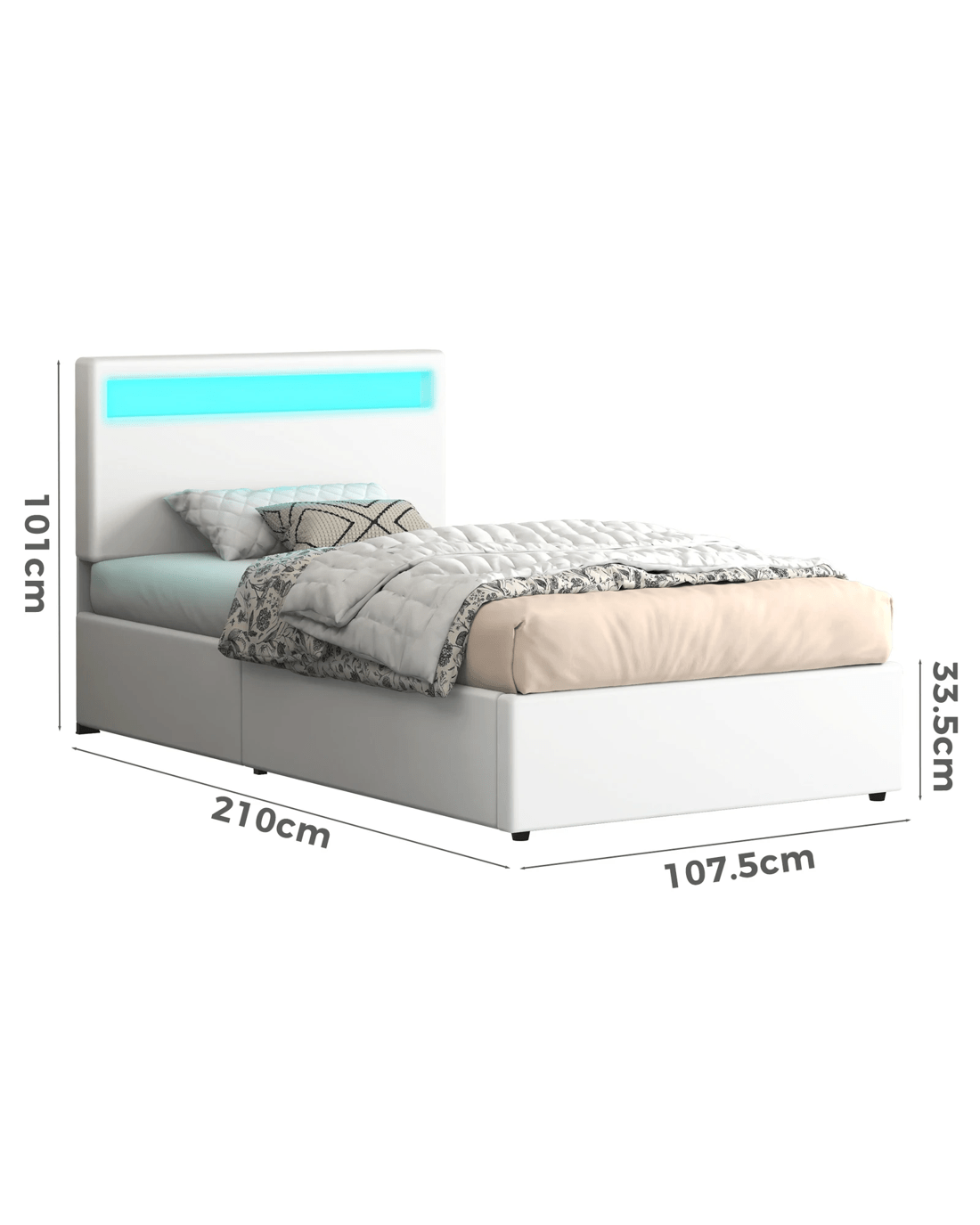 Sold by Aussie Union GroupAlfordson Bed Frame King Single RGB LED Gas Lift Storage Base Luchino - White