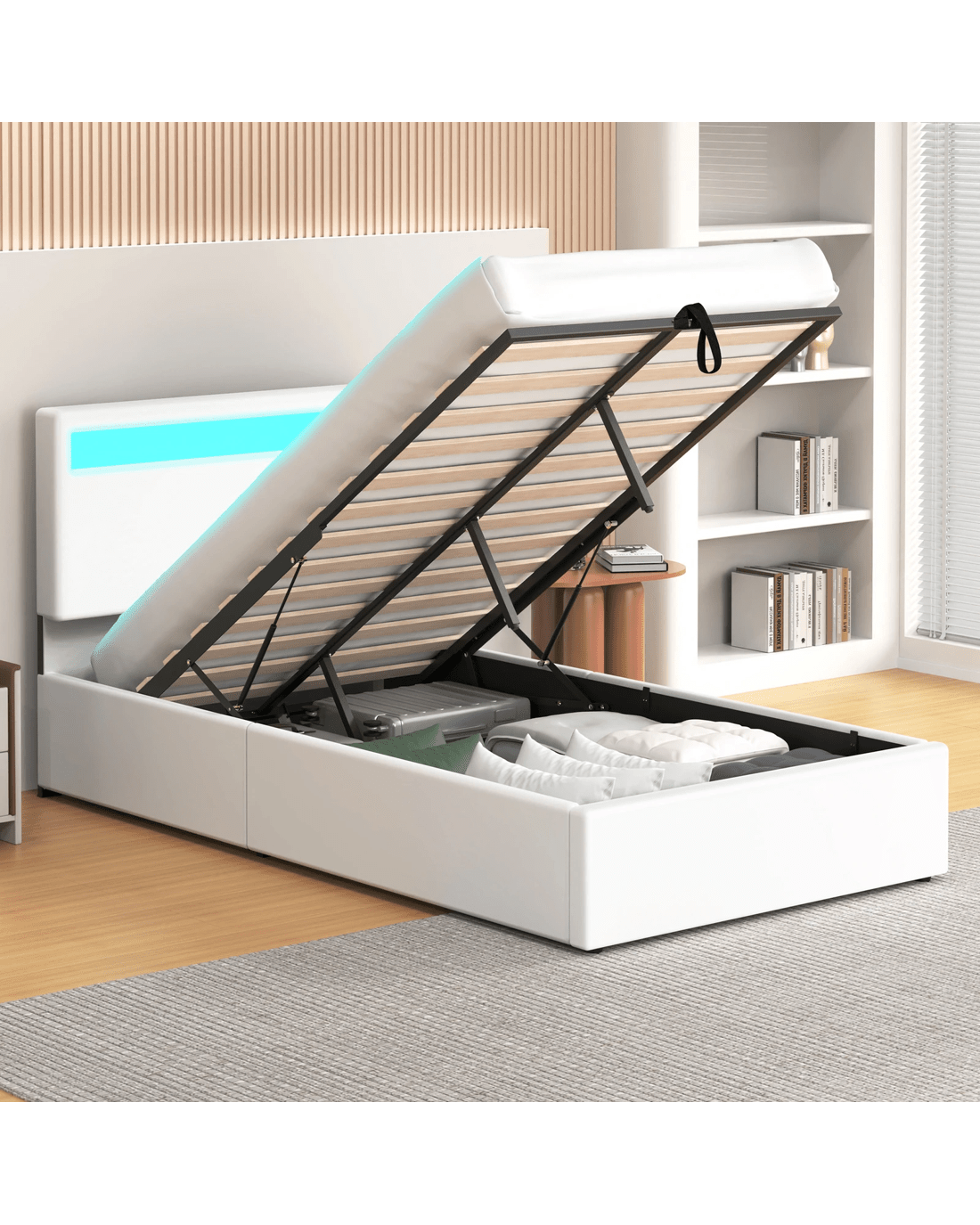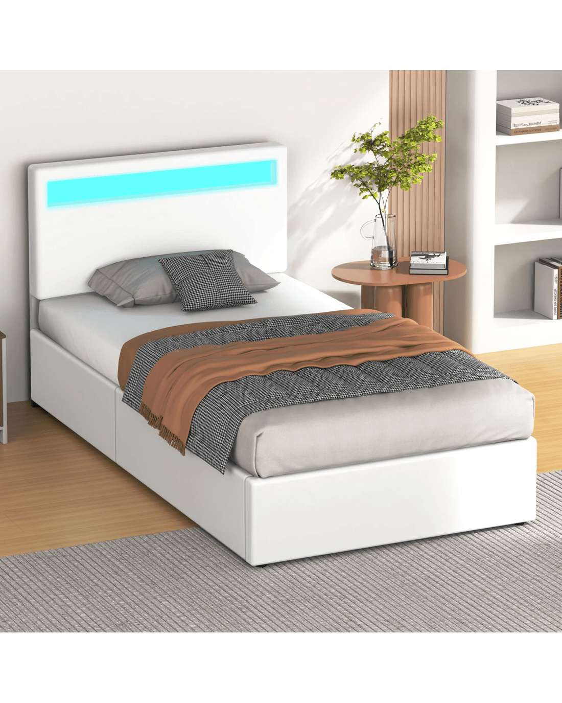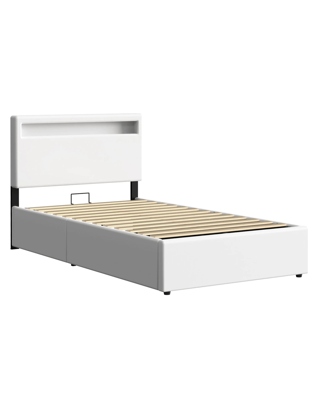 Sold by Aussie Union GroupAlfordson Bed Frame King Single RGB LED Gas Lift Storage Base Luchino - White