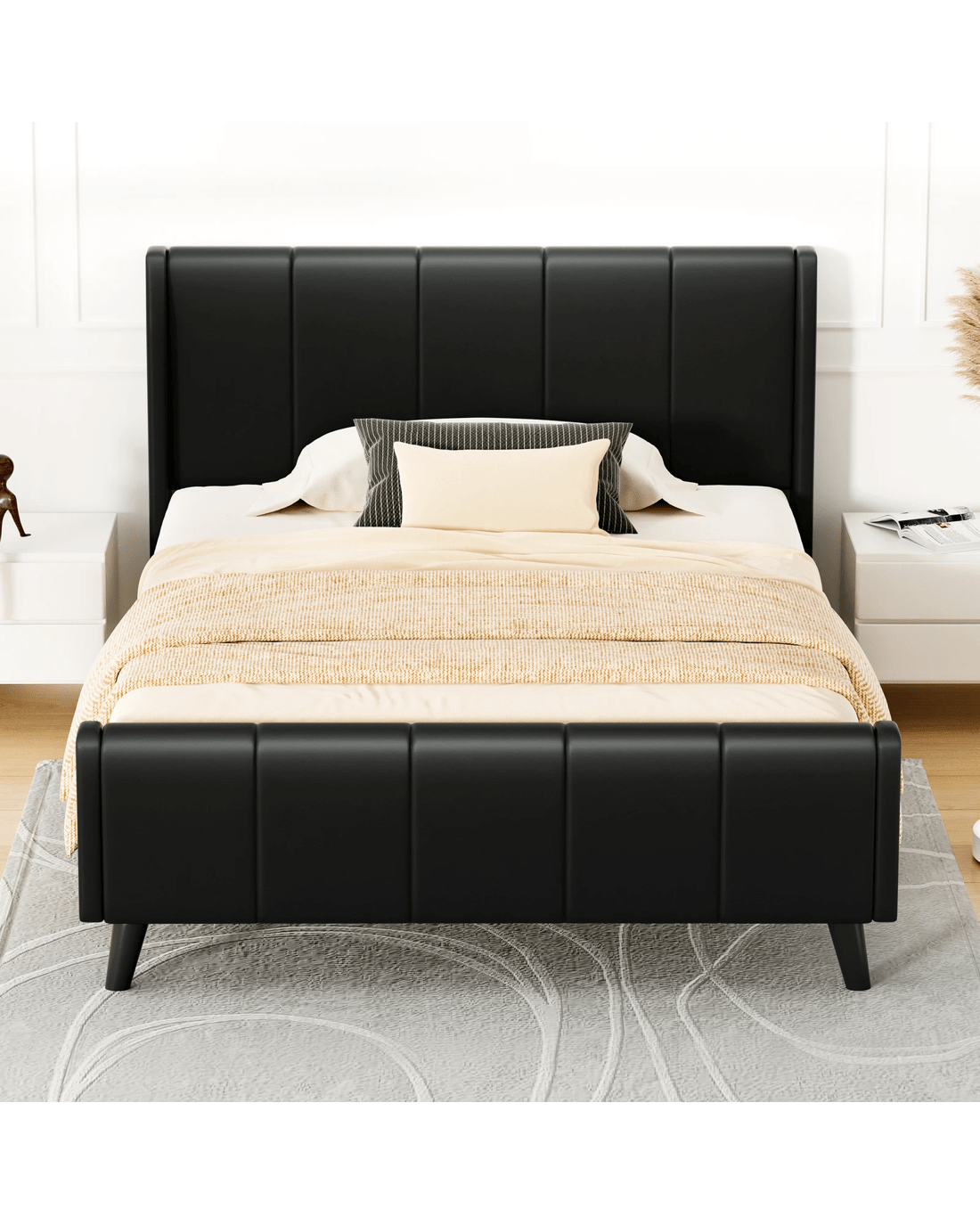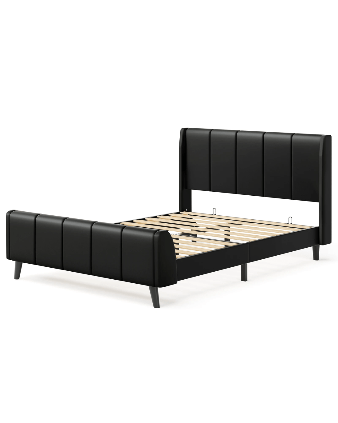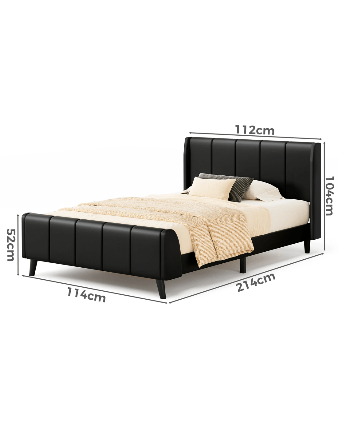 Alfordson Bed Frame King Single Tufted Headboard Base Leather Hundolf - Black