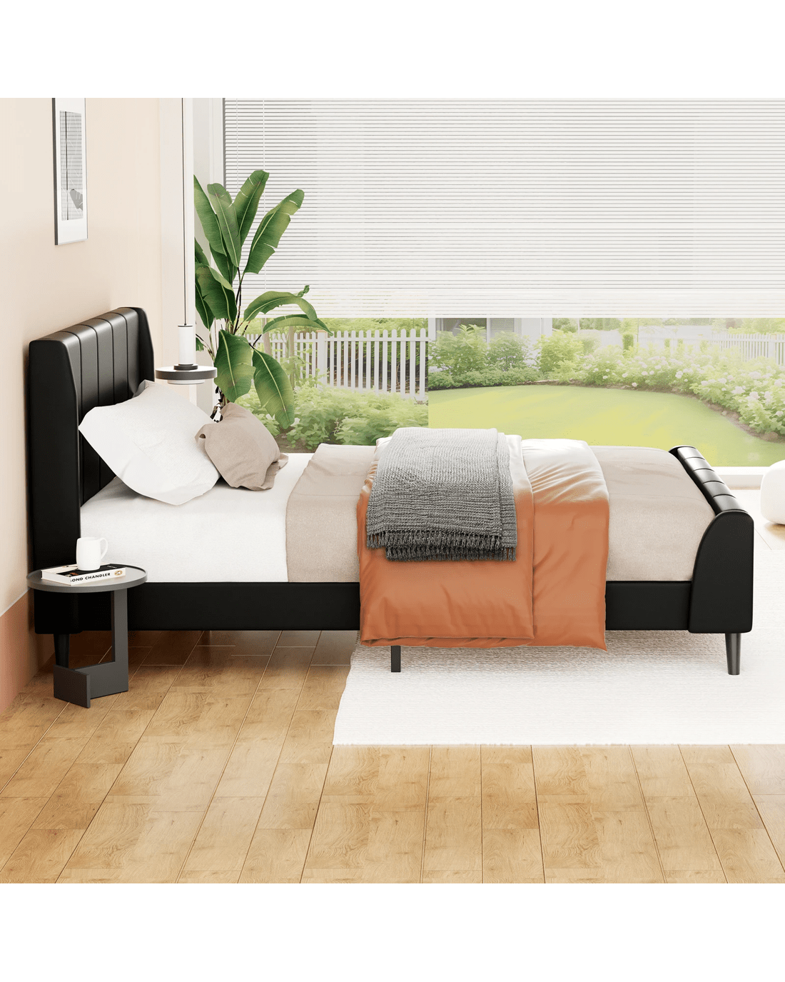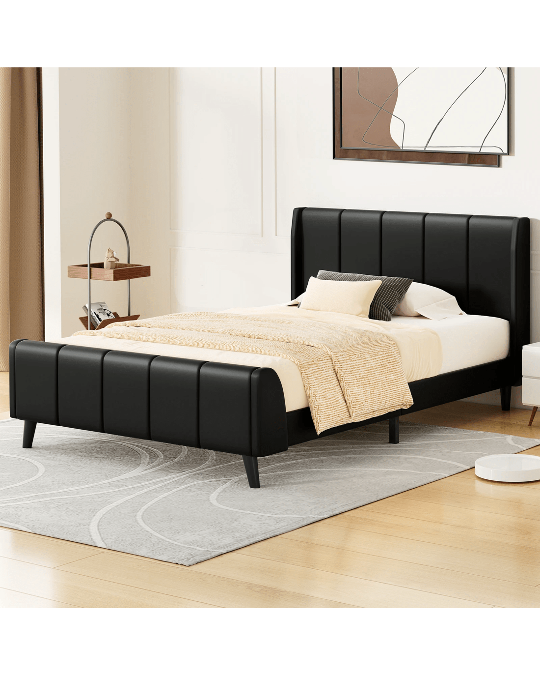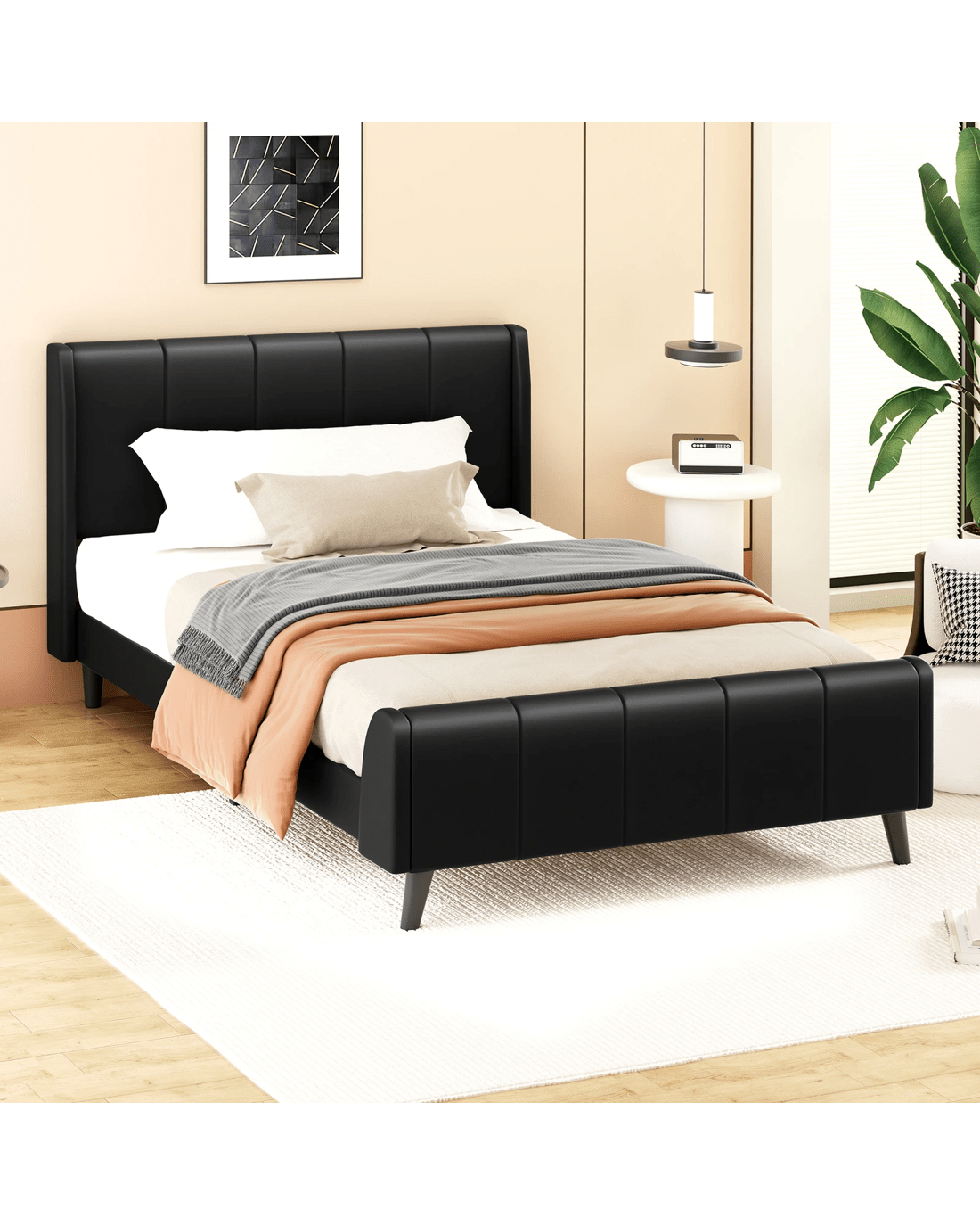 Alfordson Bed Frame King Single Tufted Headboard Base Leather Hundolf - Black