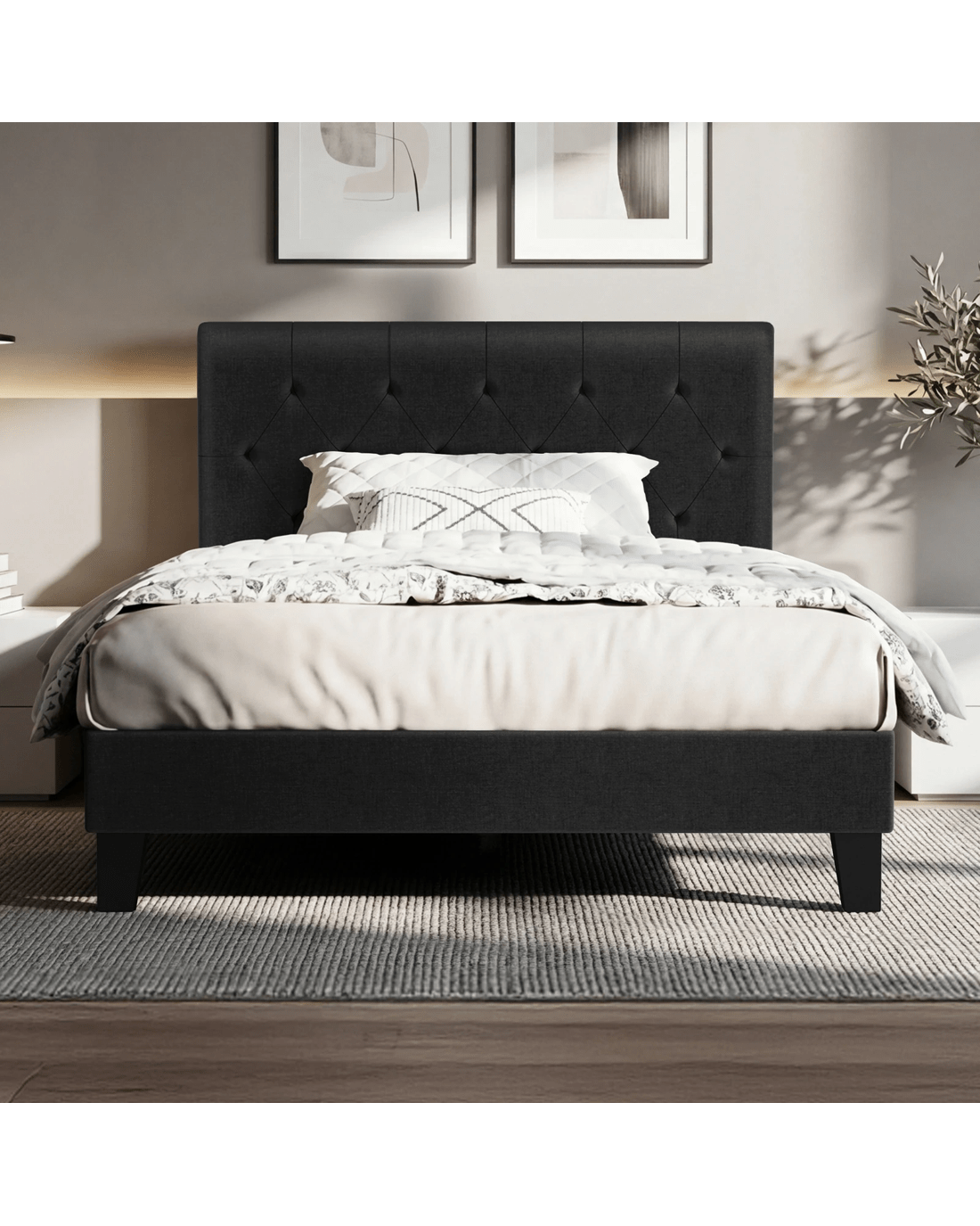 Stand-out style - A comforting bedroom begins with aesthetics. Our bed frame is thoughtfully designed with clean lines, refined details, and premium materials to bring a touch of sophistication to your space.