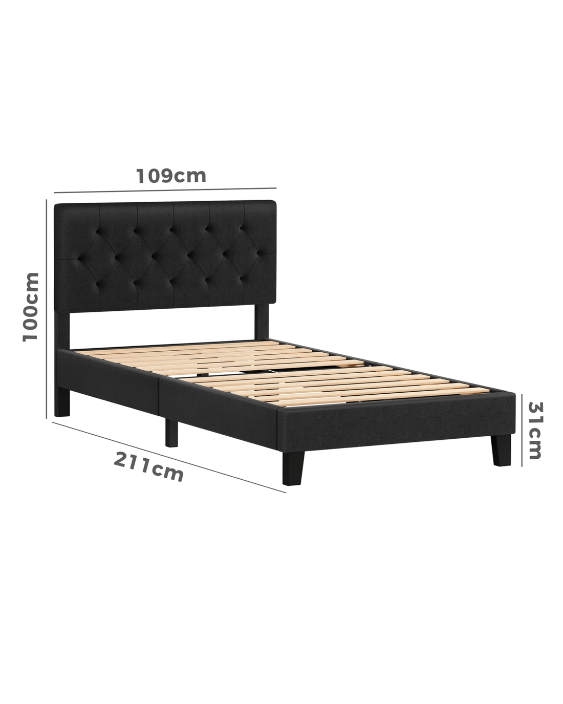 Sold by Aussie Union GroupAlfordson Bed Frame King Single Tufted Headboard Modern Fabric Meduna - Charcoal