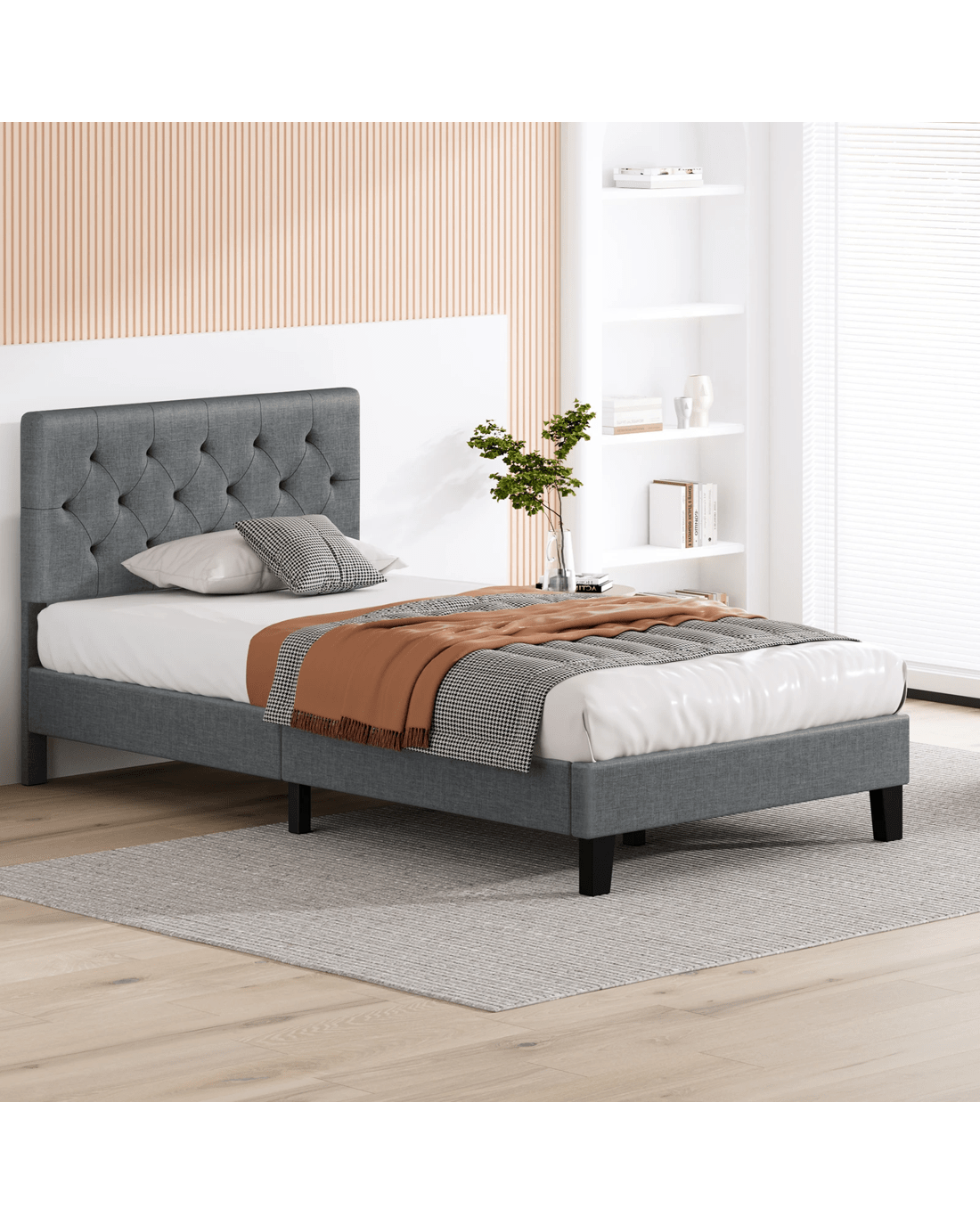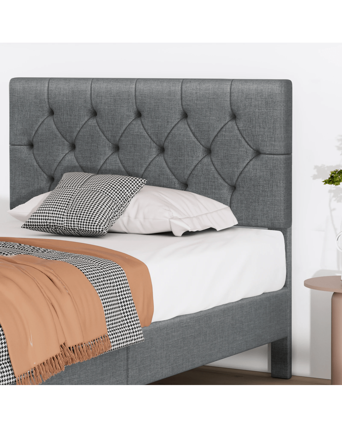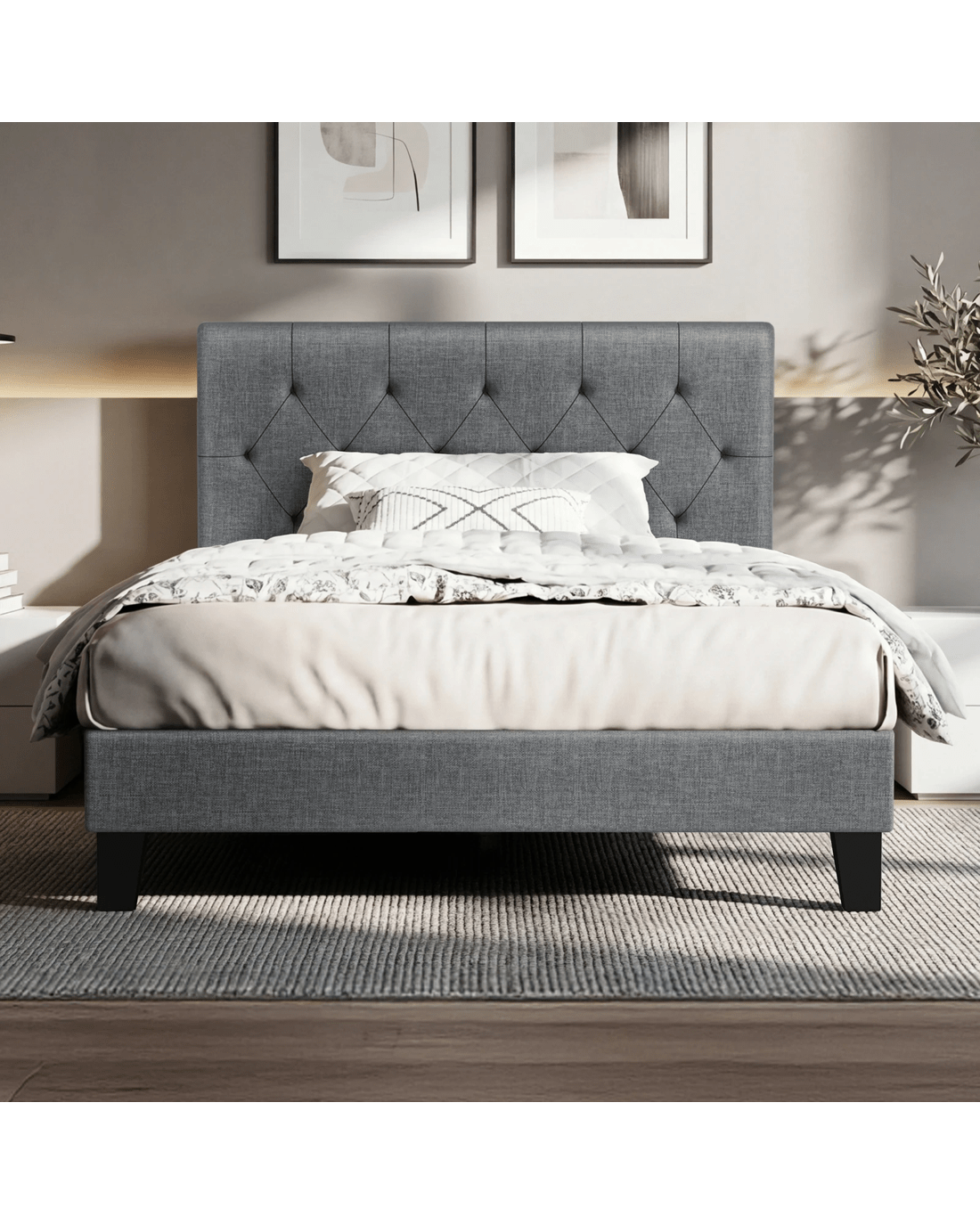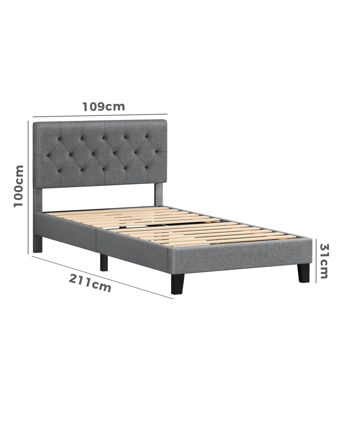 Sold by Aussie Union GroupAlfordson Bed Frame King Single Tufted Headboard Modern Fabric Meduna - Grey