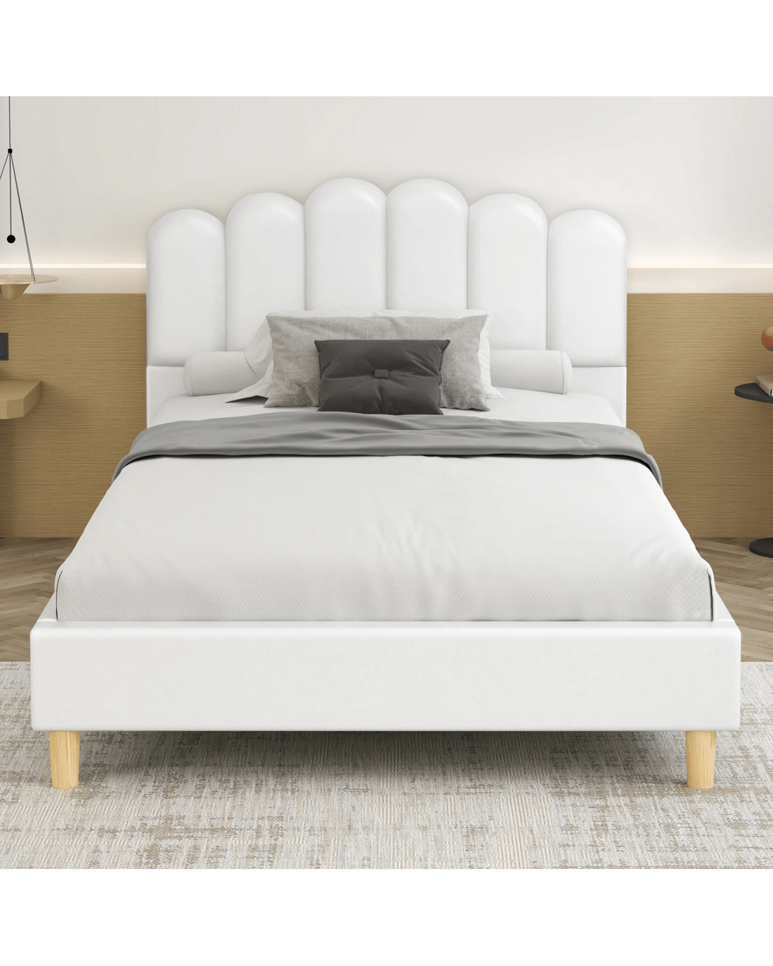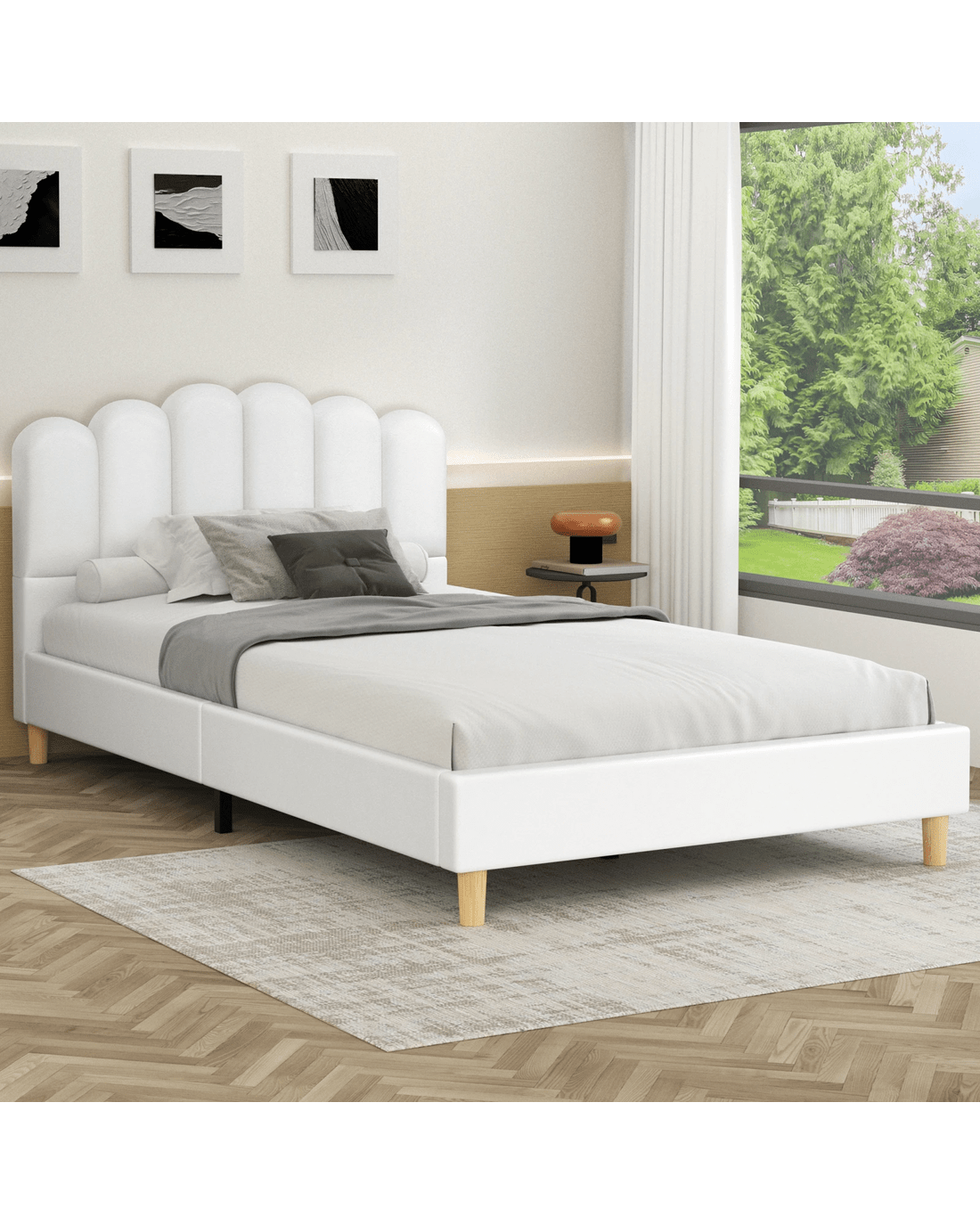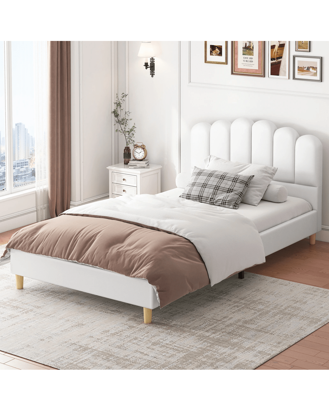 Sold by Aussie Union GroupAlfordson Bed Frame King Single Upholstered Platform Base Leather Tania - White