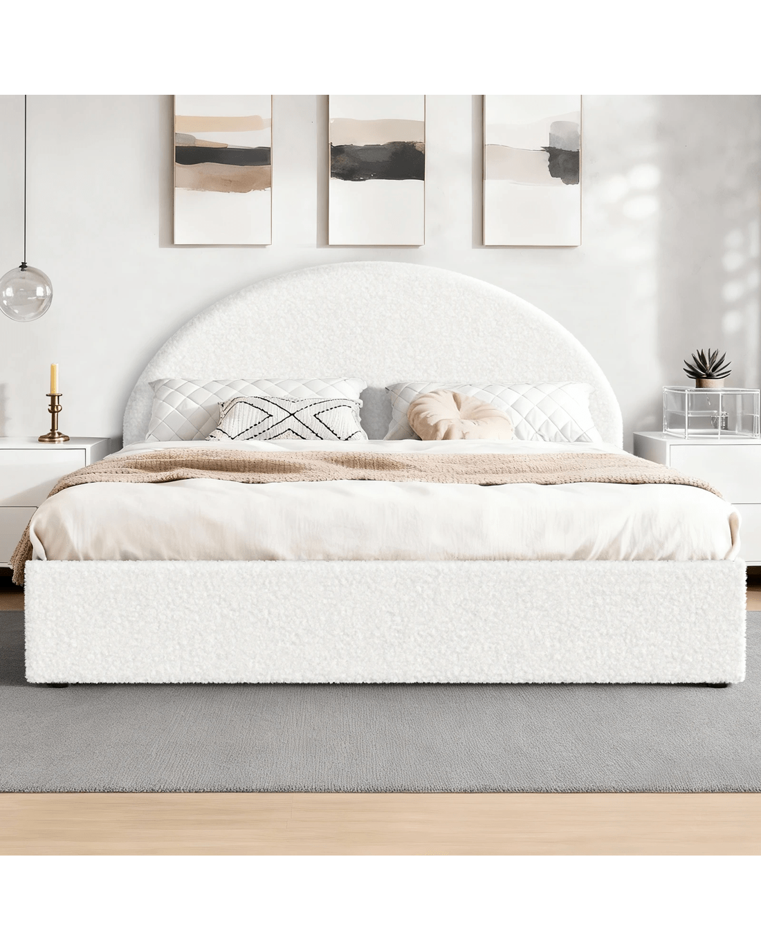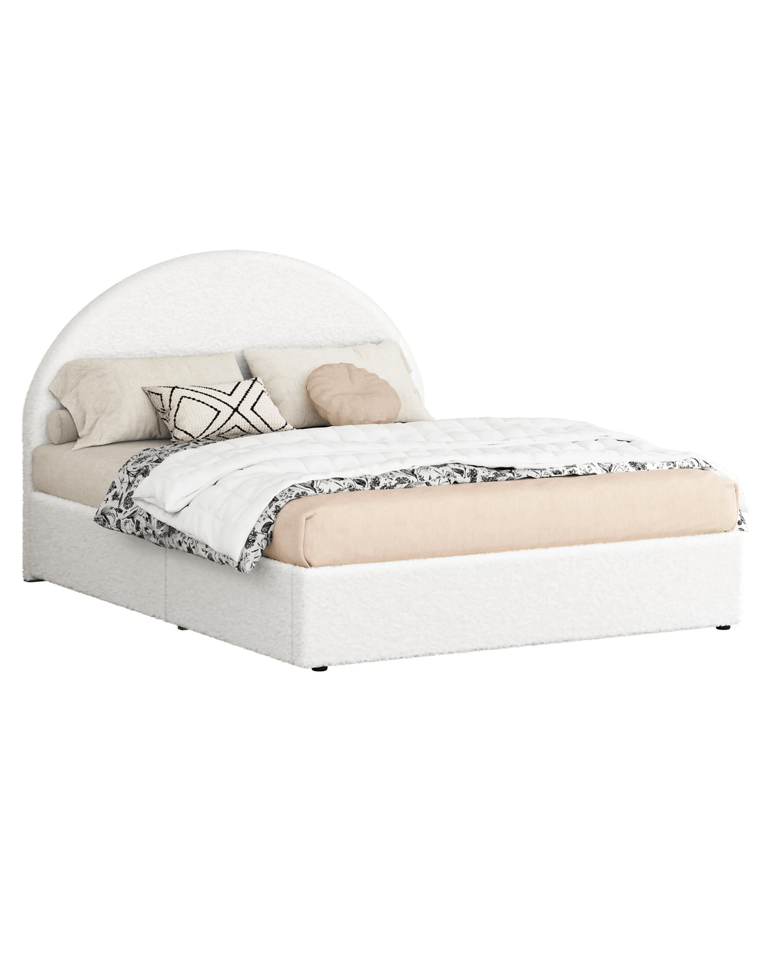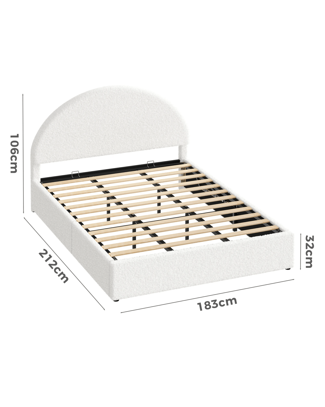 Sold by Aussie Union GroupAlfordson Bed Frame King Size Arched Base Gas Lift Storage Boucle Hoult - White