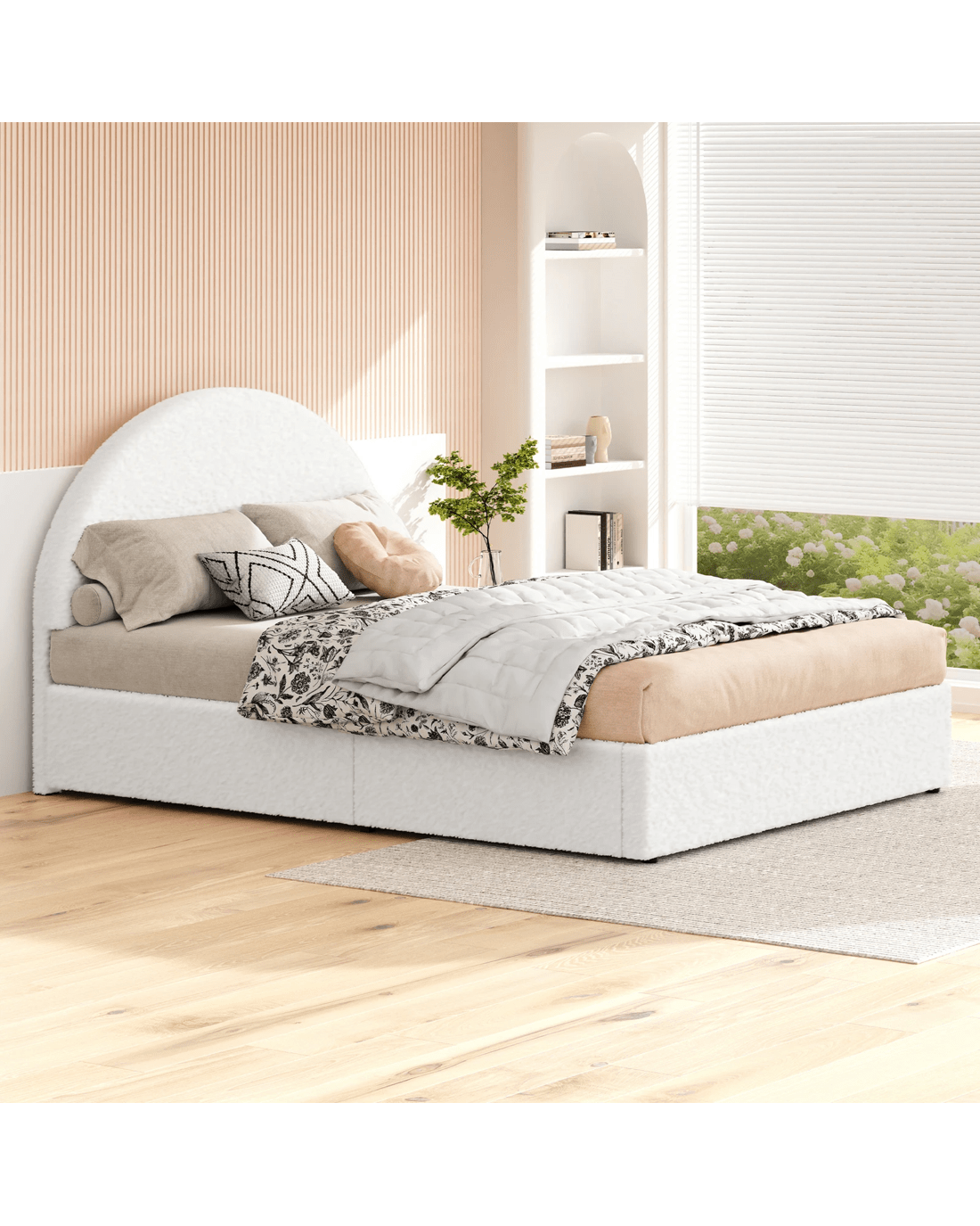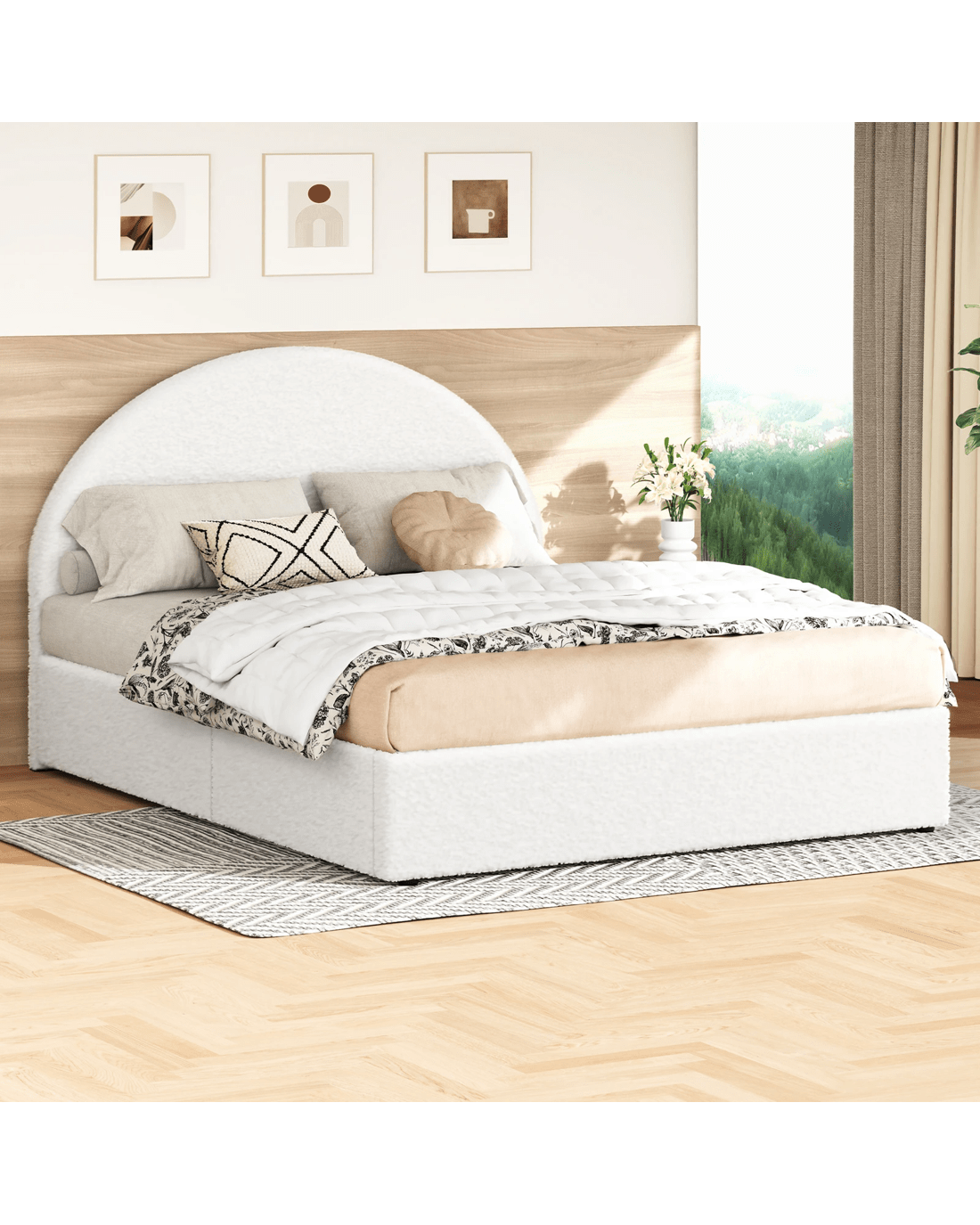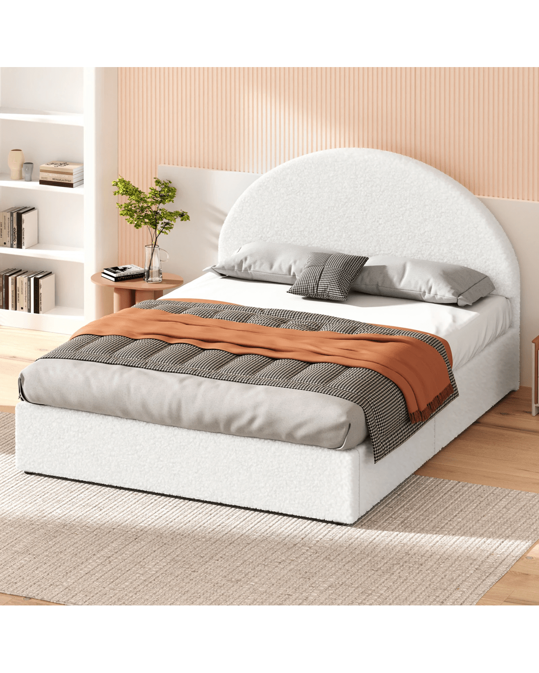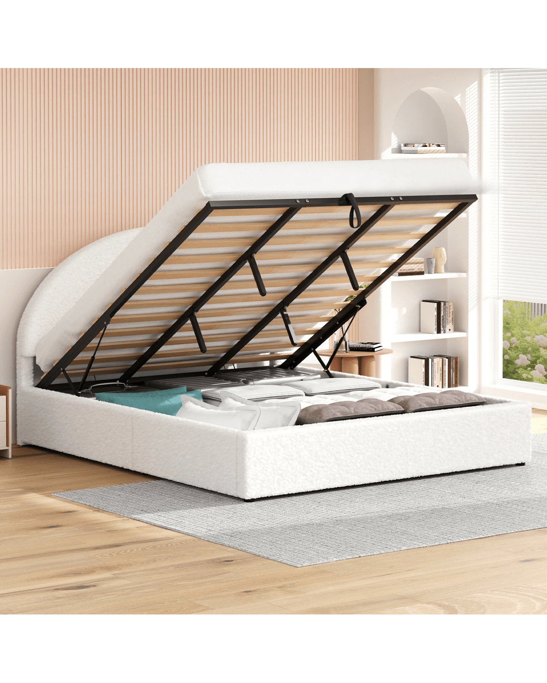 Sold by Aussie Union GroupAlfordson Bed Frame King Size Arched Base Gas Lift Storage Boucle Hoult - White