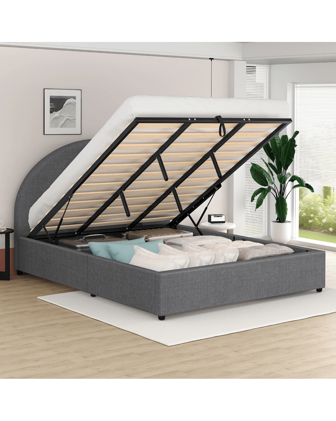 Sold by Aussie Union GroupAlfordson Bed Frame King Size Gas Lift Base With Storage Fabric Howell - Grey