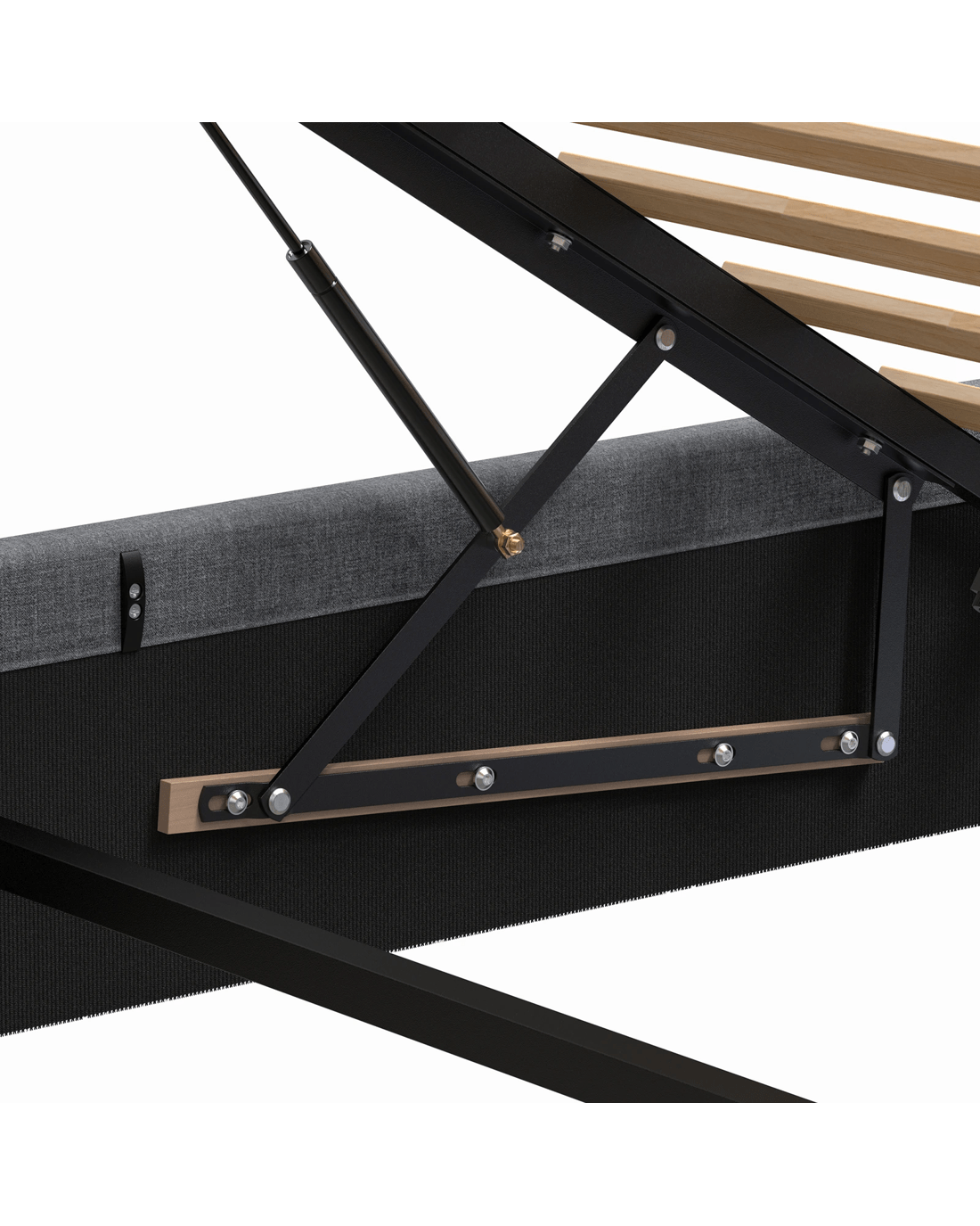 Quality counts - Constructed of durable wood slats and reinforced with exclusive X-support frame, this bed frame provides you with full sense of security. The heavy-duty gas lift mechanism allows you to effortlessly raise the mattress platform, providing easy access to the storage compartment. What's more, with adhesive Velcro strips, you can just lay the slats down, without inserting slats one by one at both end caps. Enjoy hassle-free installation!