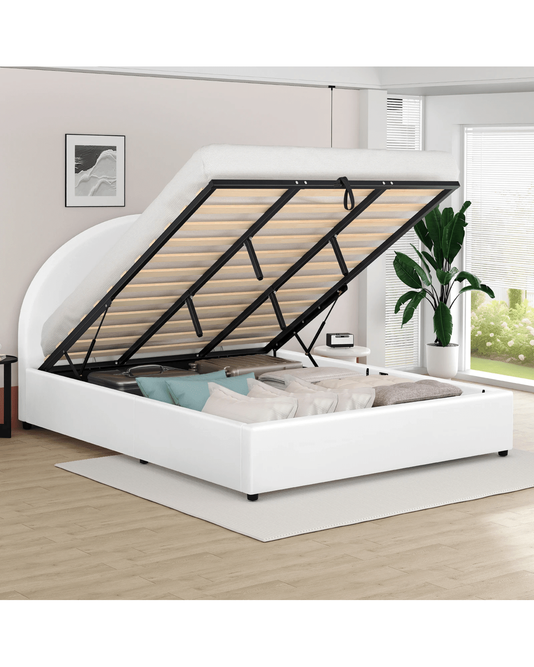 Space optimization - Our wonderful bed frame offers generous storage space without sacrificing aesthetics. Whether you live in a compact apartment or simply want to maximize your bedroom storage, our gas lift bed provides a valuable solution. Also with the unique embedded design, our bed frame will hold your mattress in place and prevent slipping and sliding.