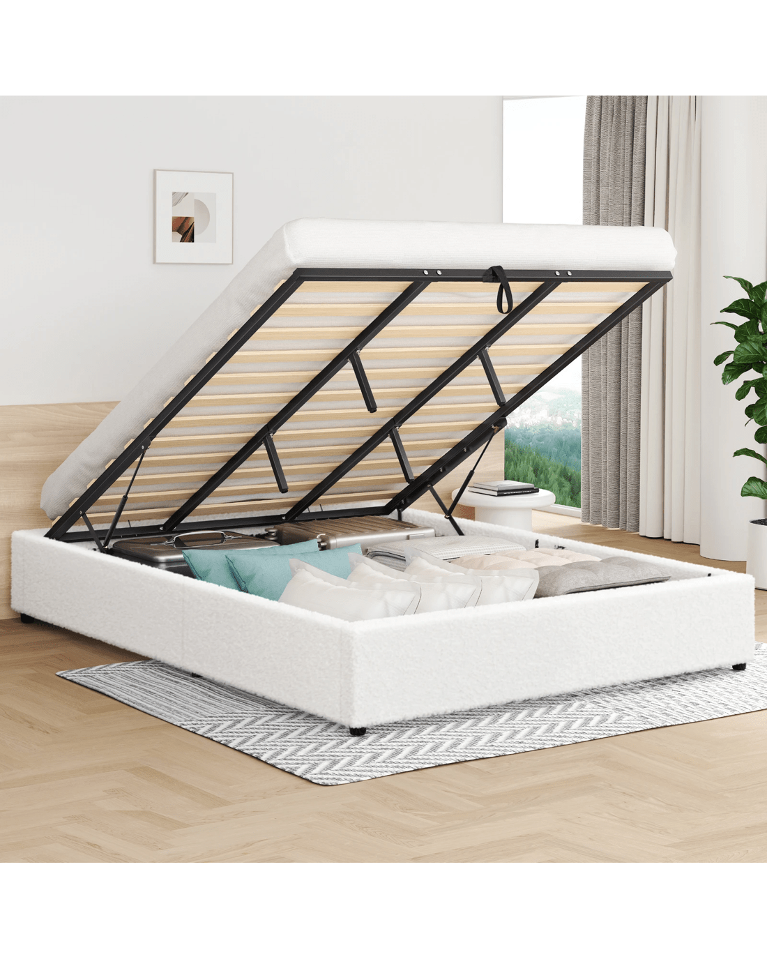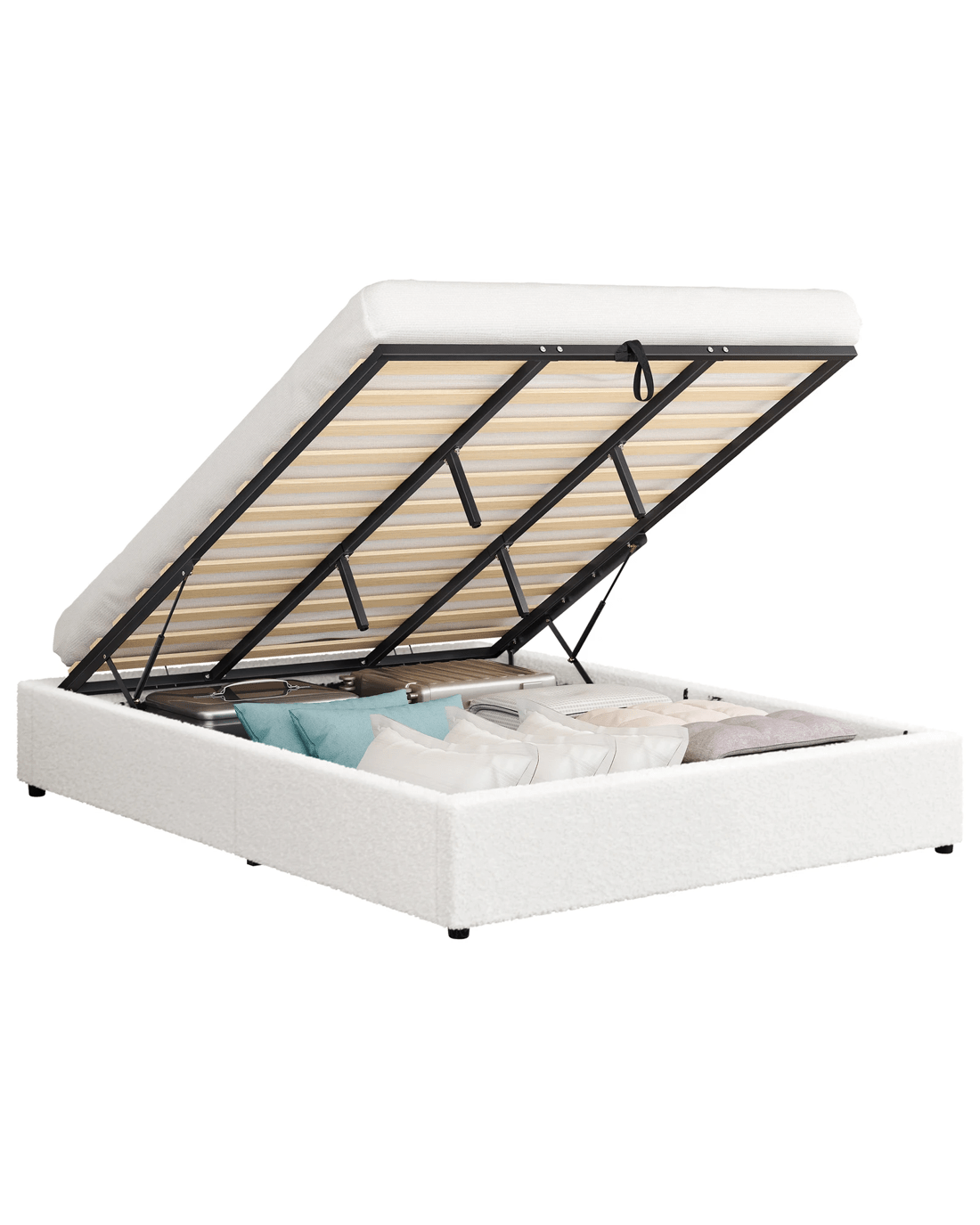 Sold by Aussie Union GroupAlfordson Bed Frame King Size Gas Lift Storage Mattress Base Boucle Barlow - White