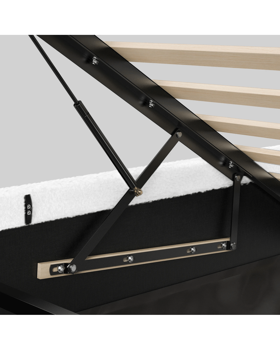 Space optimization - Elevate your bedroom with a bed frame that masterfully combines generous storage and elegant design. Perfect for compact apartments or anyone seeking to maximize space, our gas-lift bed offers a sleek, sturdy solution for a clutter-free retreat. Its effortless hydraulic mechanism reveals ample built-in storage, helping you organize efficiently while maintaining a clean, serene aesthetic.