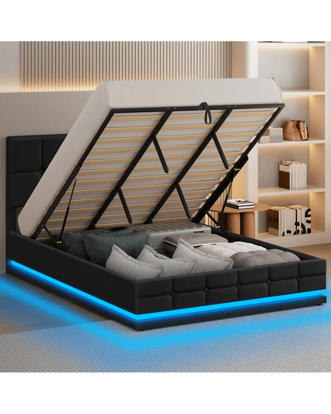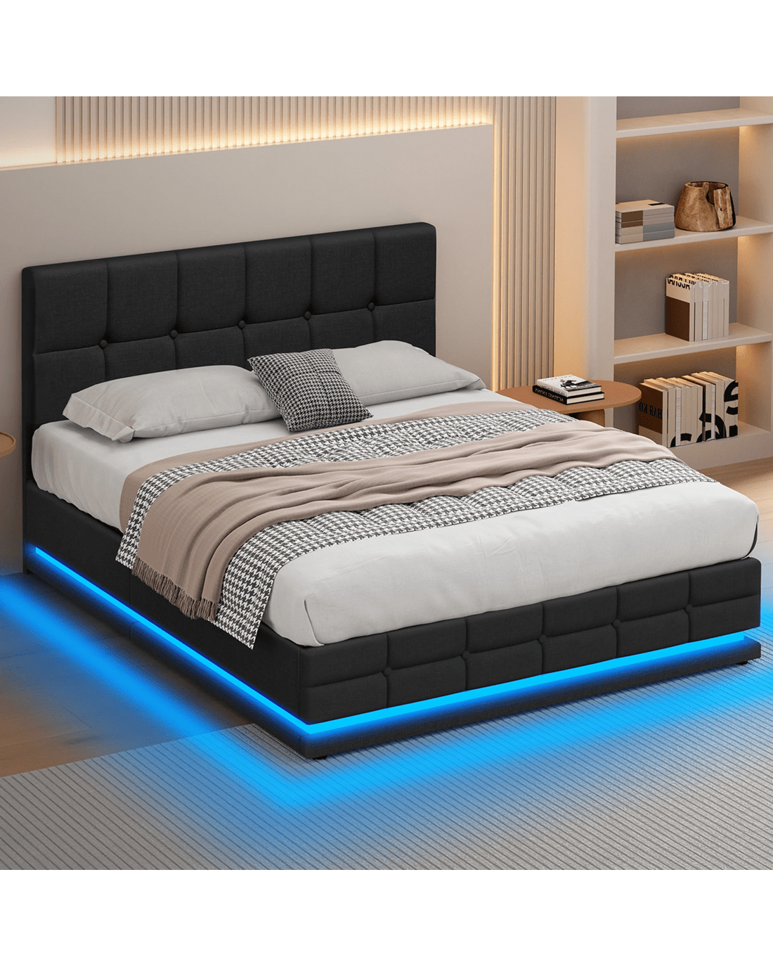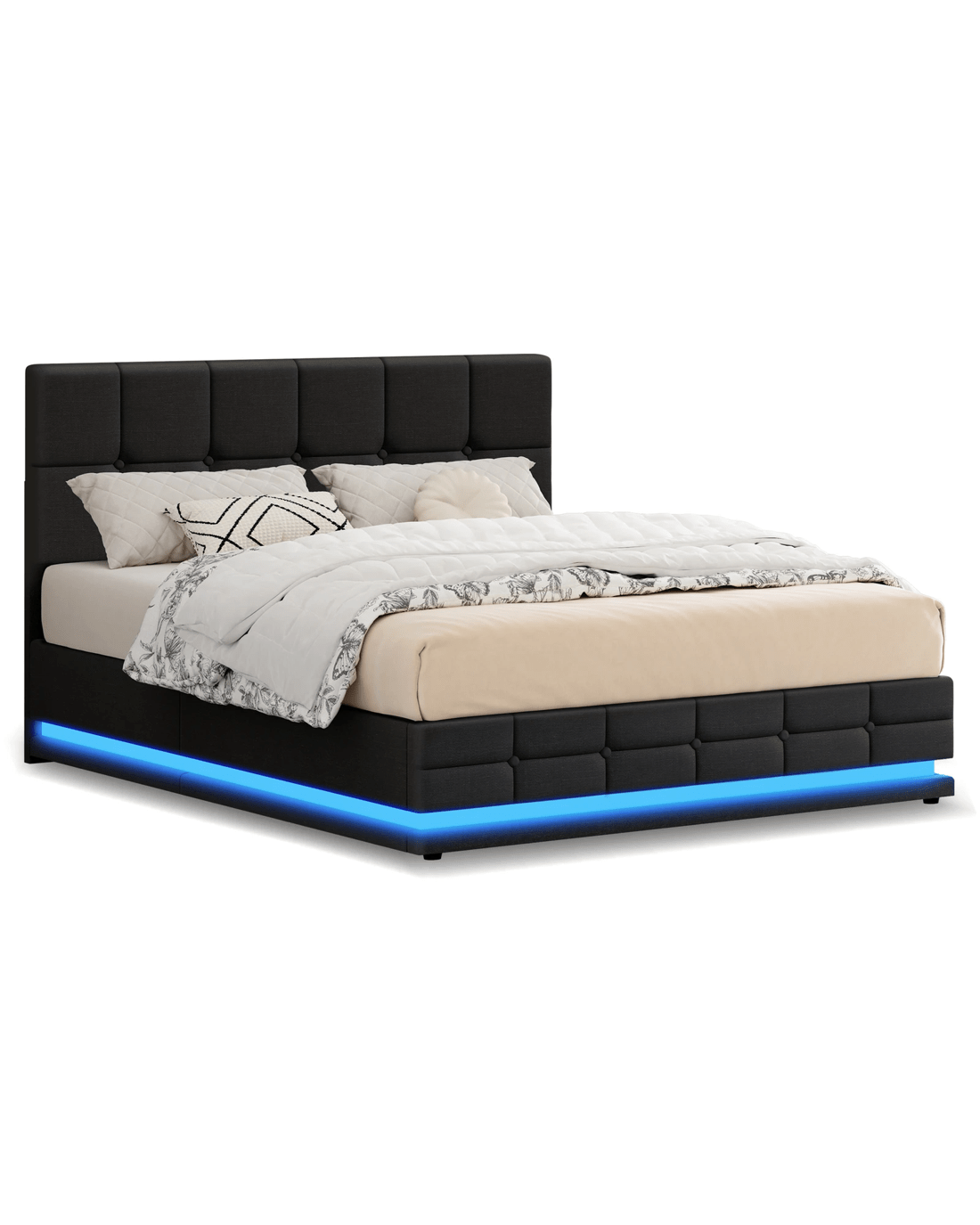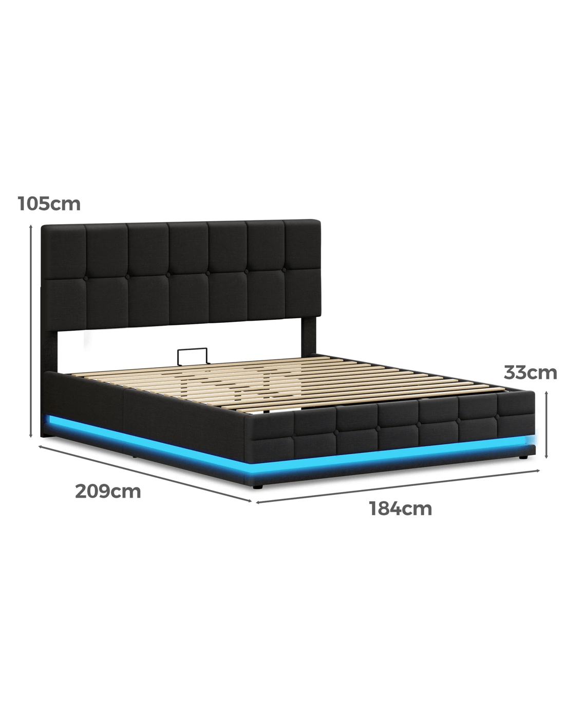 Sold by Aussie Union GroupAlfordson Bed Frame King Size Platform RGB LED Gas Lift Base Storage - Charcoal
