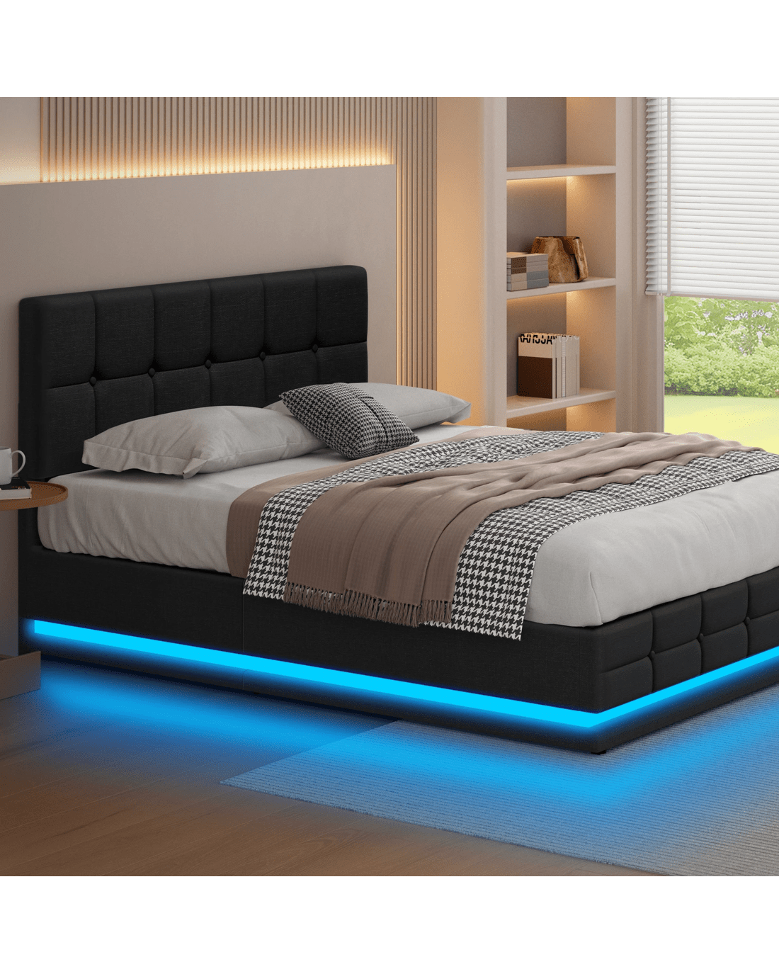 Customisable LED light with controller - The bed comes with LED lighting at the bottom and a remote control for turning light on/off or changing light color, which can provide adequate lighting to avoid nighttime accidents, especially for seniors. It saves you money on buying a lamp as well as space for placing the lamp. Being functional yet stylish, you will definitely love this bed frame.