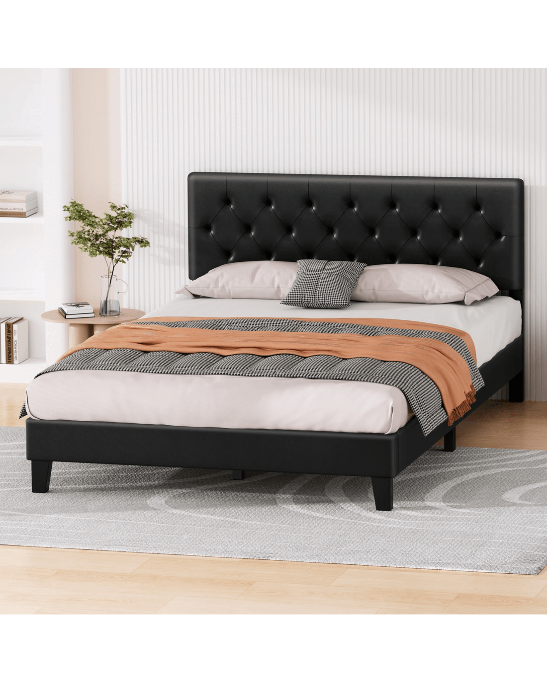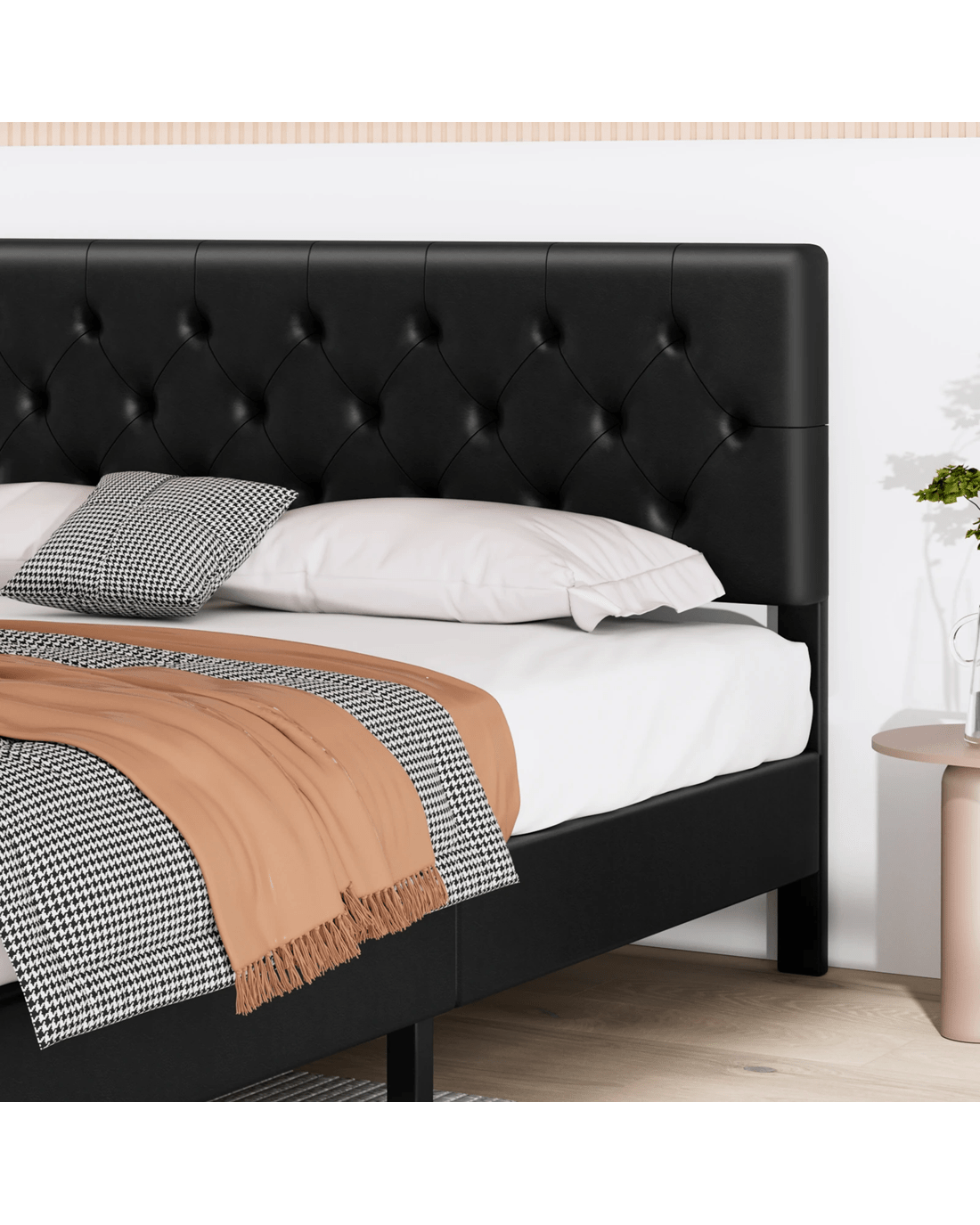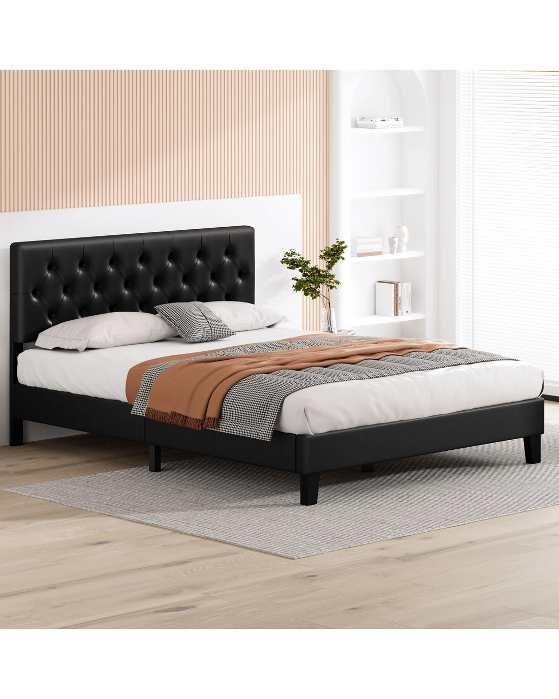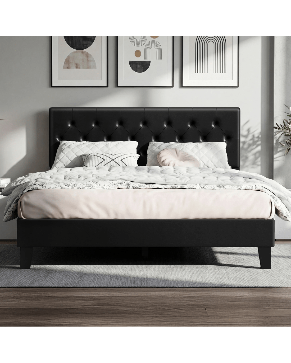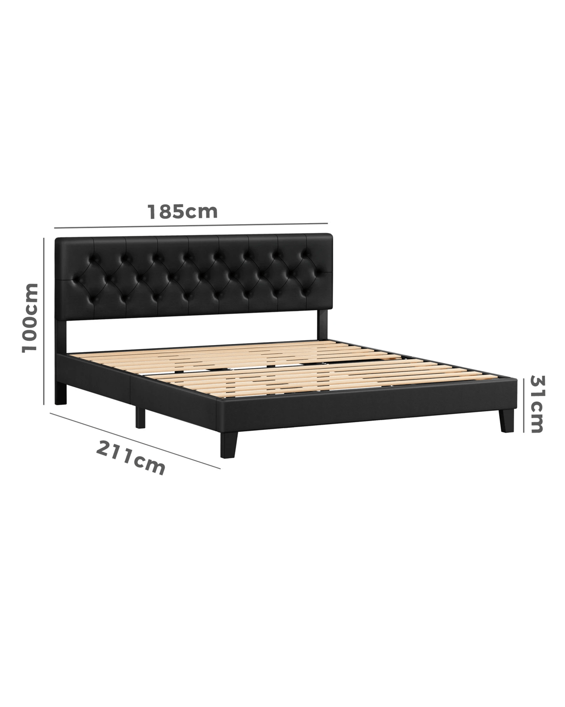 Sold by Aussie Union GroupAlfordson Bed Frame King Size Tufted Headboard Modern Leather Meduna - Black