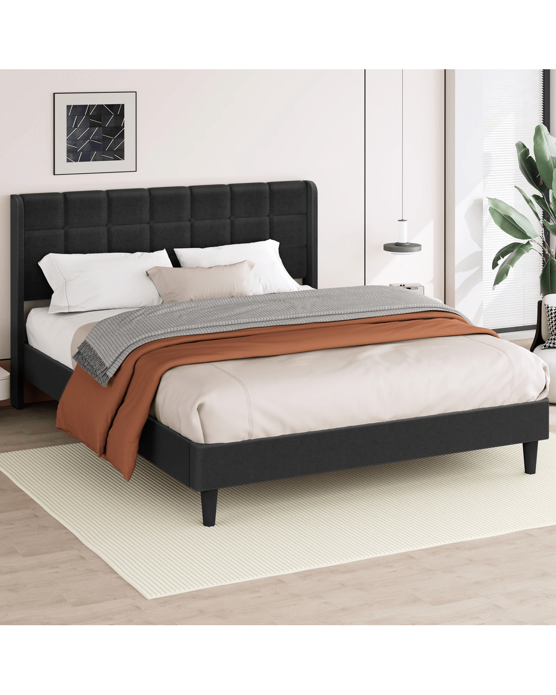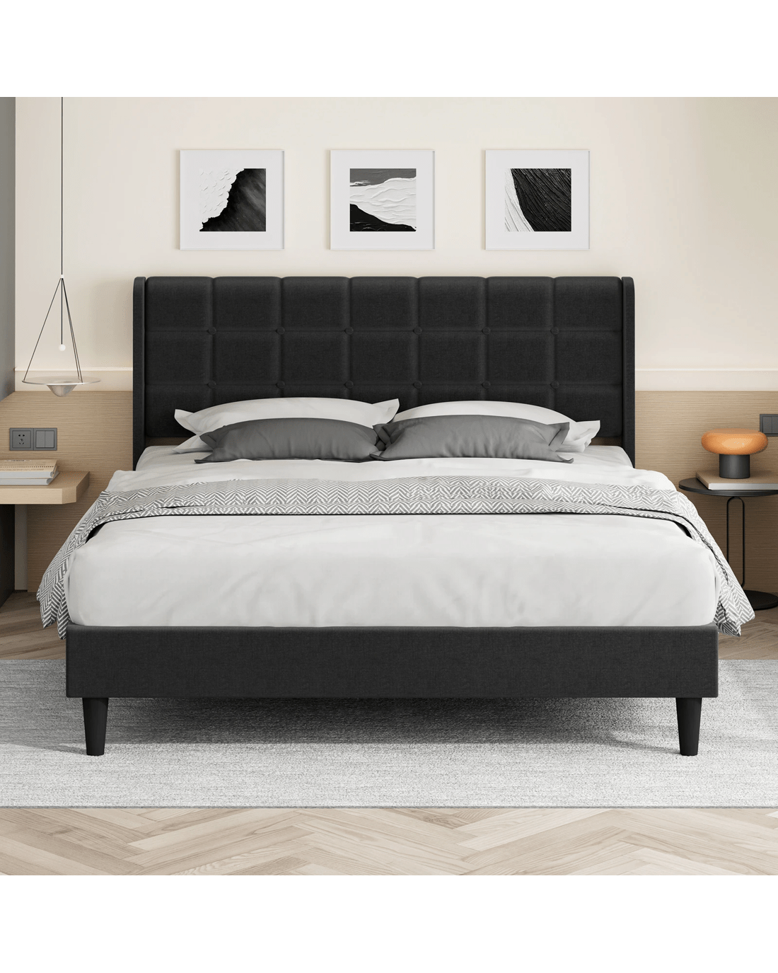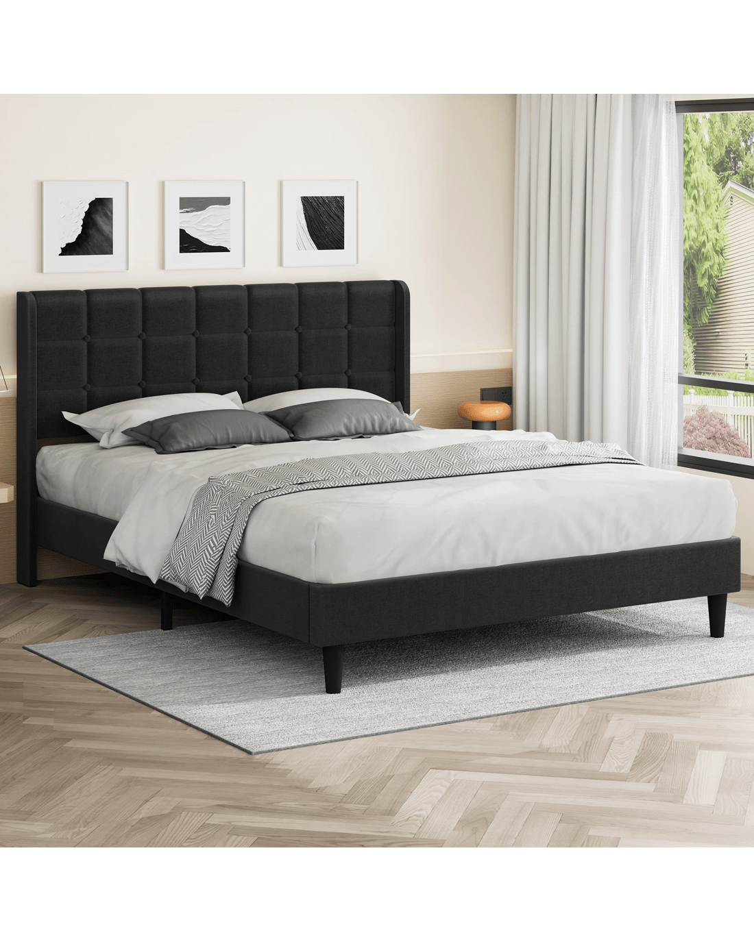 Stand-out style - Part of what's our bedroom comforting is its aesthetic appeal. The beauty of biscuit tufting bed lies in its versatility and ability to complement various design styles. Whether you're going for a mid-century modern vibe or a minimalist aesthetic, this bed has got you covered!