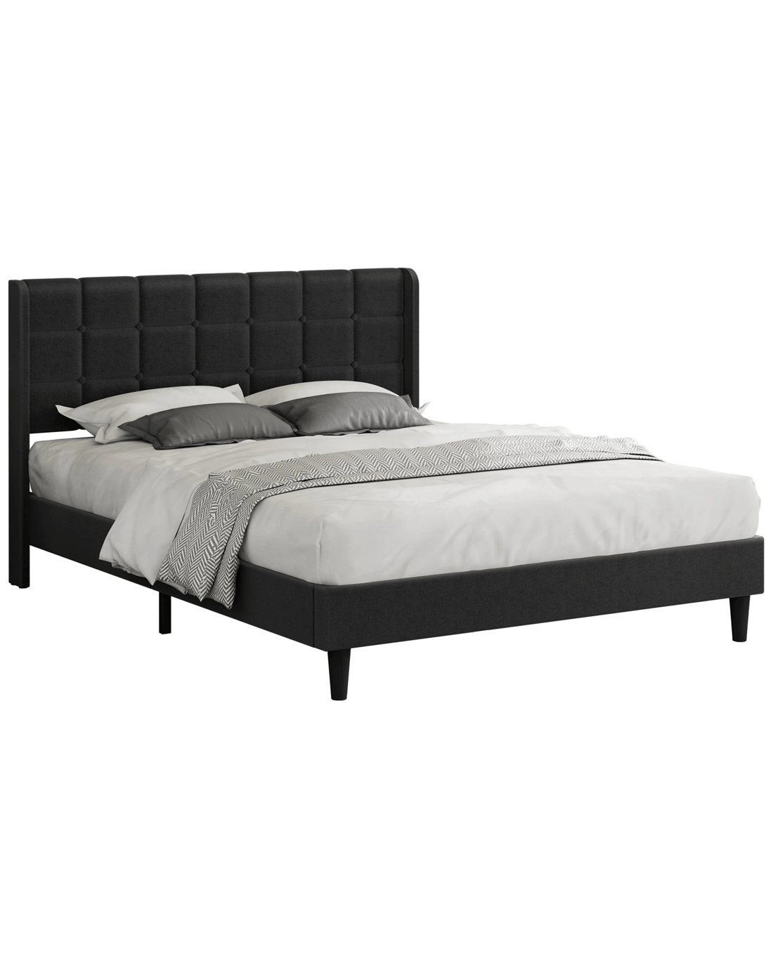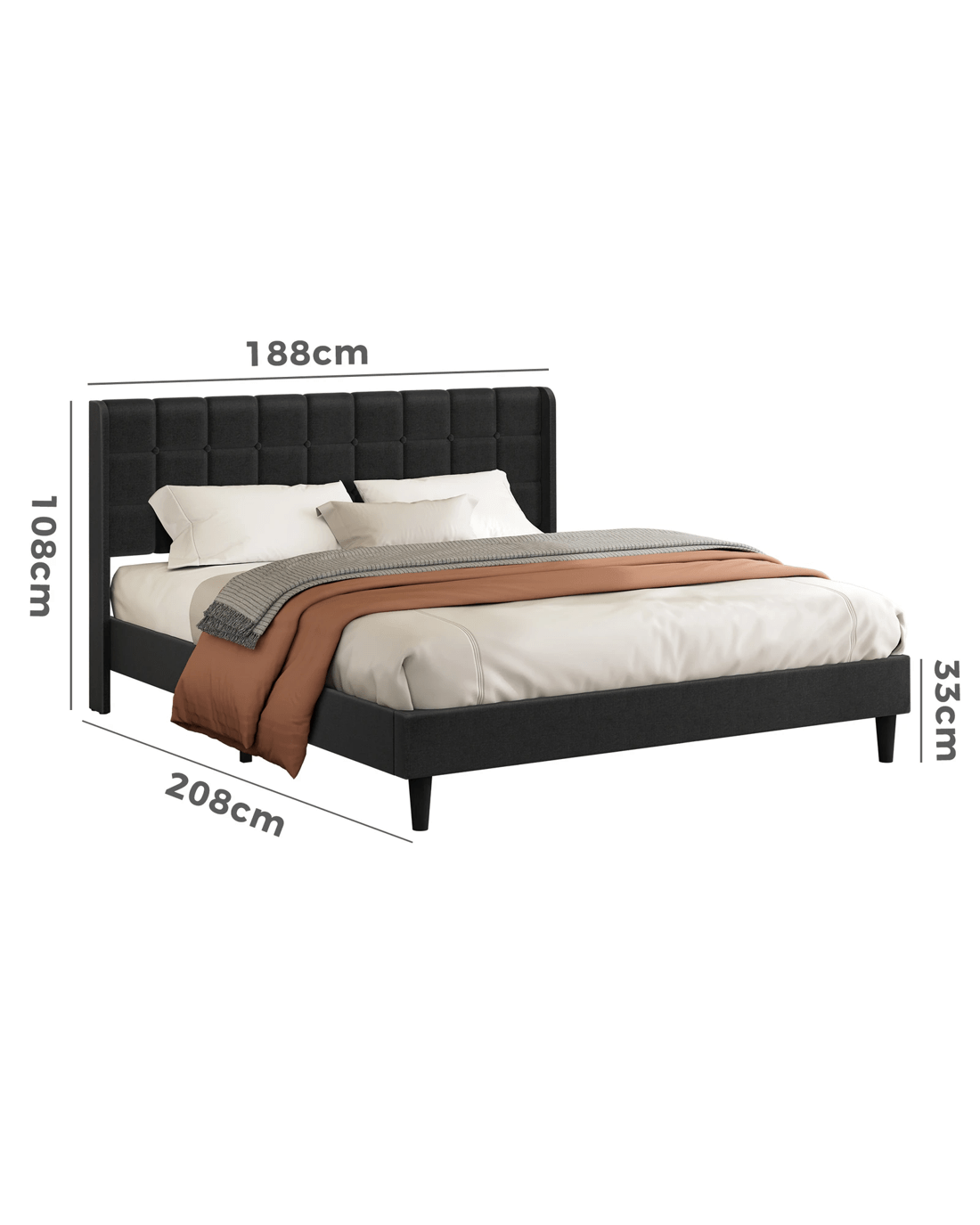 Sold by Aussie Union GroupAlfordson Bed Frame King Size Upholstered Wingback Base Fabric Sarah - Charcoal