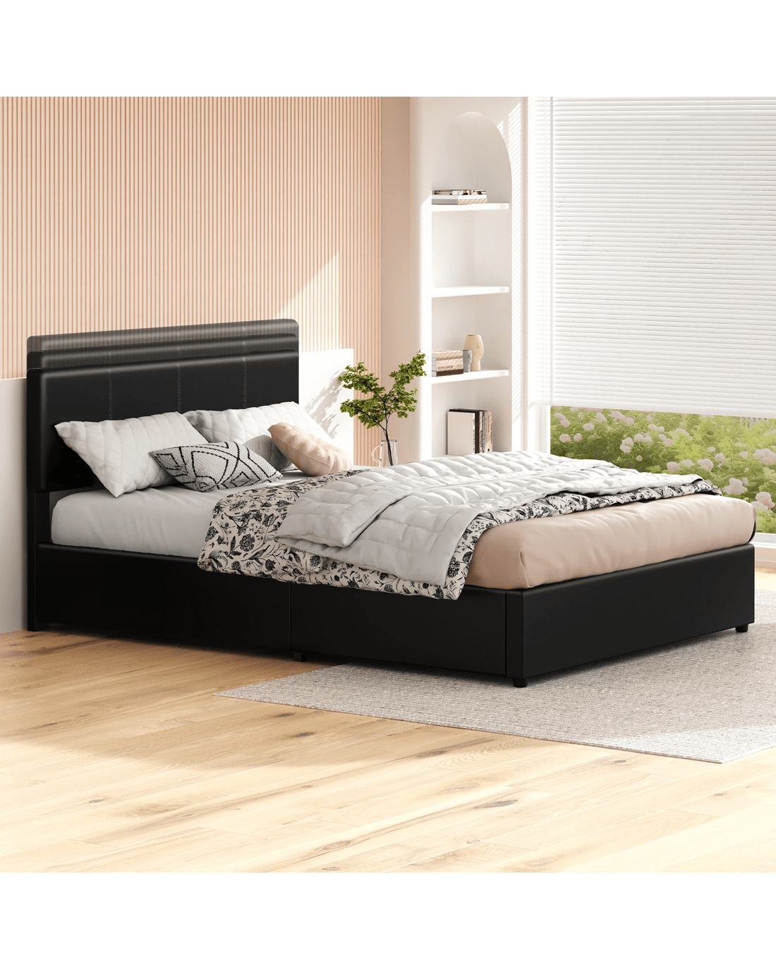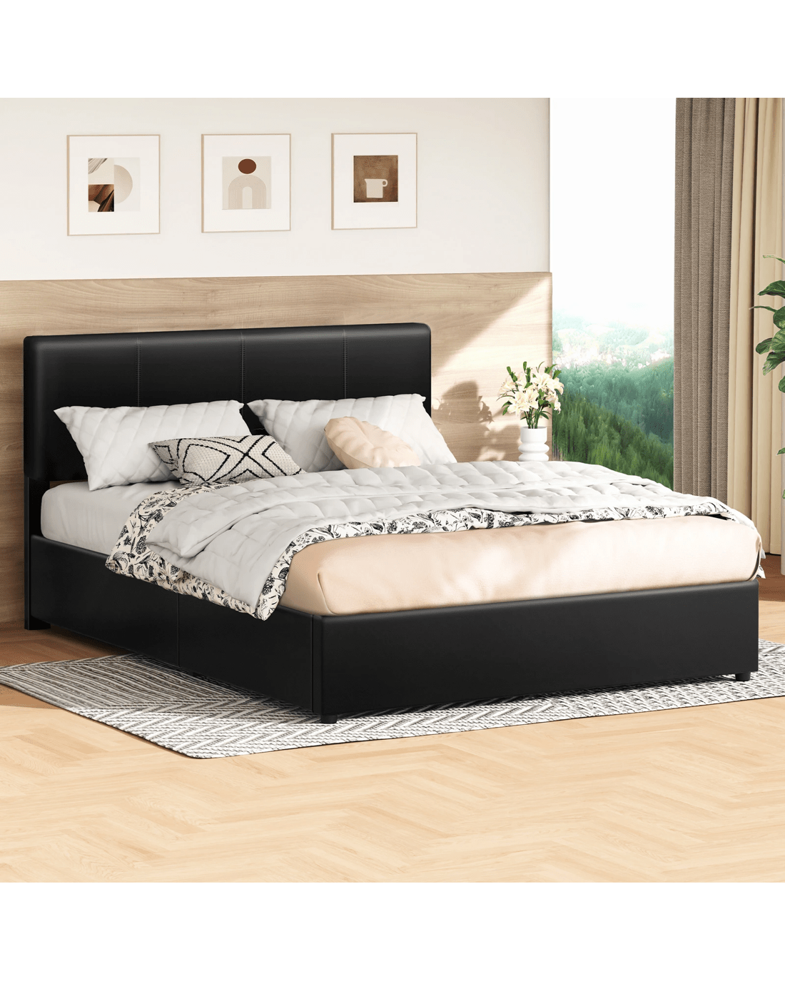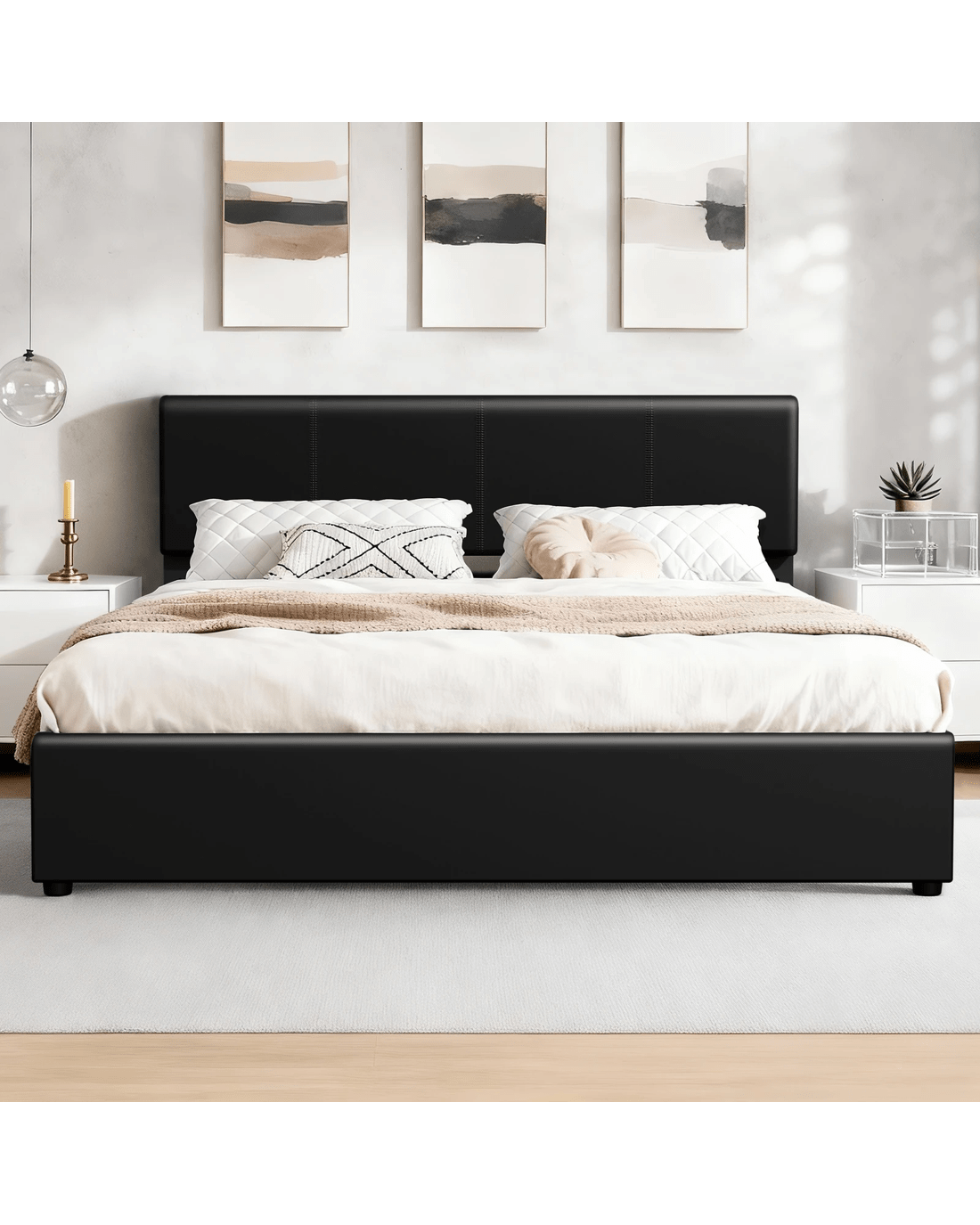Space optimization - Elevate your bedroom with a bed frame that masterfully combines generous storage and elegant design. Perfect for compact apartments or anyone seeking to maximize space, our gas-lift bed offers a sleek, sturdy solution for a clutter-free retreat. Its effortless hydraulic mechanism reveals ample built-in storage, helping you organize efficiently while maintaining a clean, serene aesthetic.