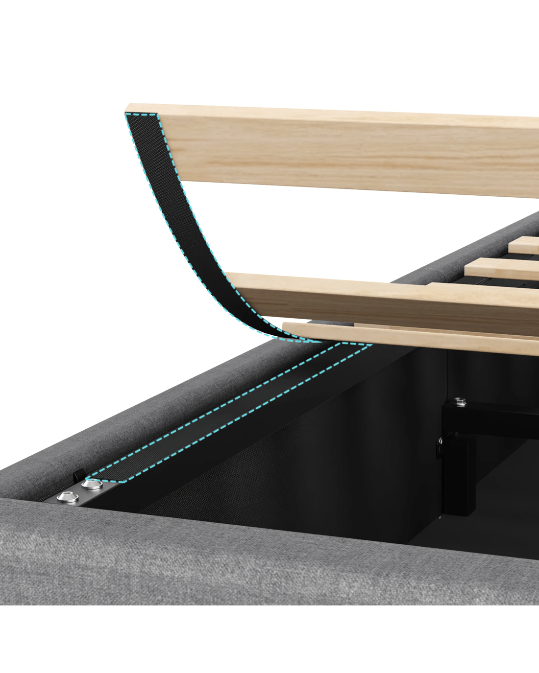 Quality counts - Constructed of durable wood slats and reinforced with exclusive X-support frame, this bed frame provides you with full sense of security. The heavy-duty gas lift mechanism allows you to effortlessly raise the mattress platform, providing easy access to the storage compartment. What's more, with adhesive Velcro strips, you can just lay the slats down, without inserting slats one by one at both end caps. Enjoy hassle-free installation!