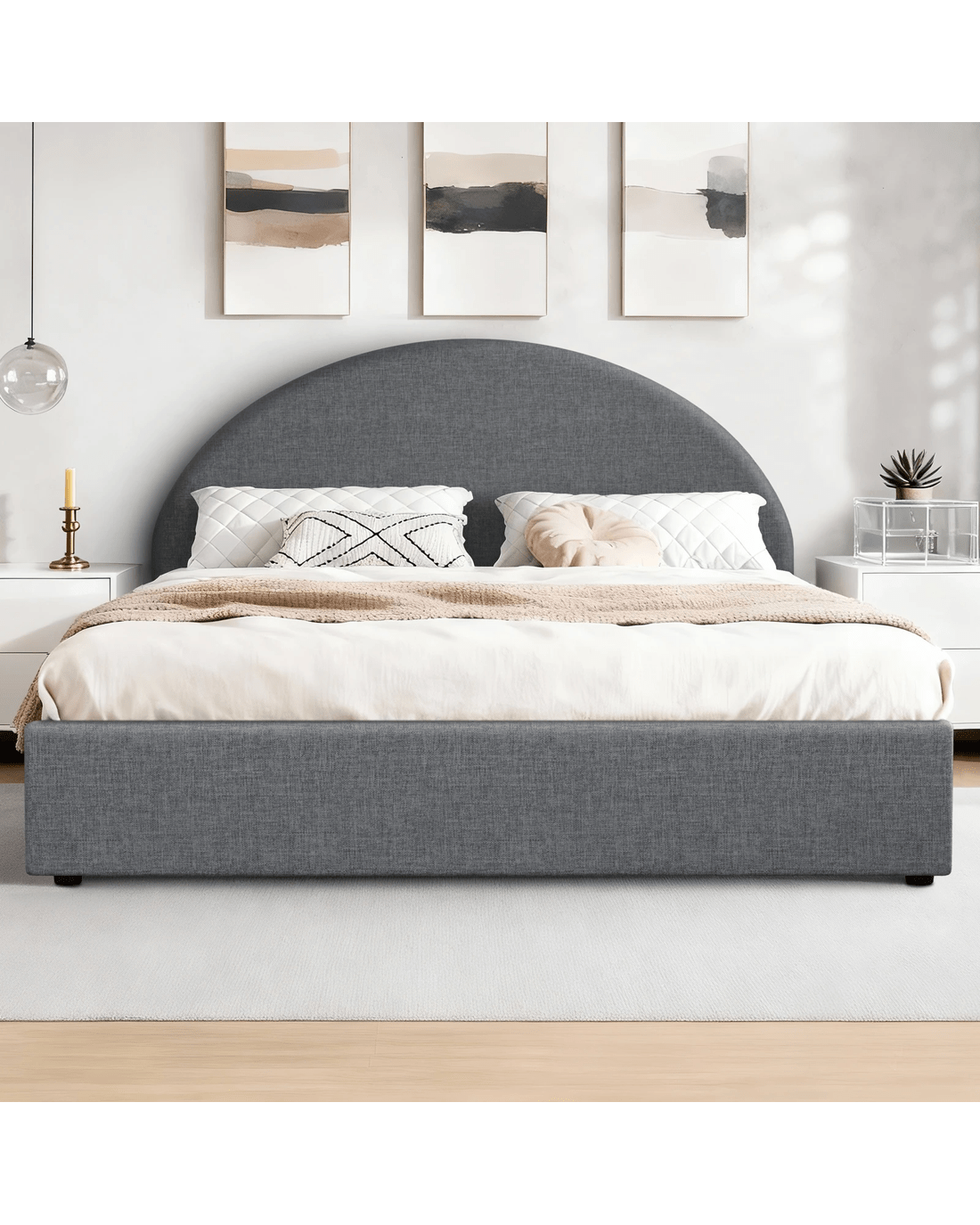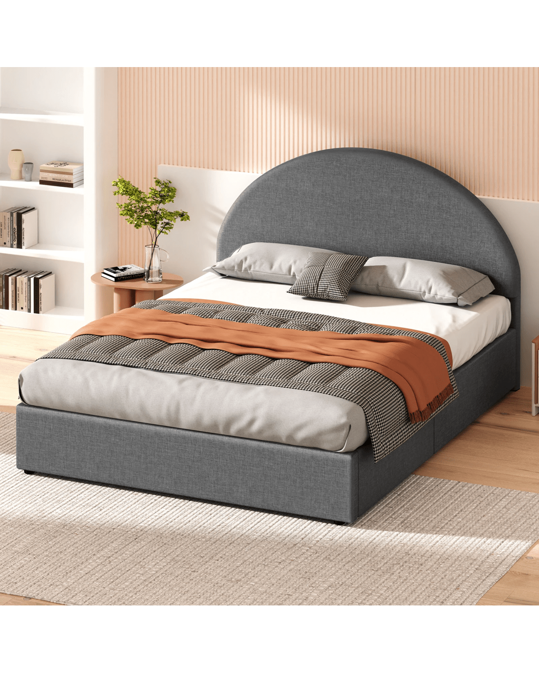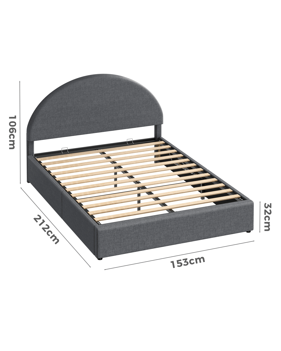 Sold by Aussie Union GroupAlfordson Bed Frame Queen Size Arched Base Gas Lift Storage Fabric Hoult - Grey